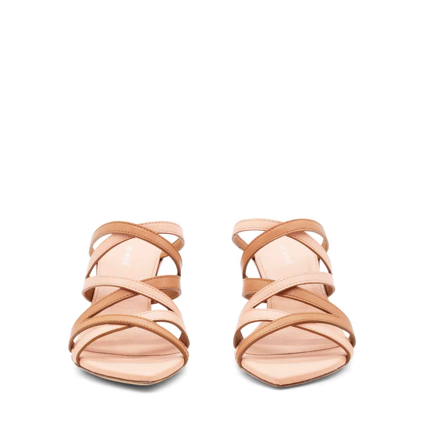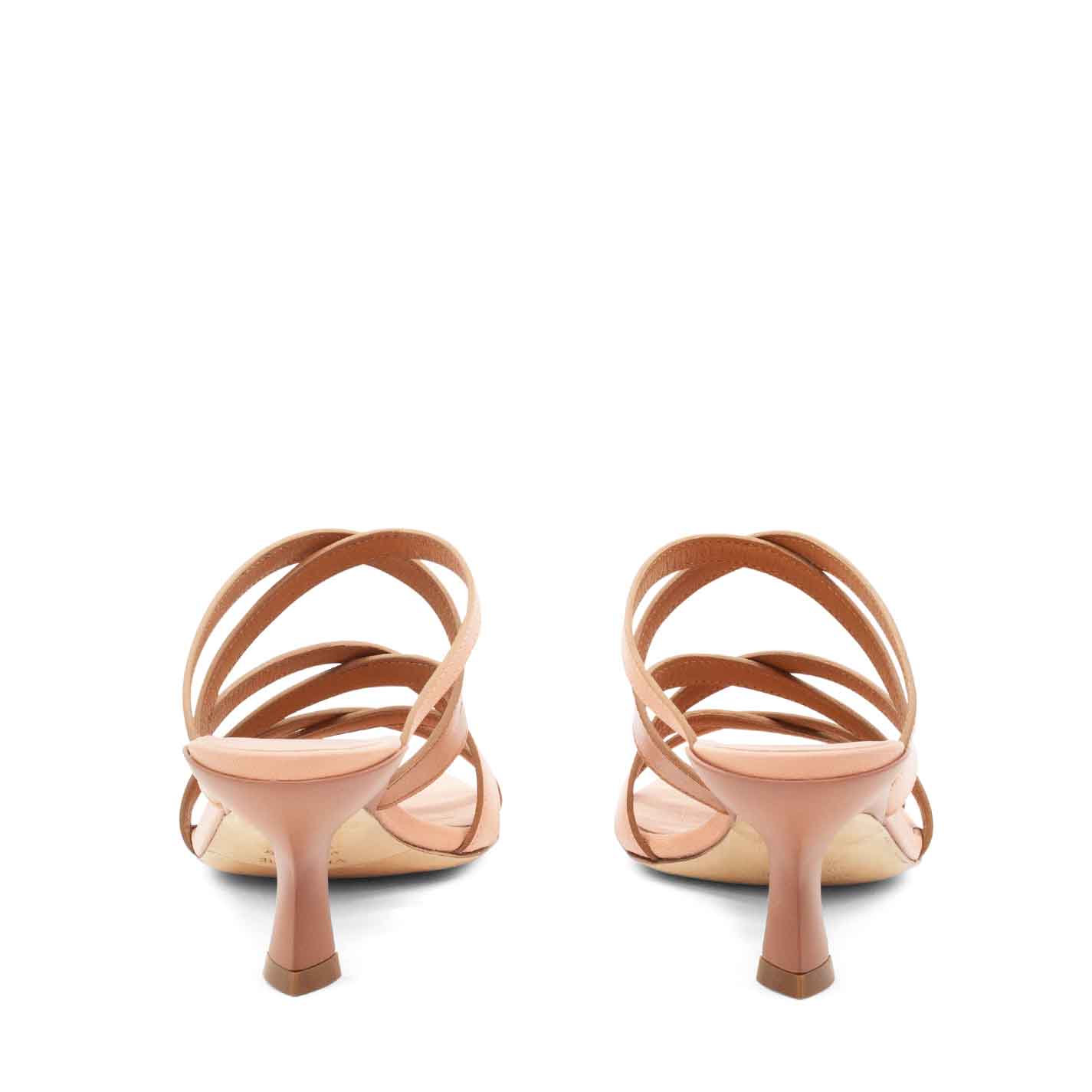 Slash slip-on sandals in biscuit/pink leather, with strips of calfskin that criss-cross, creating openings. Leather sole with square toe, leather-covered insole, and matt coated heel. Made in Italy.