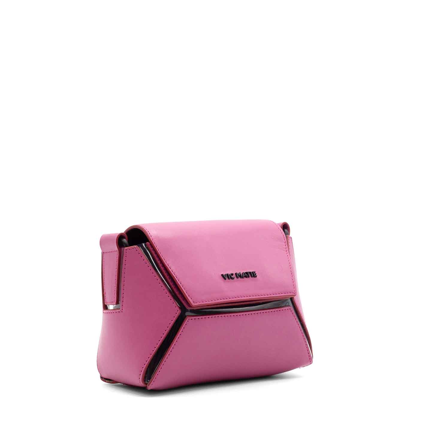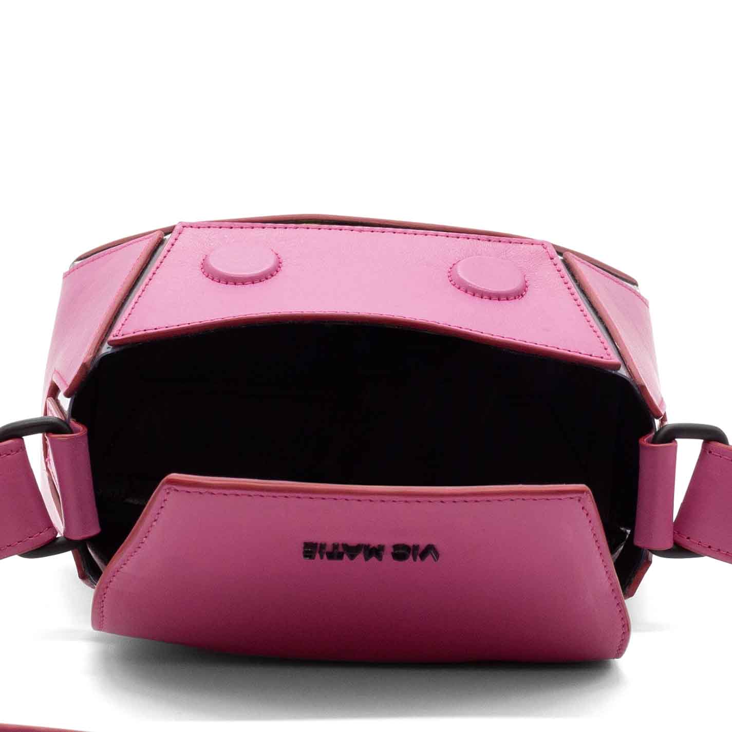 fuchsia/transparent3D hexagon shoulder bag in smooth reinforced calfskin. The geometric parts are stitched onto contrasting leather. Magnetic fastening, adjustable shoulder strap and metal logo on the front. Made in Italy.