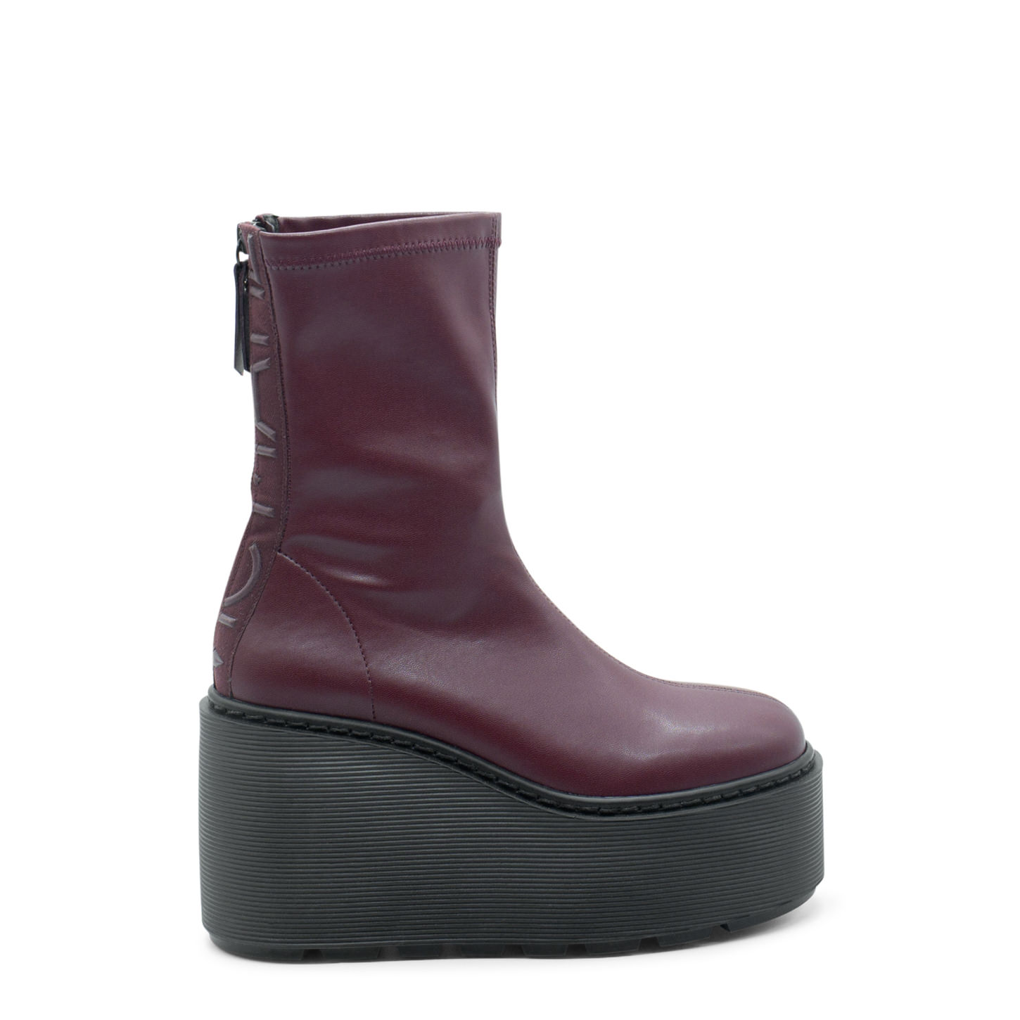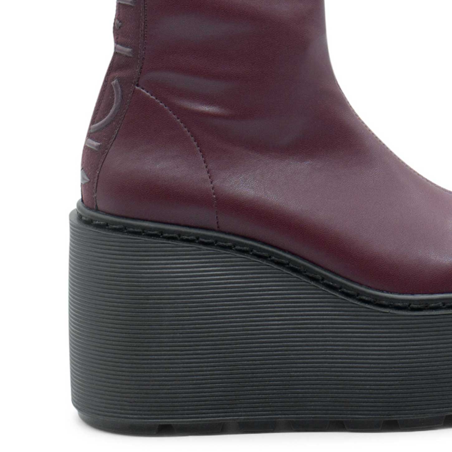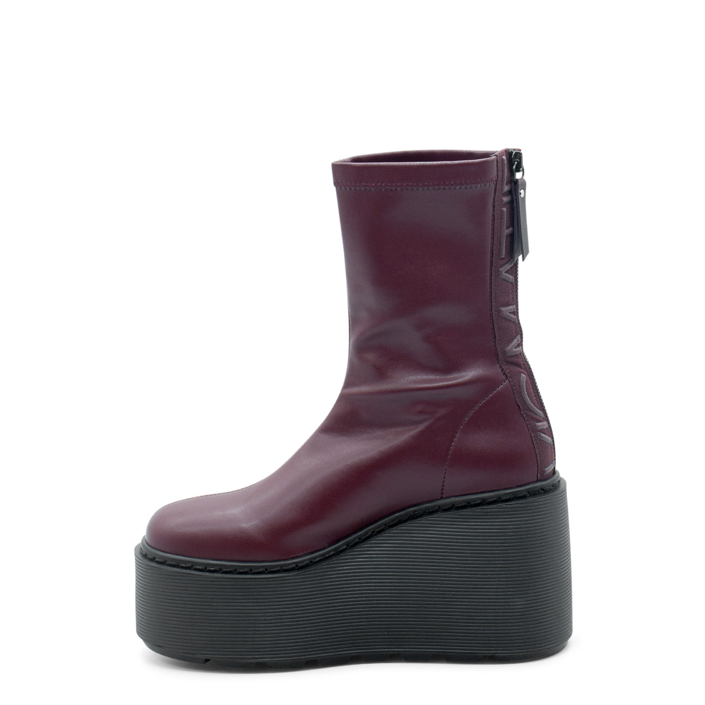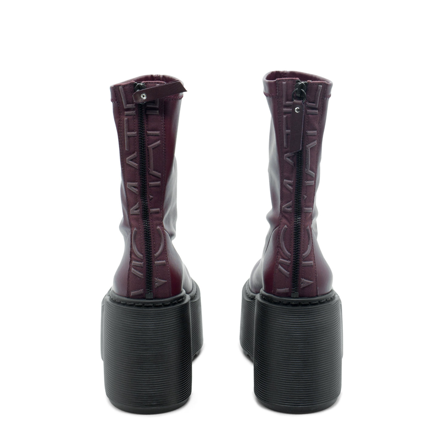 Stripy burgundy platform half boots, crafted from stretch faux leather, with branded zip on the back. This model features a striped-effect rubber platform, with non-slip ribbed outsole. Made in Italy.