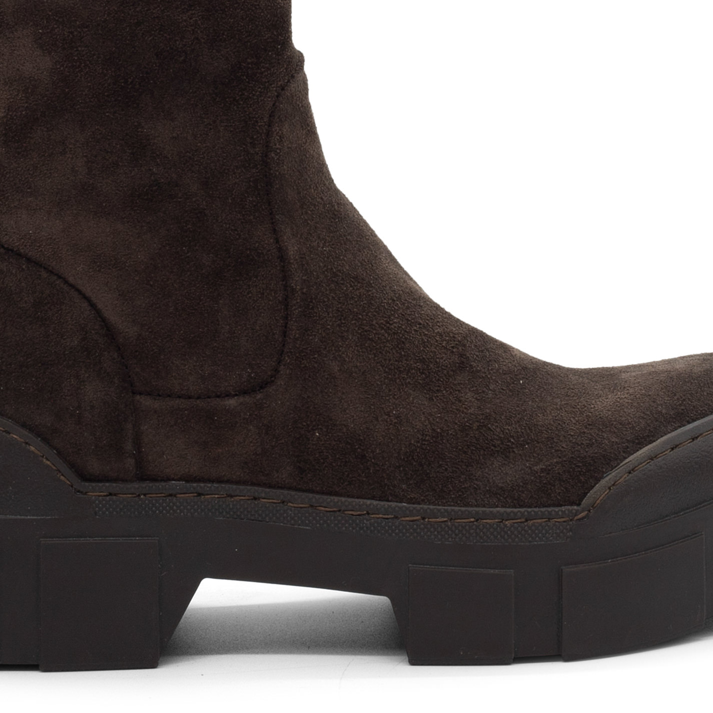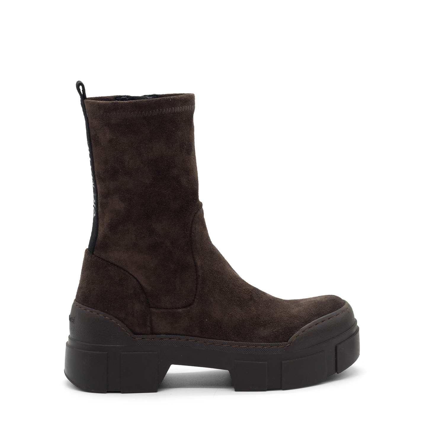 V14 Roccia-Stretch ankle boot dark brown made of stretch suede, slim and fitted;