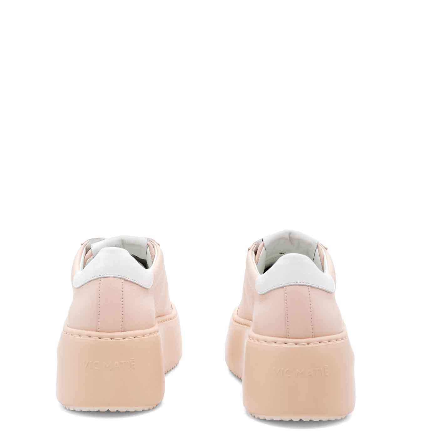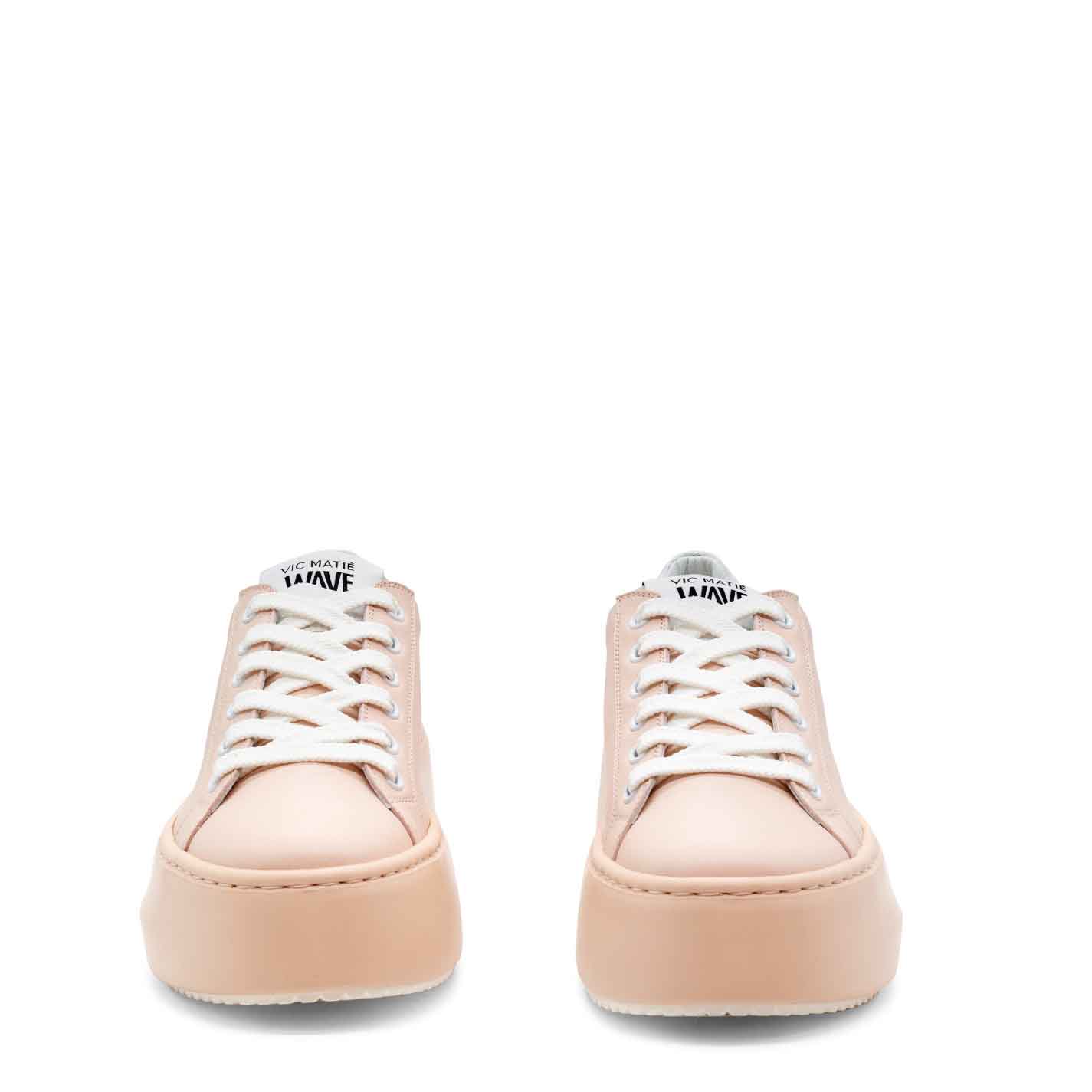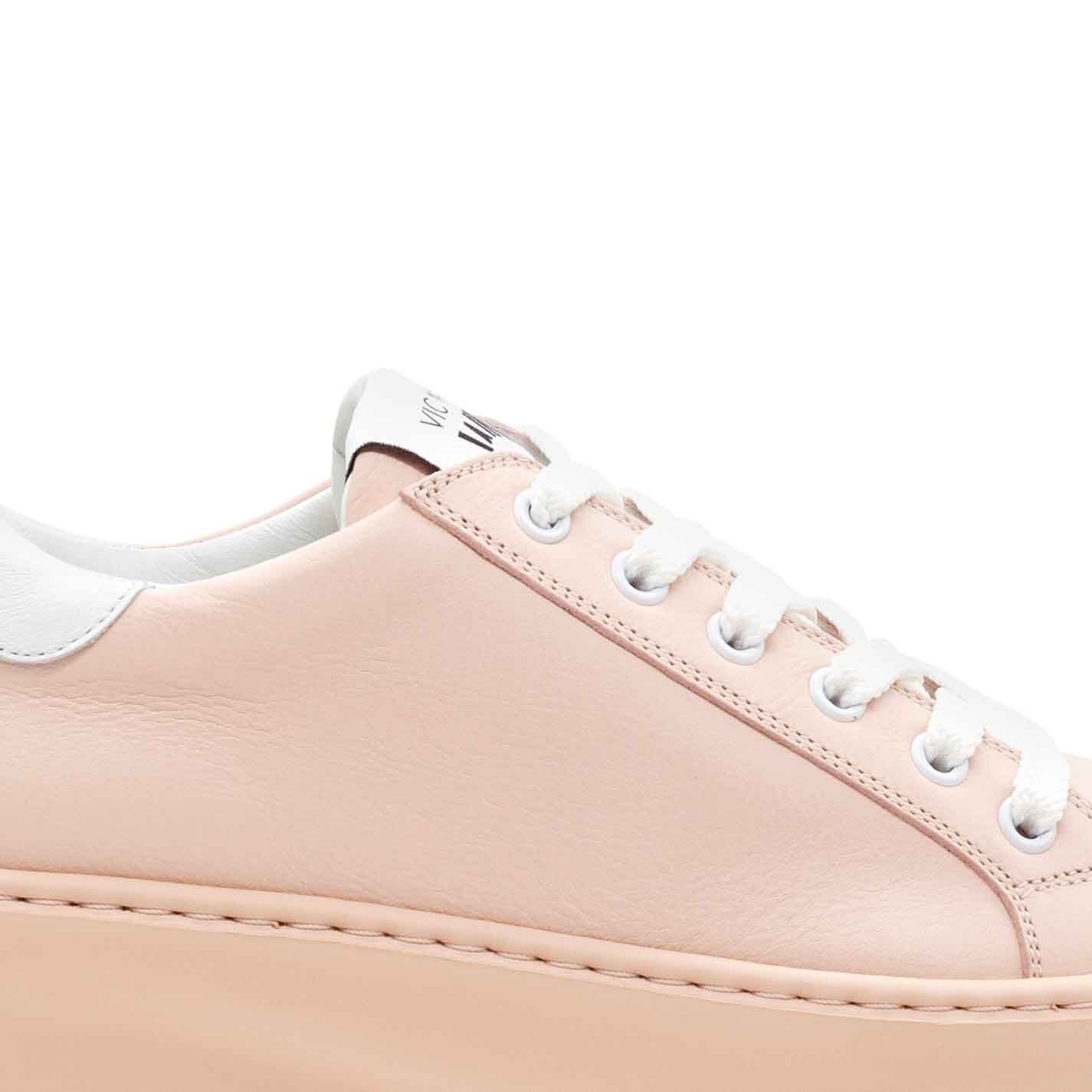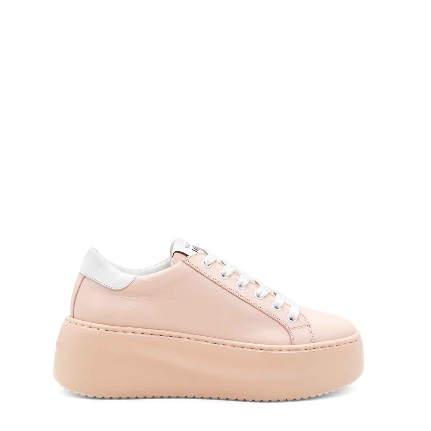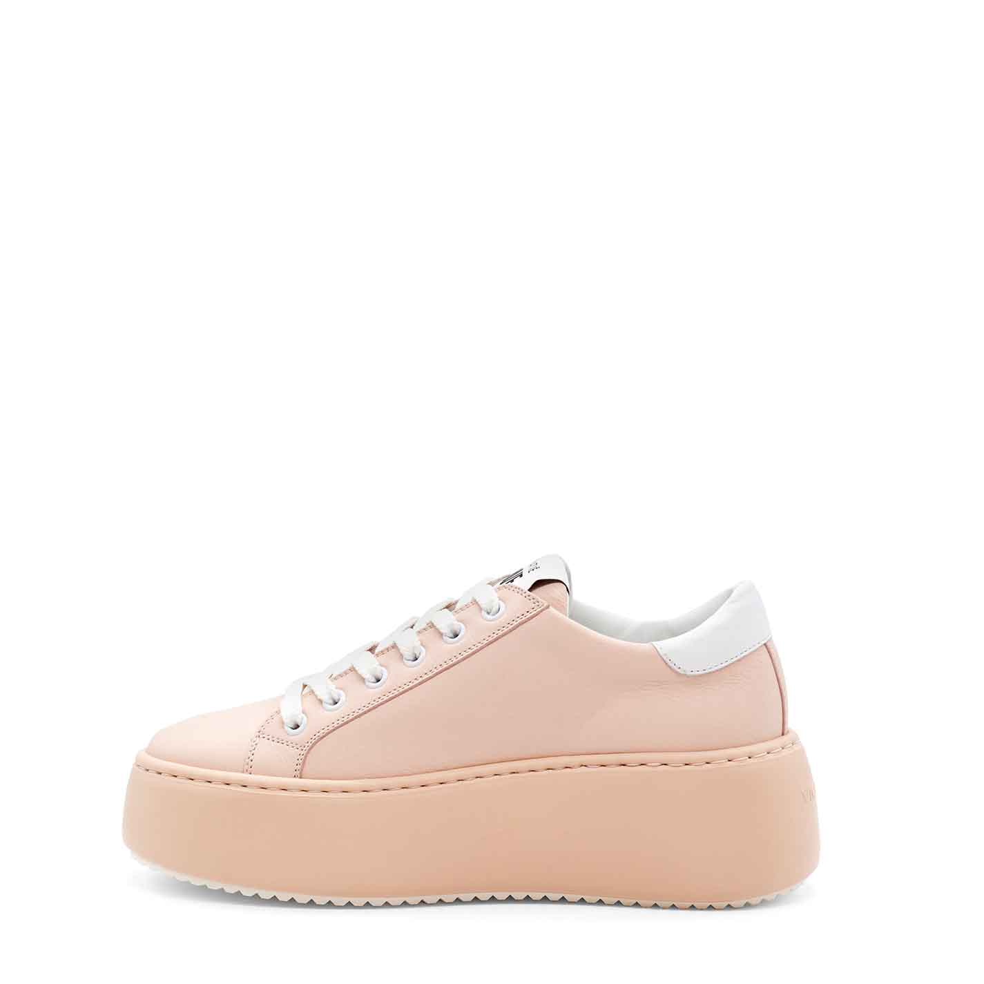 Wave light pink/powder-pink shoes in soft nappa calfskin, with minimalist lacing and contrasting spoiler. Futuristic rubber platform with slight angled effect on the outside, which provides comfort and gives the shoe a modern edge. Calfskin-covered insole. Made in Italy.