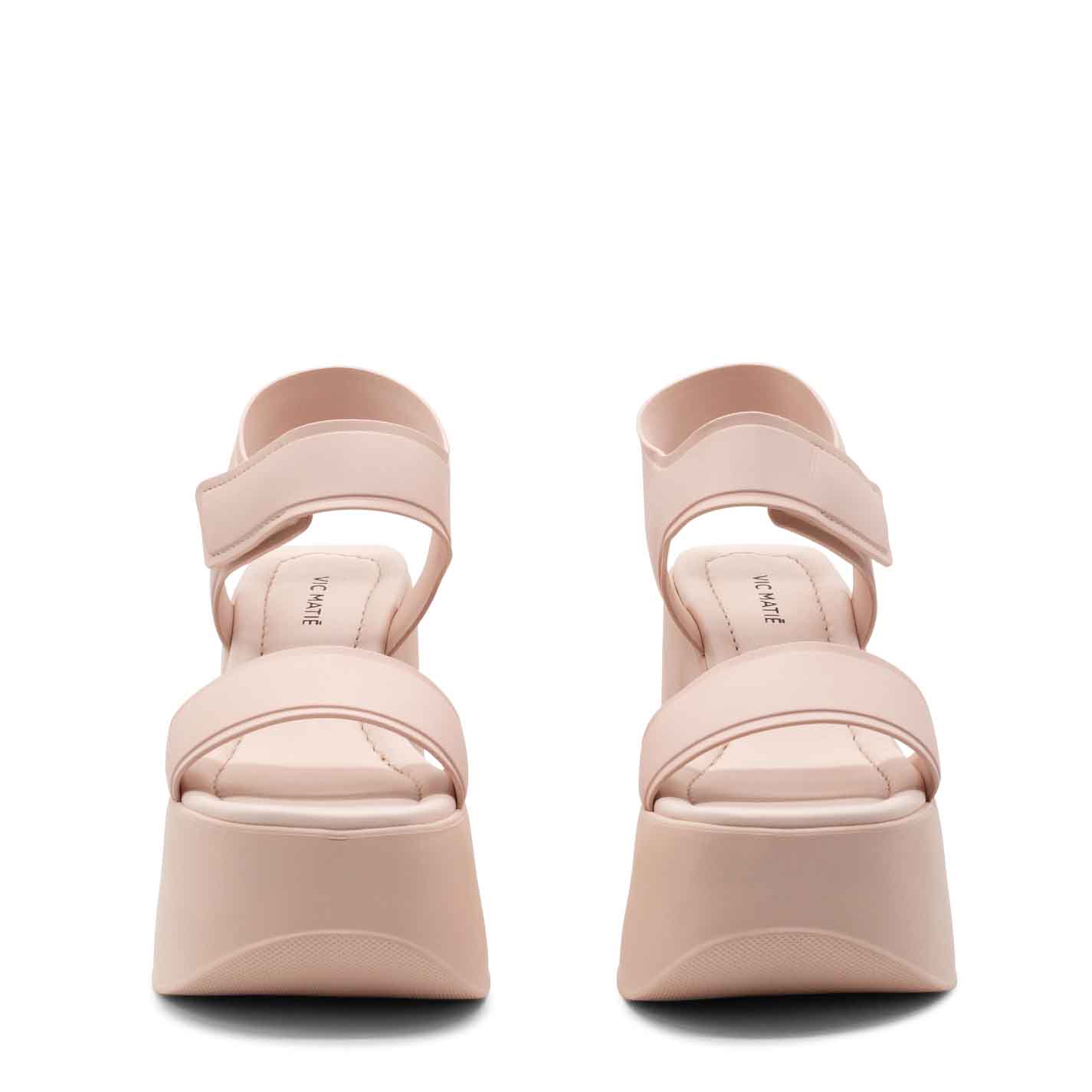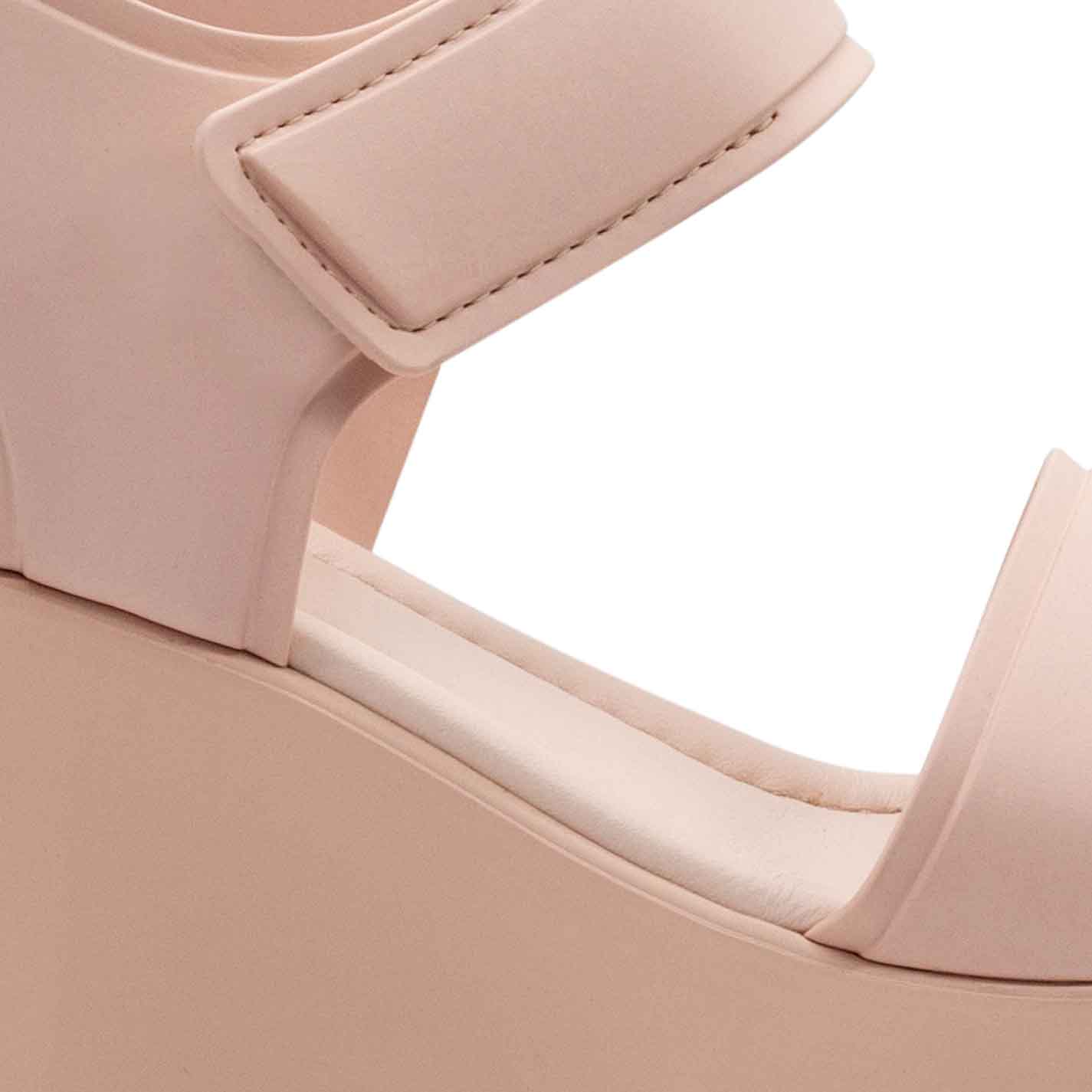 Yoko sandals in light pink eva with padded effect and adjustable velcro ankle strap. Super-light and comfortable foam wedge. Padded and stitched leather insole. Non-slip outsole. Made in Italy.