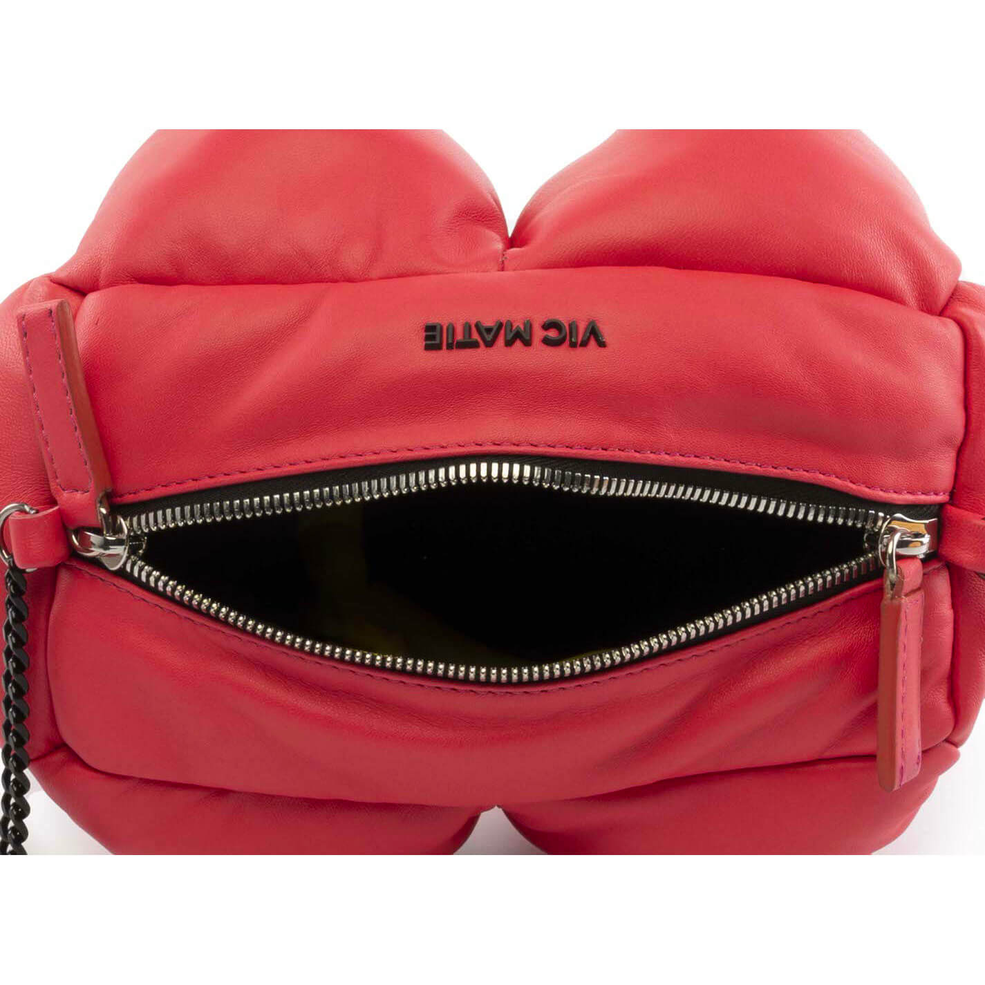 Tracollina ibiscus piramidi 3d,realizzata in nappa con coppe imbottite a mano, chiusura superiore con zip, tracolla di catena metallica verniciata. Impreziosita da logo metallico sul davanti.