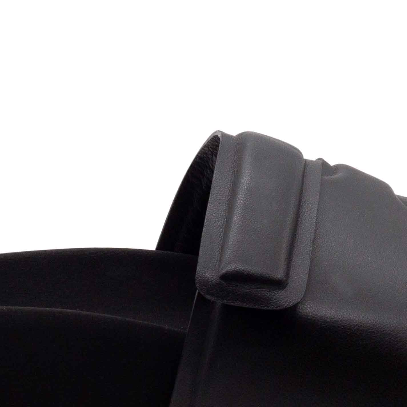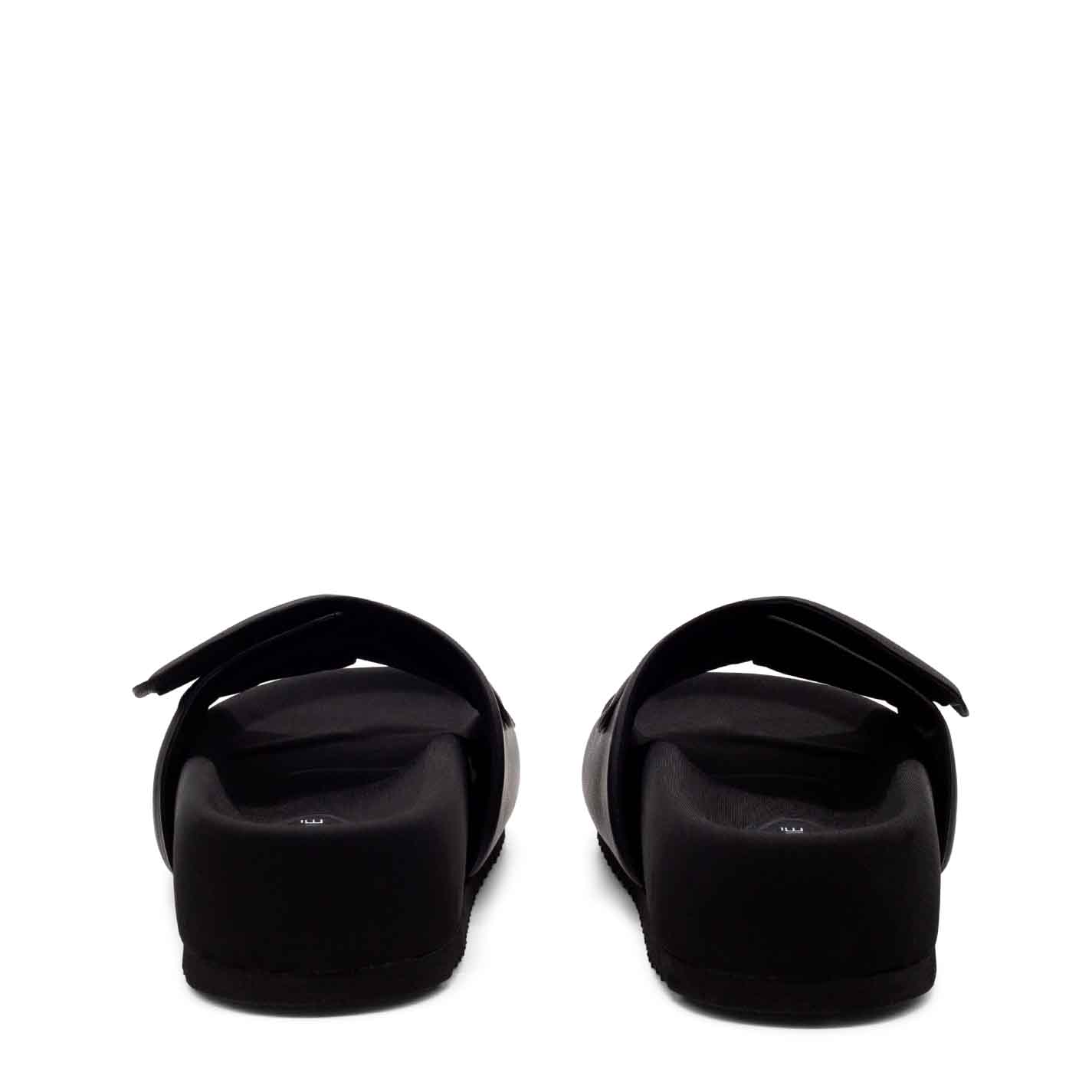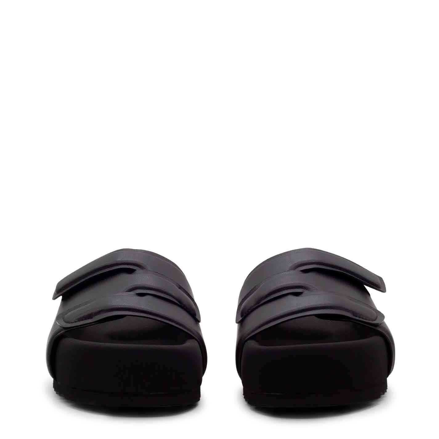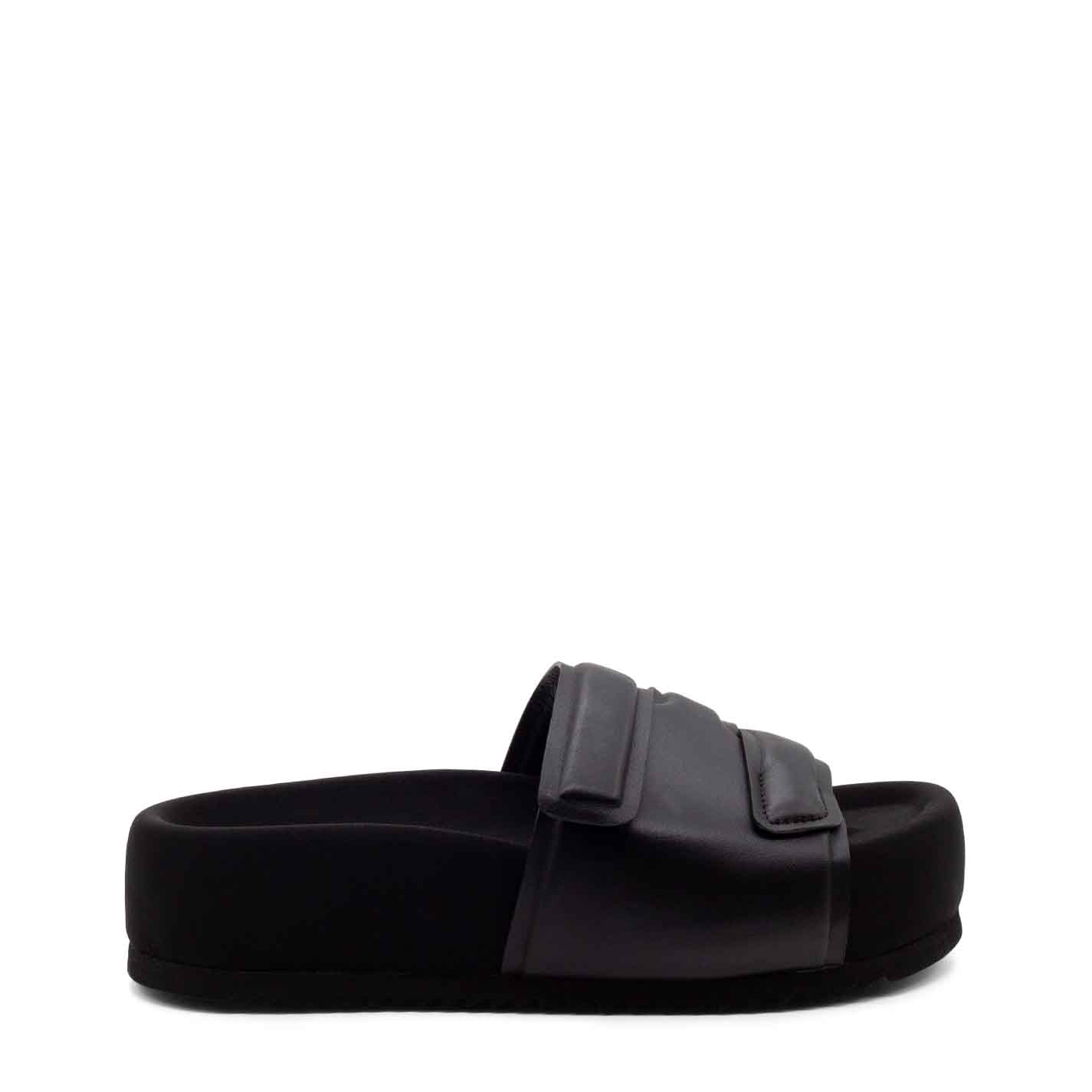 Bubble ciabatta flatform nera ,realizzato in morbida nappa di vitello lavorata a rilievo con gommapiuma, velcri regolabili. Fusbet ricoperto in lycra tono su tono con la tomaia. Suola in gomma dentellata. Made in Italy.