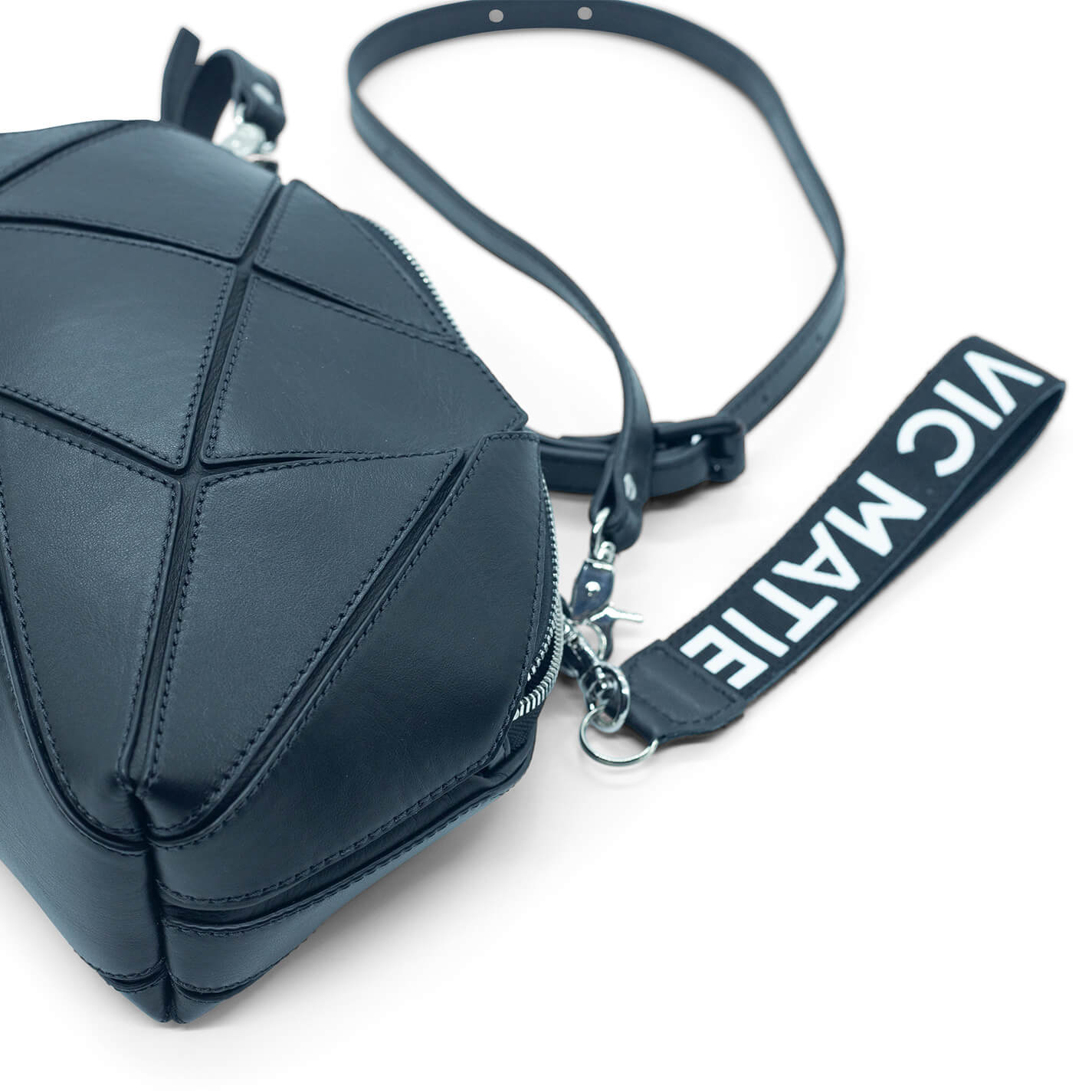 Pochette patch nerain pelle di vitello liscio. Caratterizzata da forme geometriche in pelle cucite;