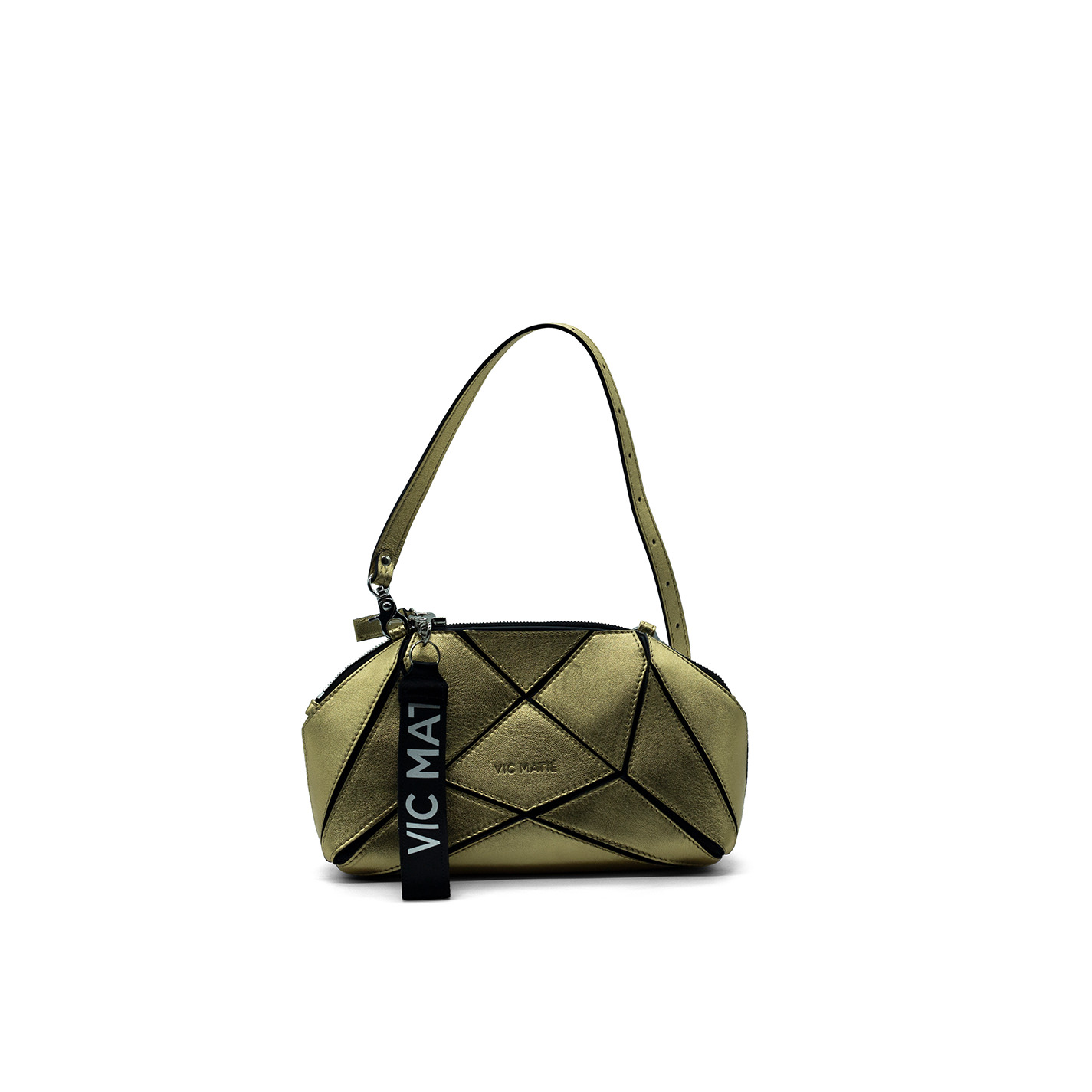 Pochette patch oroin pelle di vitello laminata. Caratterizzata da forme geometriche in pelle cucite;