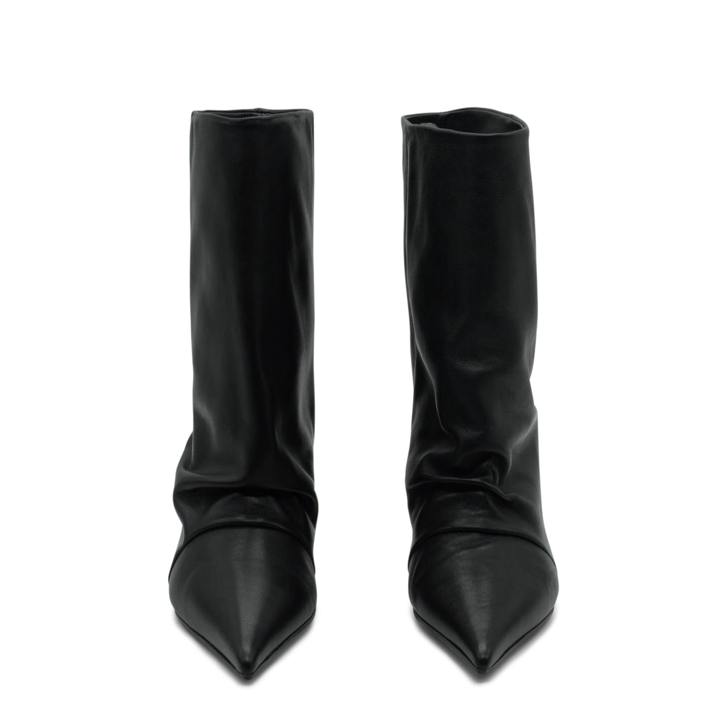 Cocoon Stivaletto minimal a tubo nero in morbida nappa ,con pieghe sul davanti. Zeppa interna avvolta dalla pelle, punta affusolata, suola gomma antiscivolo. Made in Italy.