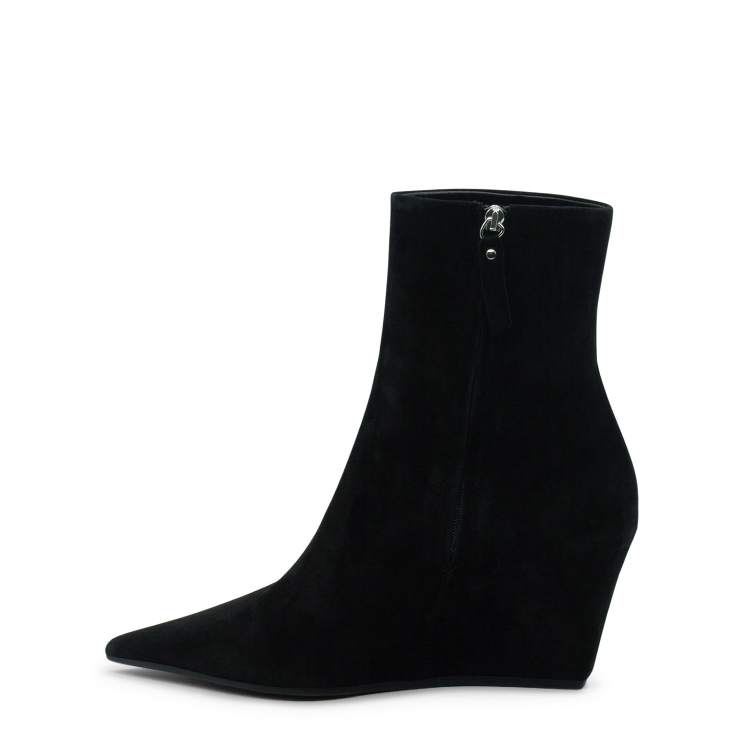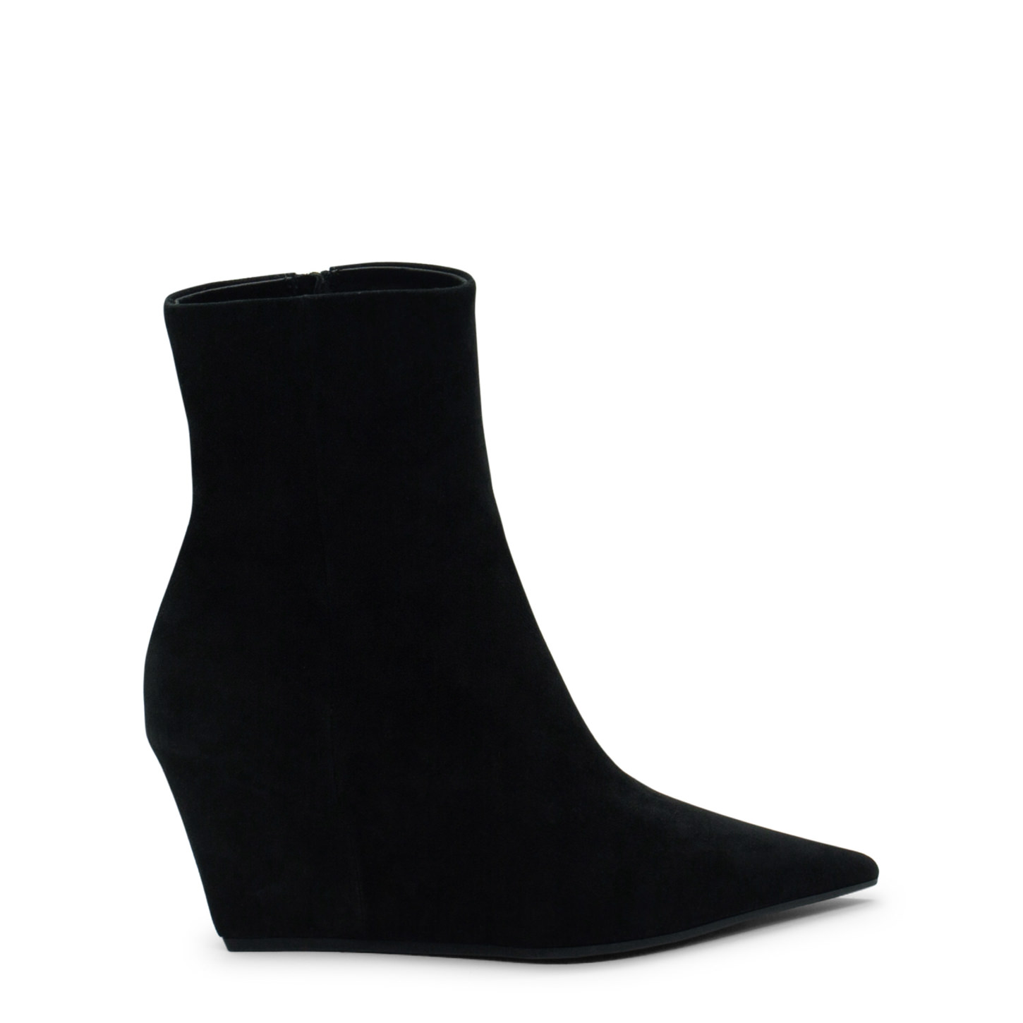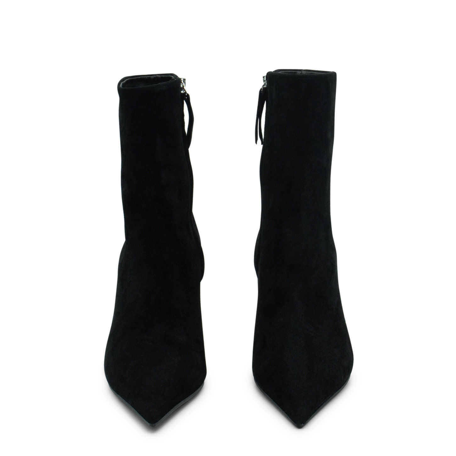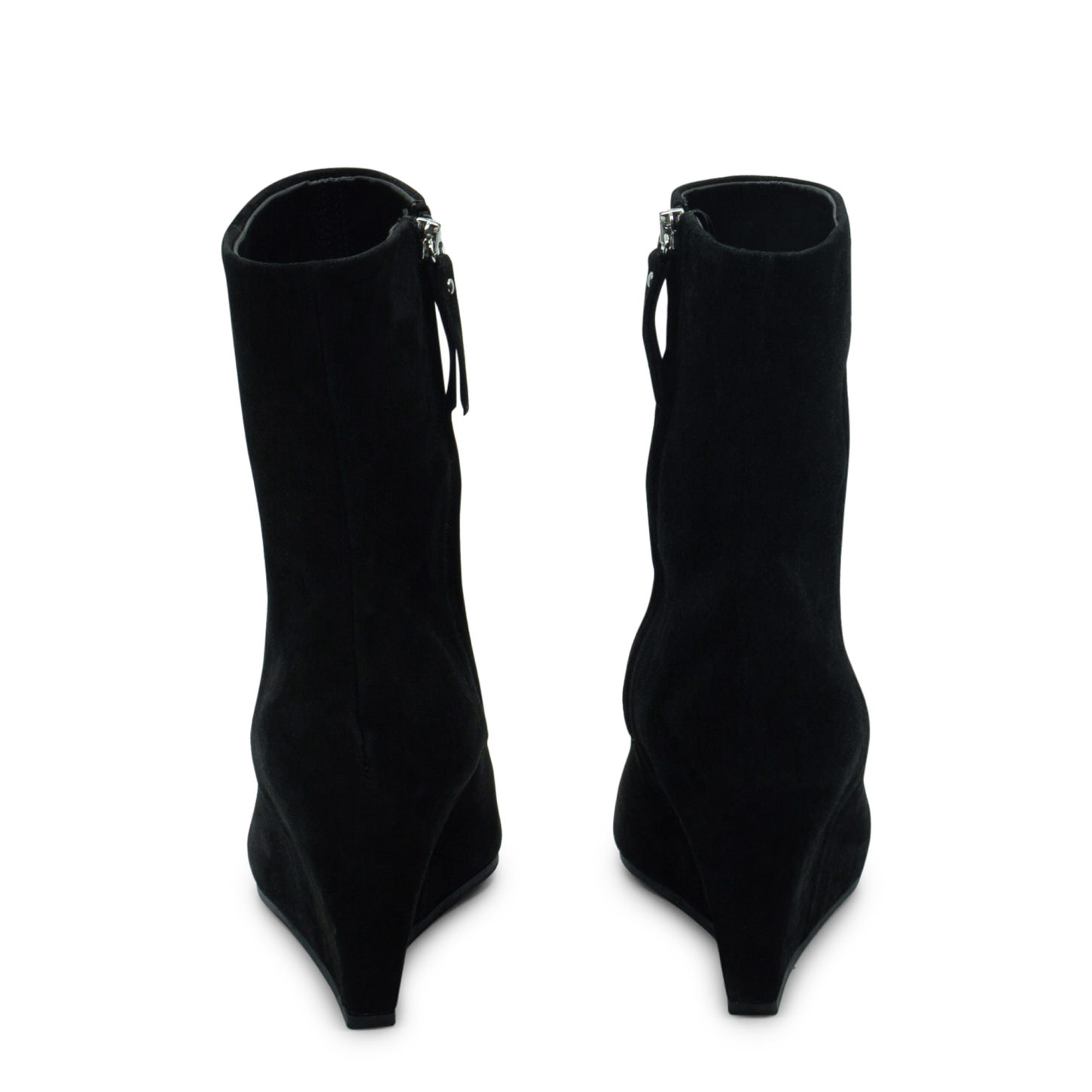 Cocoon Tronchetto minimal nero realizzato in morbido camoscio, zip riposta internamente per facilitare la calzata. Zeppa interna avvolta dalla pelle, punta affusolata, suola gomma antiscivolo. Made in Italy.