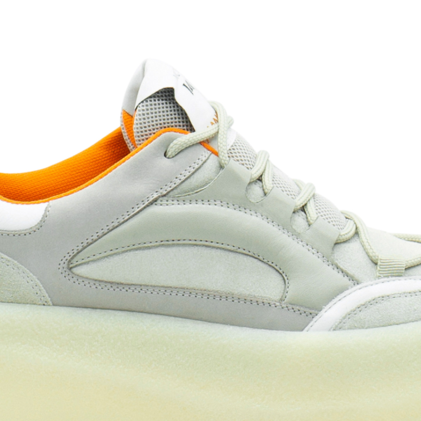 Creepy osso/avorio/bianca realizzata in crosta e nabuk con riporti in pelle tono su tono e spoiler a contrasto. Platform in para con leggera sporgenza esterna. Morbido plantare ricoperto pelle. Made in Italy.