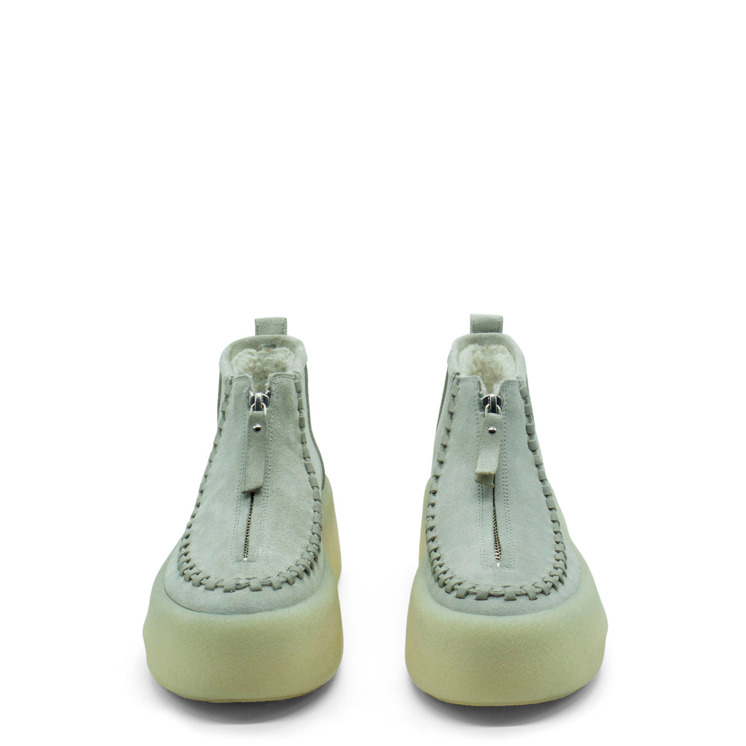 zip anteriore, infilatura in pelle intorno alla vaschetta. Platform in para con leggera sporgenza esterna. Morbido plantare ricoperto pelle. Made in Italy.