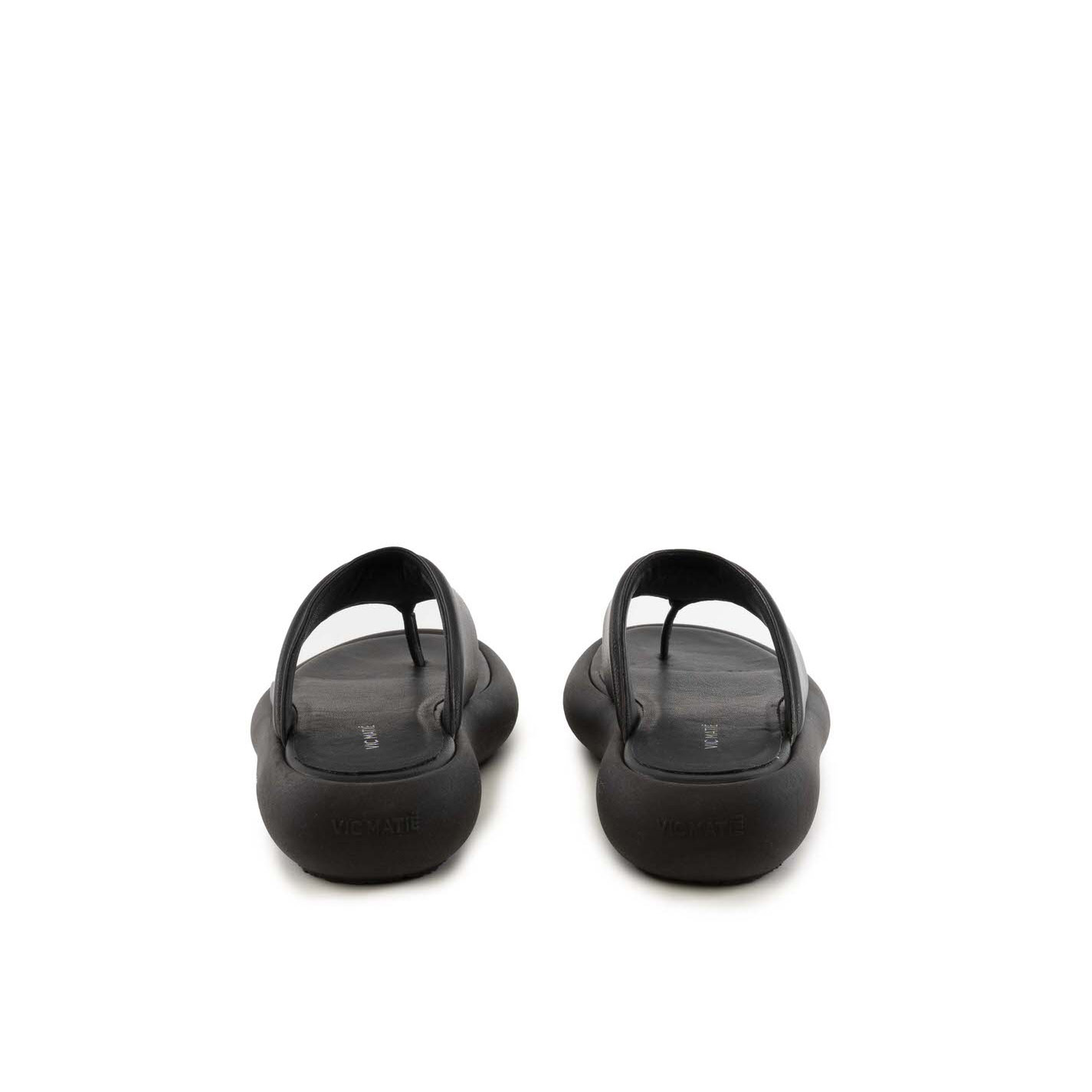 Donut infradito nero in vitello nappato e con motivo a rilievo. Suola in gomma leggera dalla forma bombata, con fusbet confort ricoperto in pelle. Made in Italy.