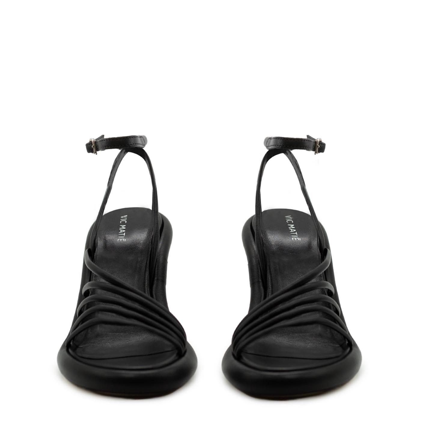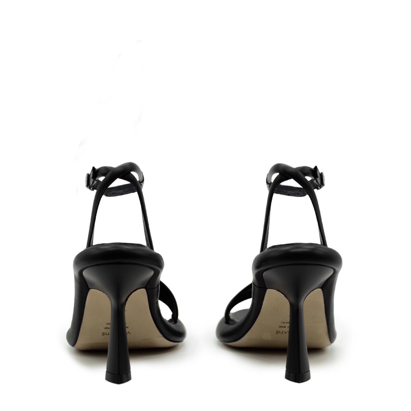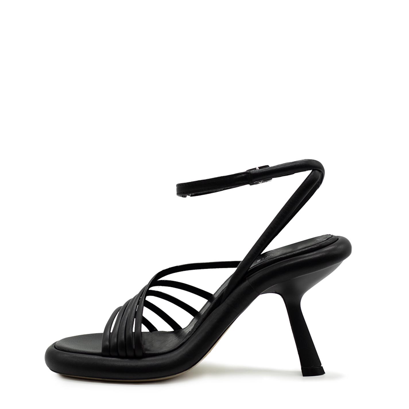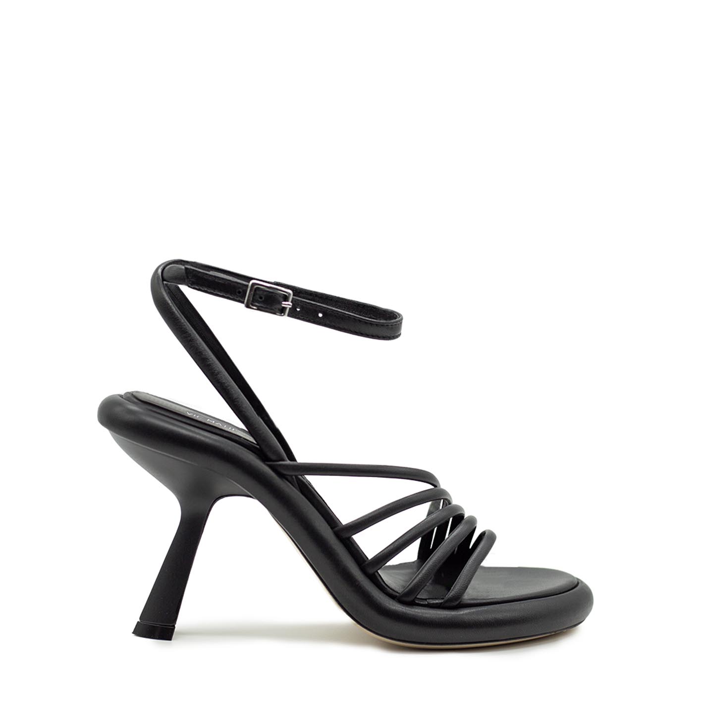 Dosh sandalo listini in nappa nero ,realizzato con piccoli mignon disposti a raggera;