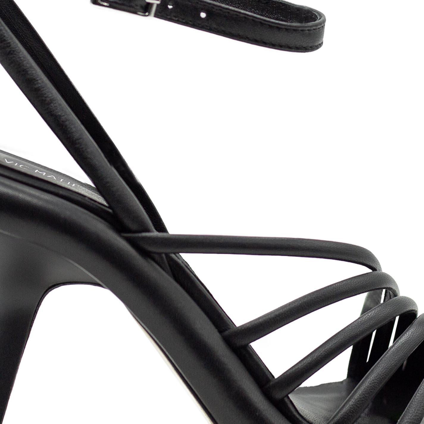 cinturino regolabile alla caviglia. Suola in cuoio, plateau bombato ricoperto in pelle, con tacco verniciato matt che ricorda la "slash". Sottopiede confort ricoperto pelle. Made in Italy.