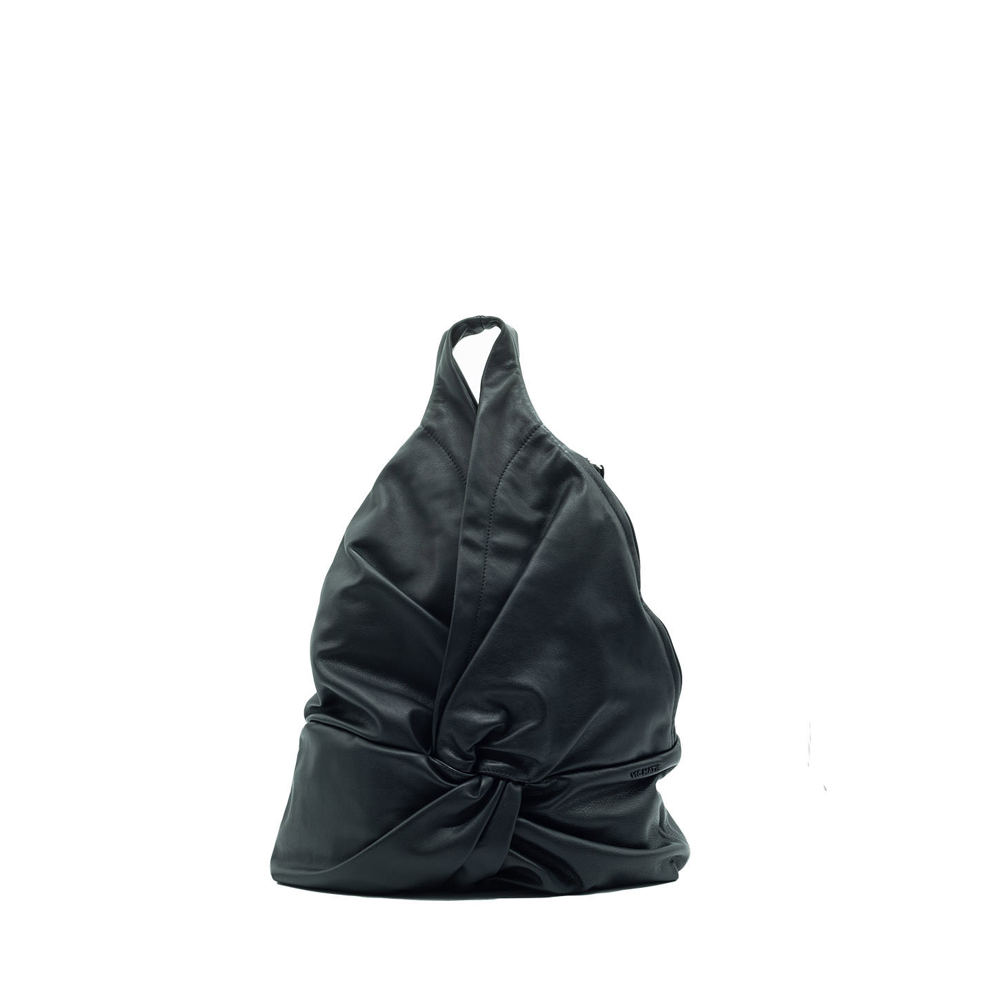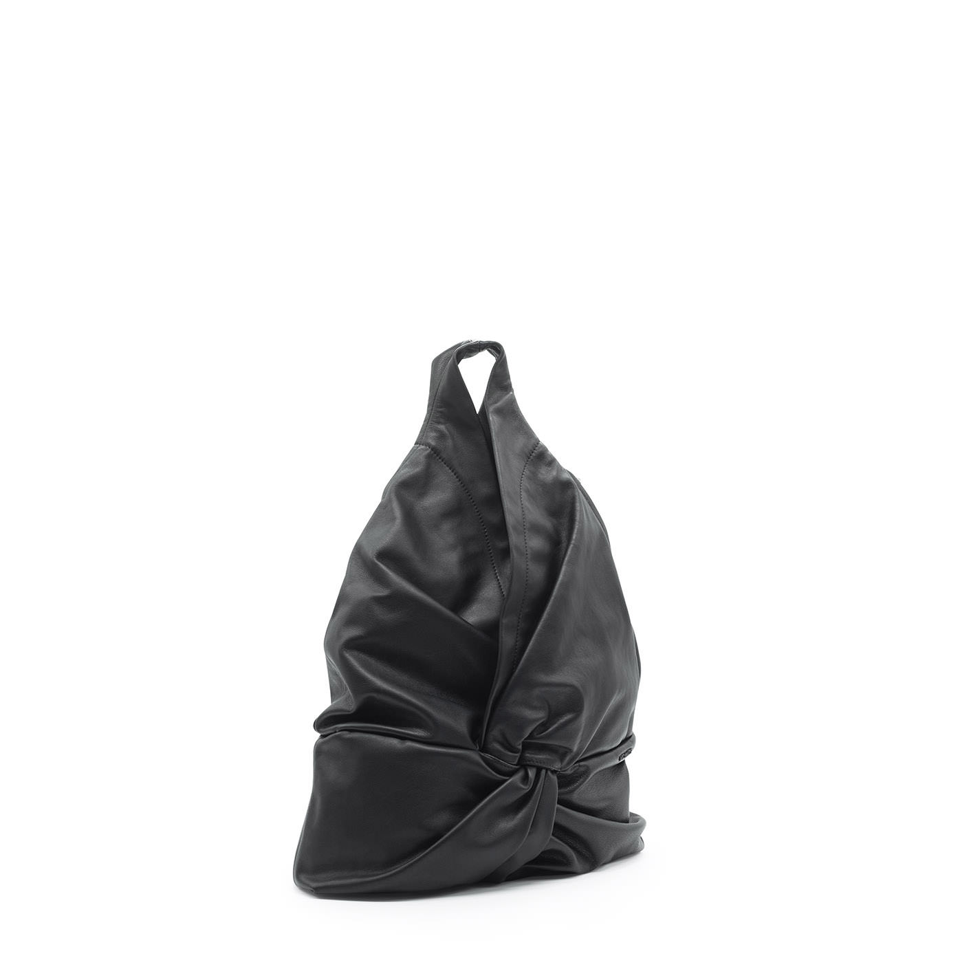 Sacca nodo nera monospalla in morbida nappa di vitello, chiusura con automatici nascosti.