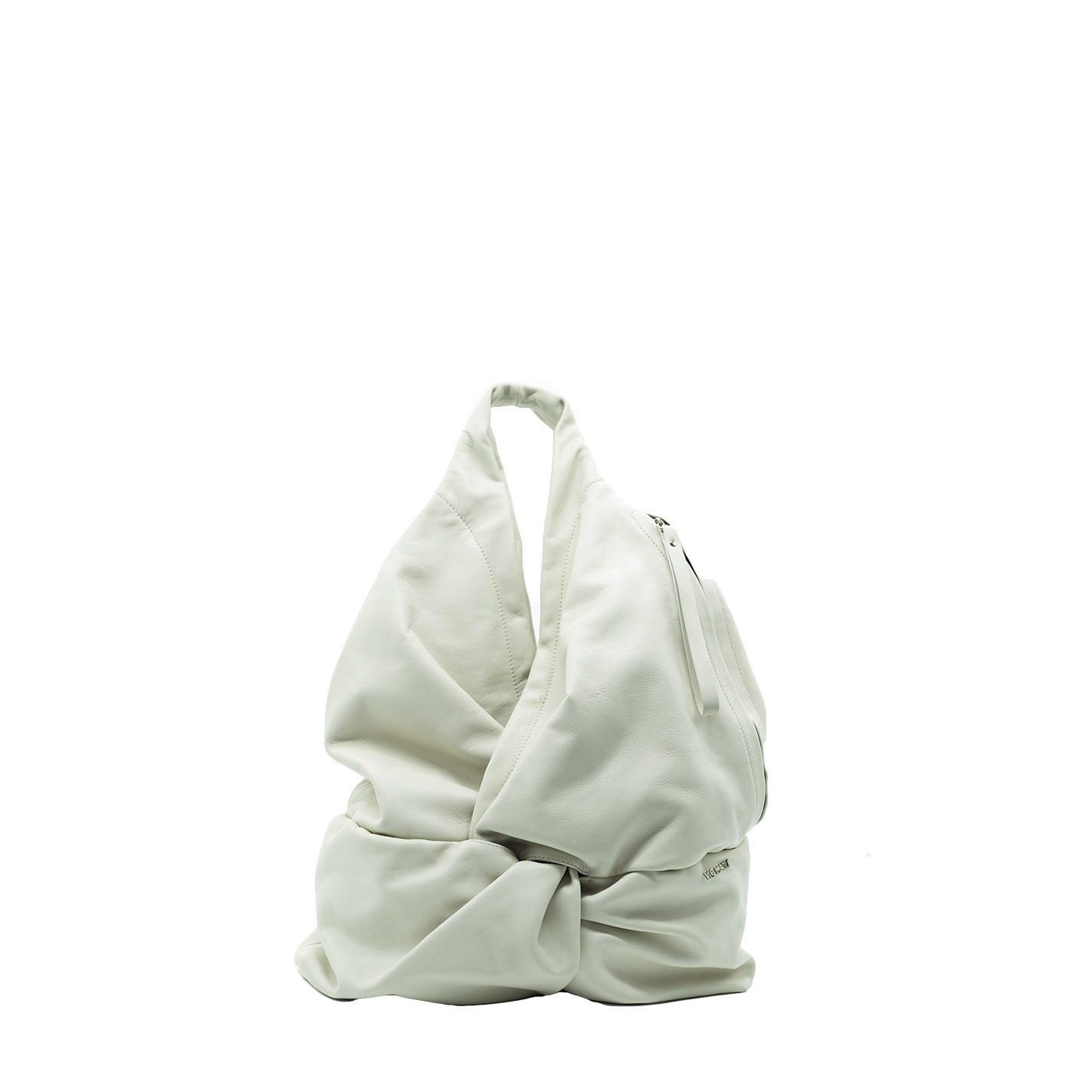 Sacca nodo panna monospalla in morbida nappa di vitello, chiusura con automatici nascosti.