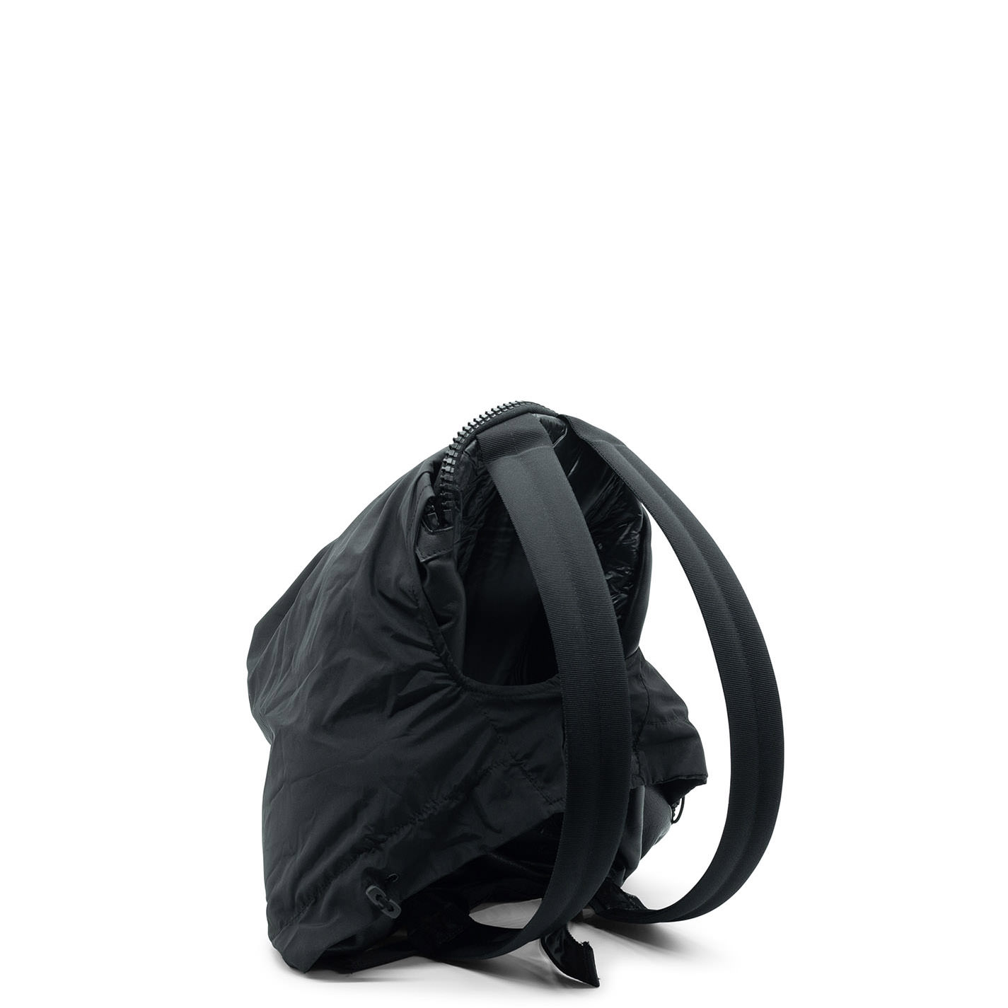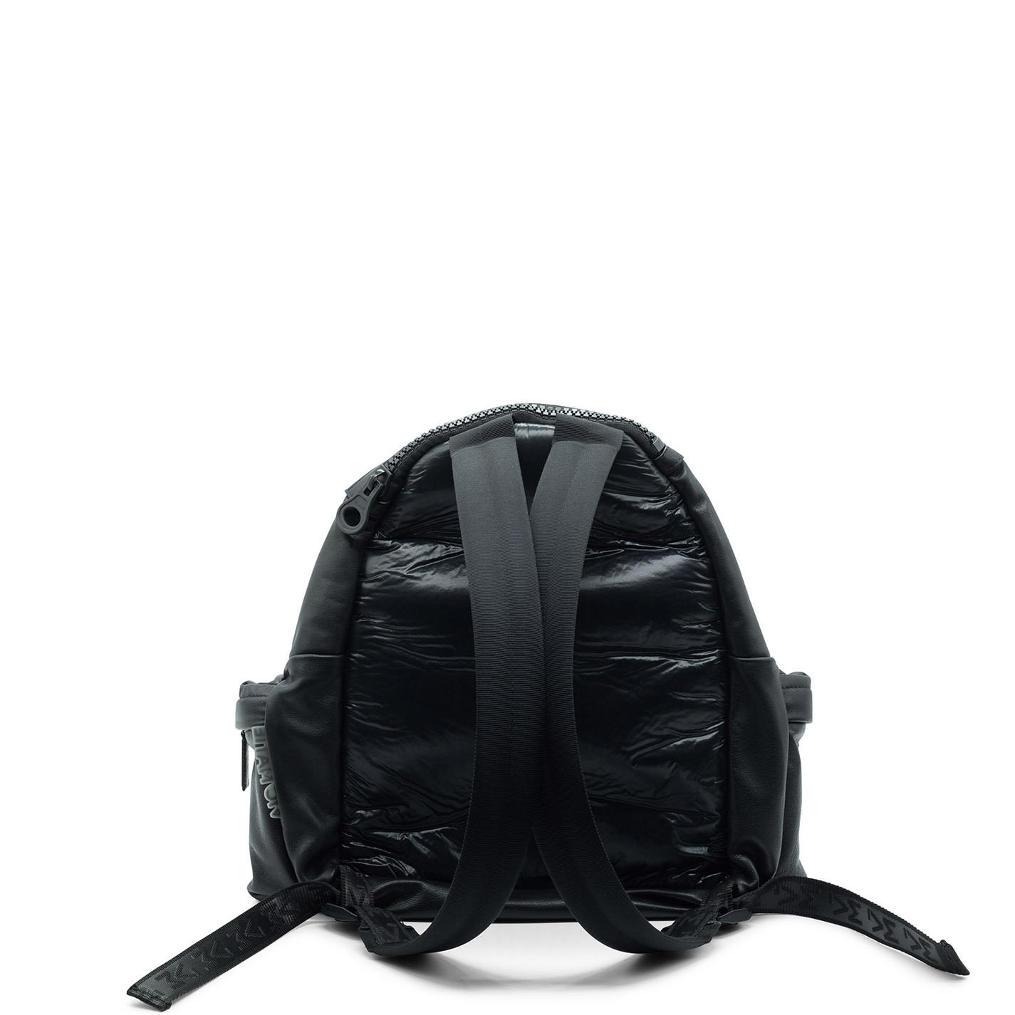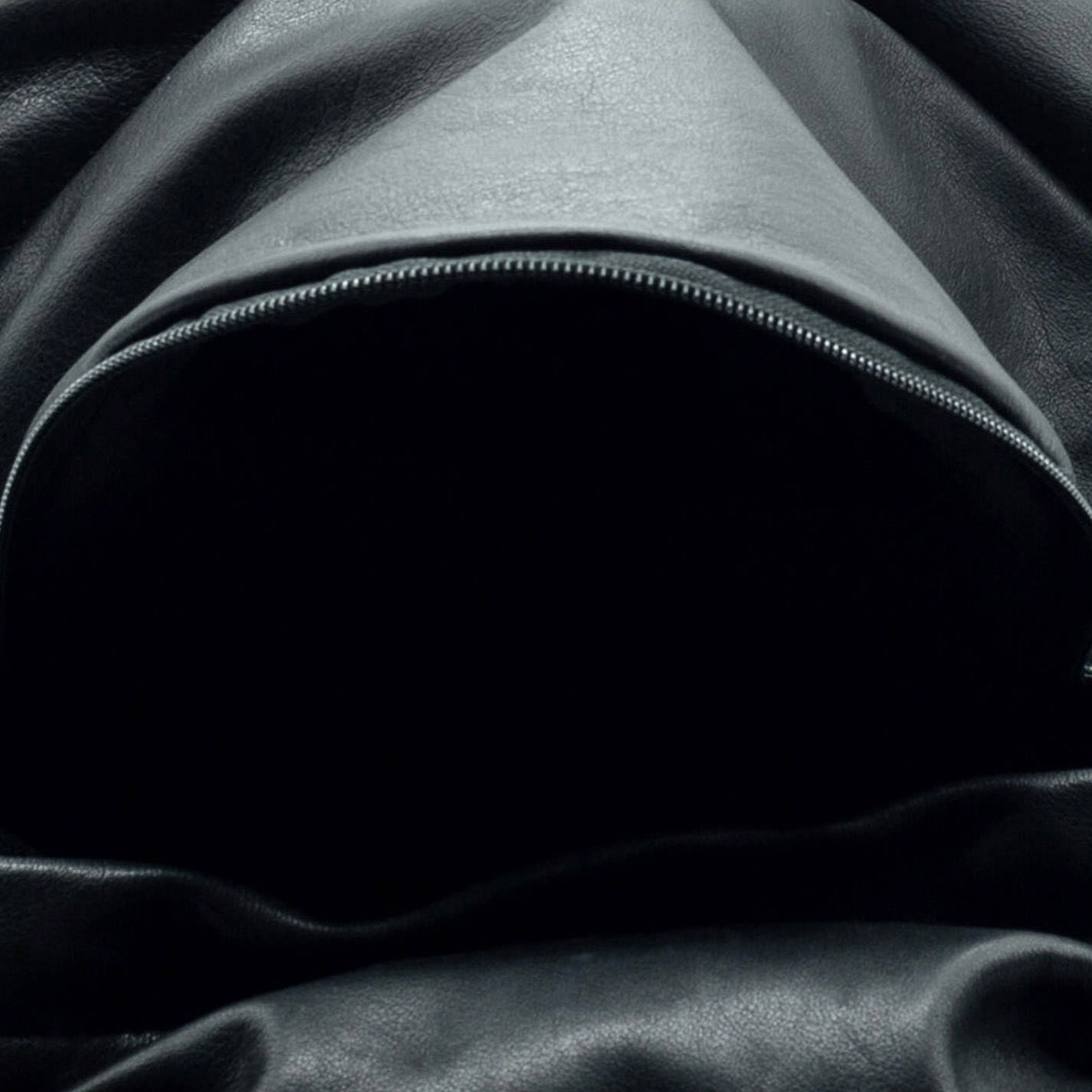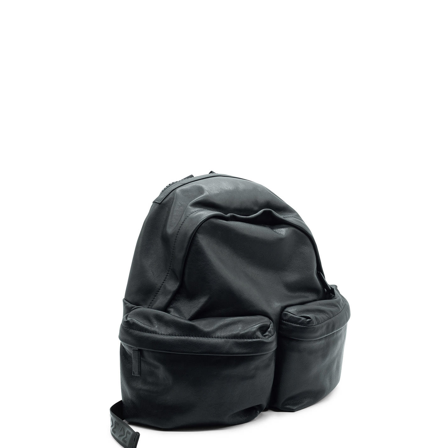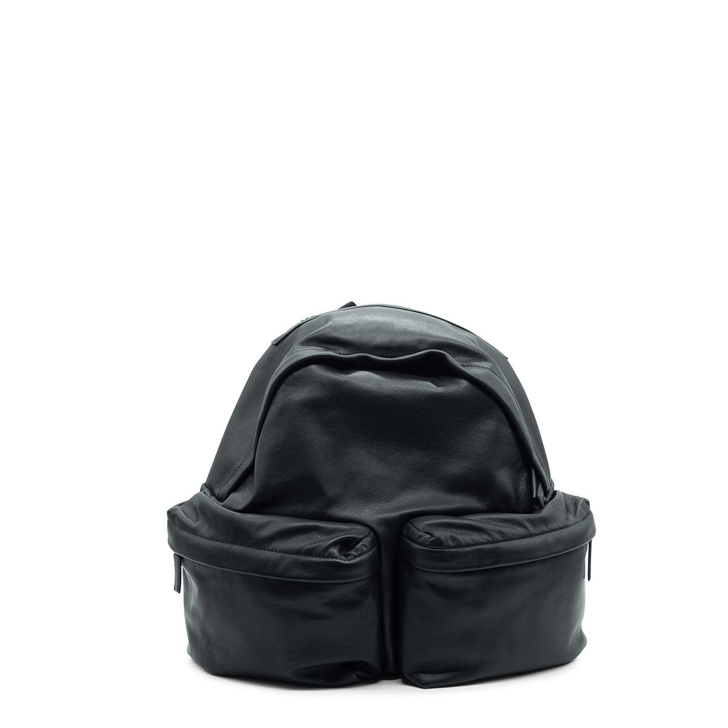 Zaino con maxi tasche nero realizzato in morbida nappa di vitello. Apribile con zip nascosta e taschina superiore;