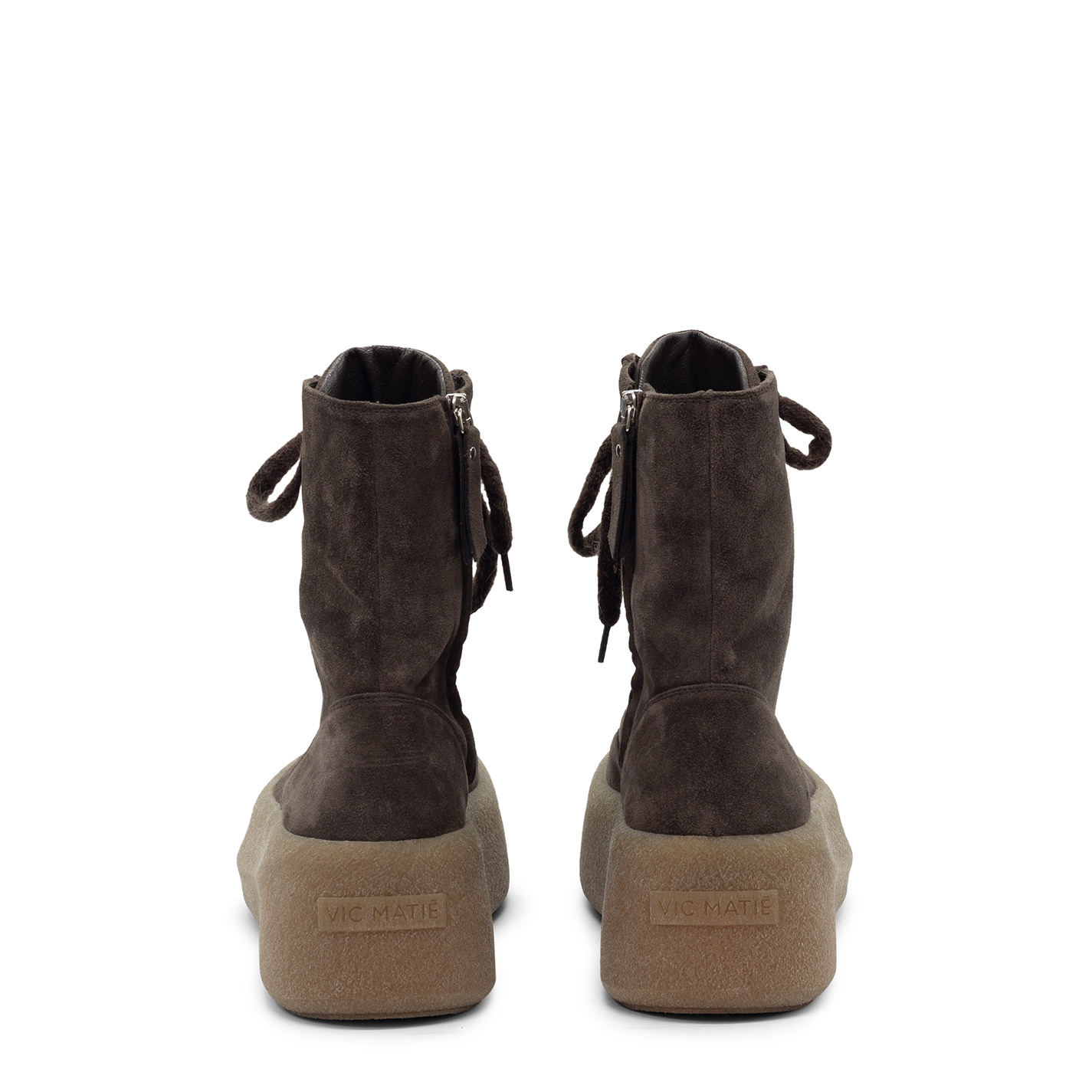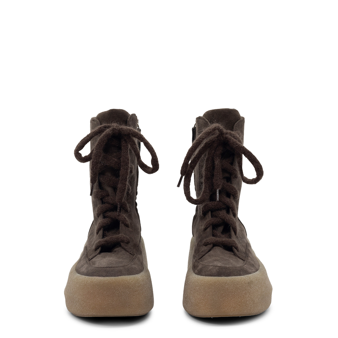 F04 Creepy-Tronchetto allacciato testa di moro in crosta di vitello, slanciato ed aderente, con lacci voluminosi in lana;