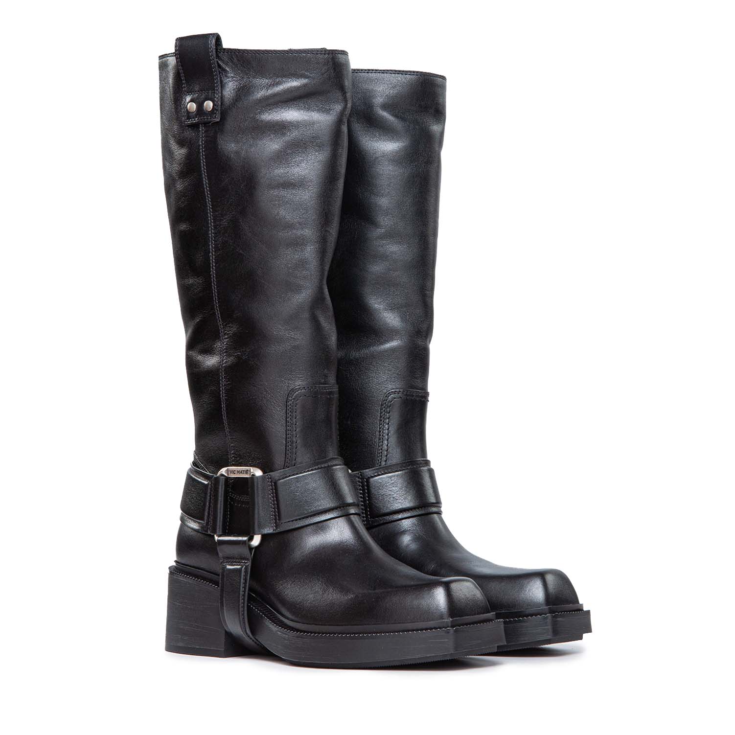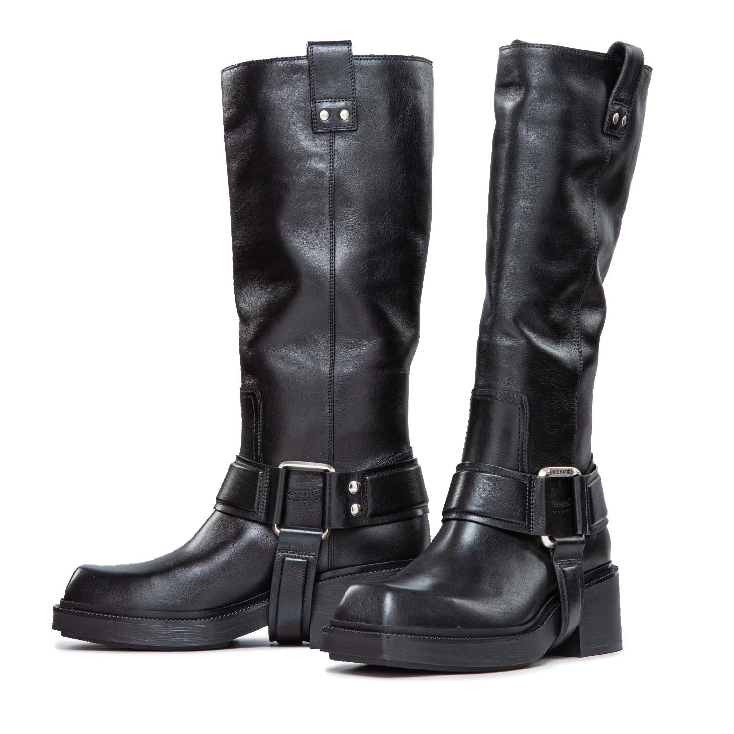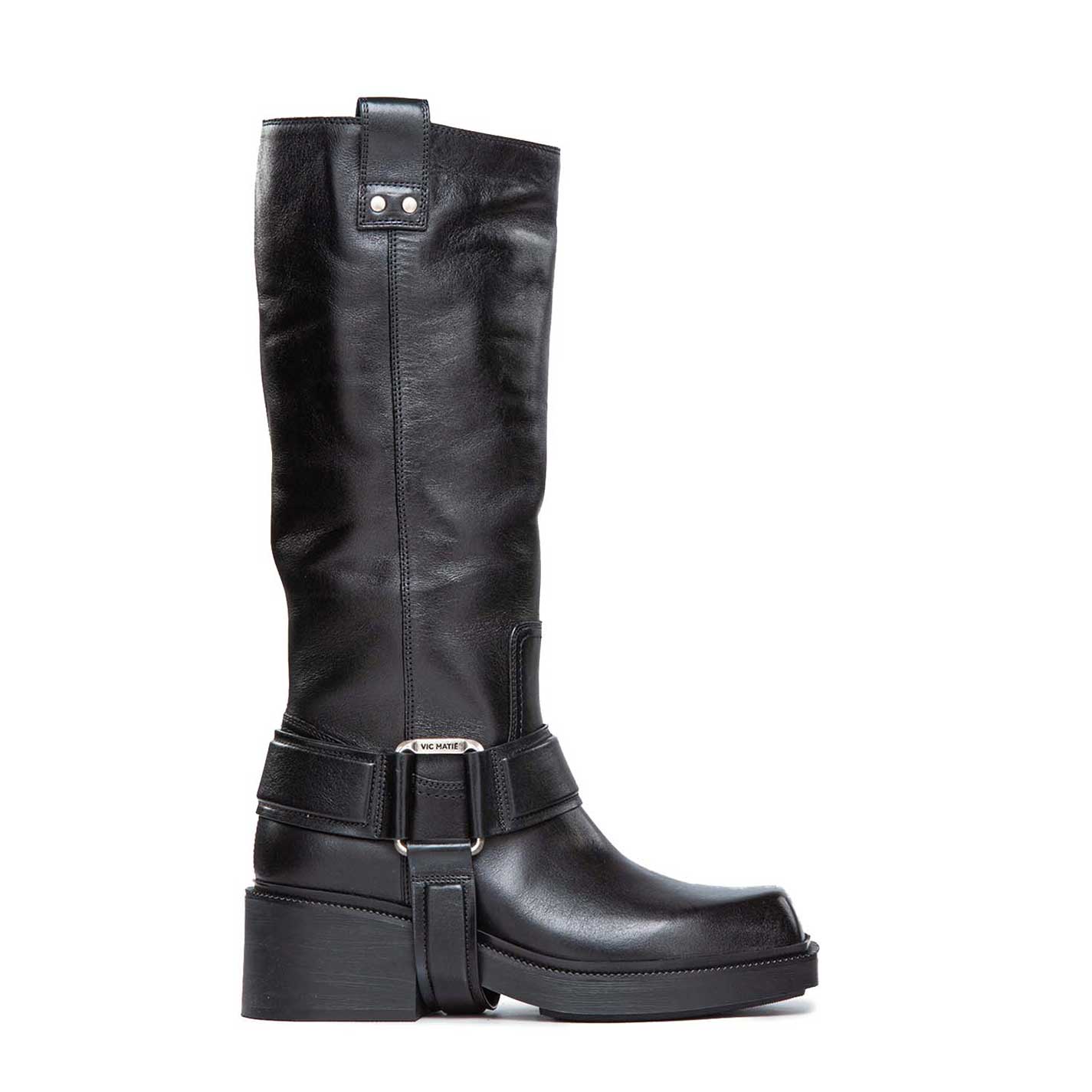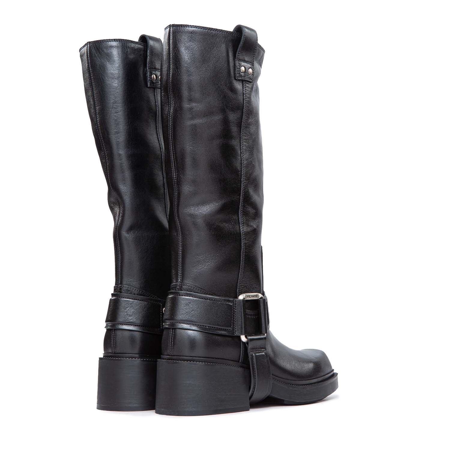 F06 Fray-Stivale gaucho nero in pelle di vitello semi lucido, con cinturone estraibile con anelli squadrati e logati con motivi bombè.Suola importante in gomma con battistrada antiscivolo. Morbido plantare ricoperto pelle. Made in Italy.