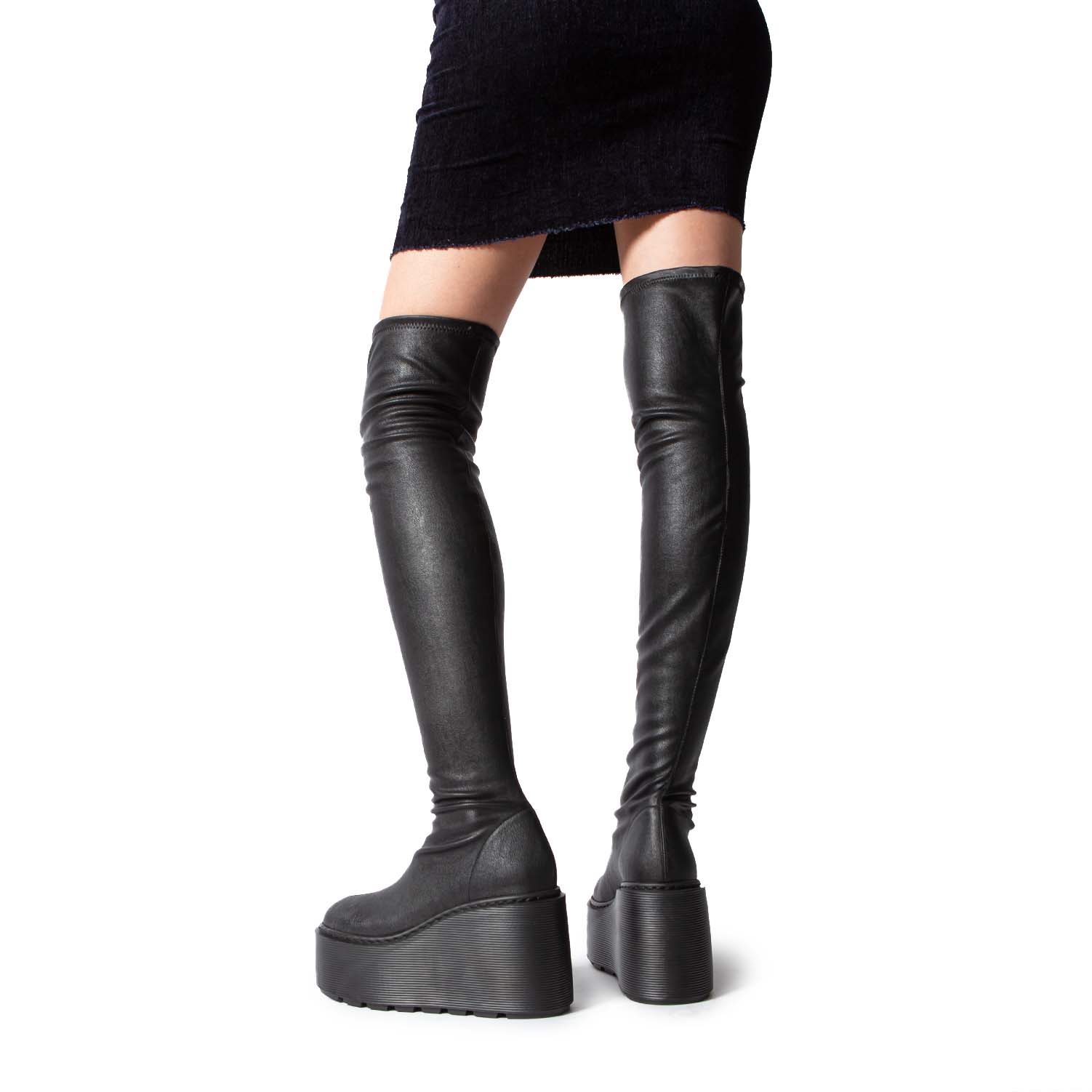 F20 Zeppa Stripy-Stivale Cuissardes nero aderente e slanciato, altezza sopra al ginocchio;
