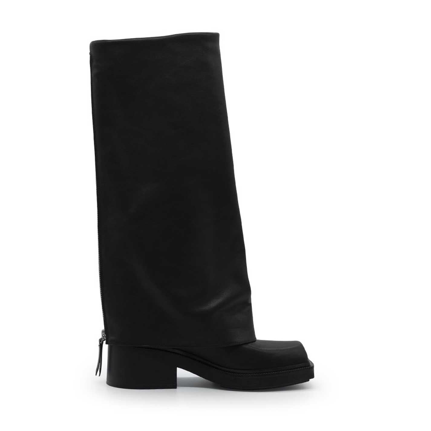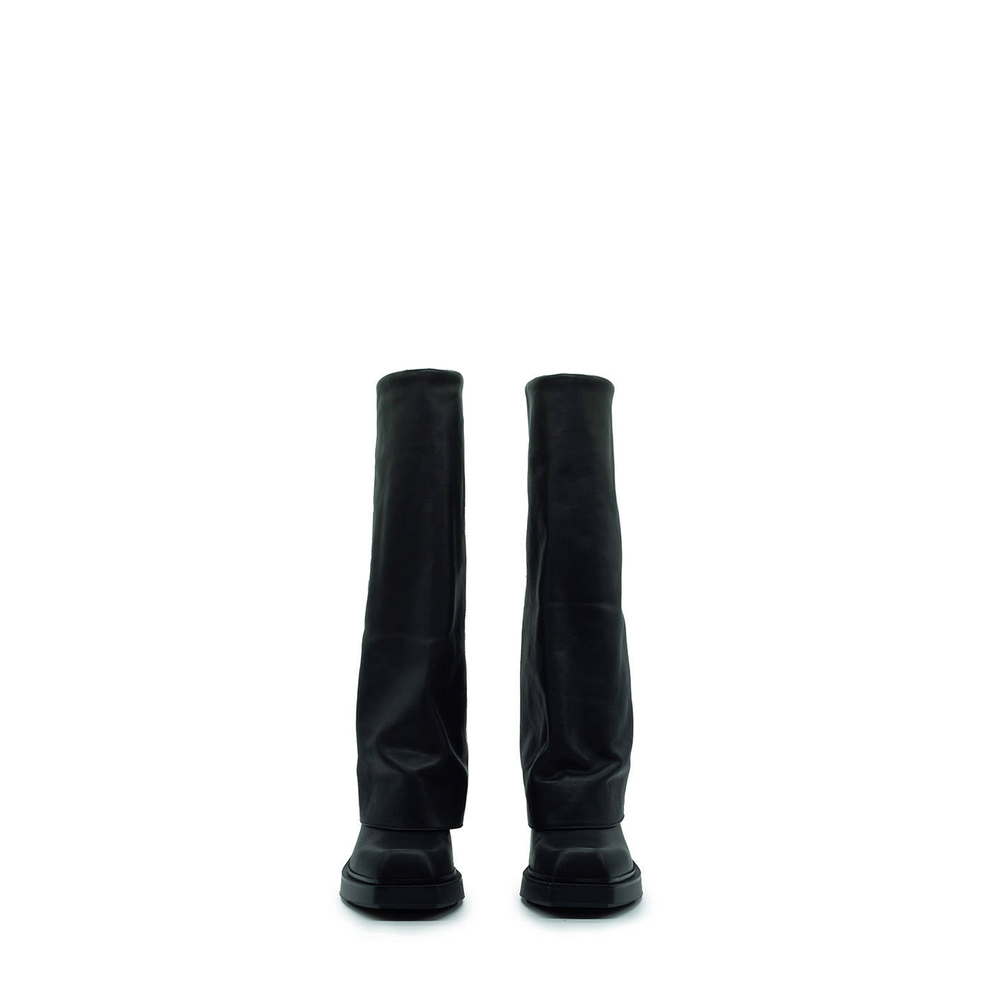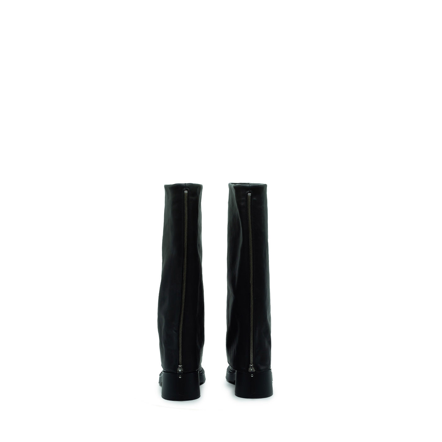 Fray stivale tubo con risvolto nero in pelle di vitello nappato, con zip di metallo apribile nel retro. Suola importante in gomma con battistrada antiscivolo. Morbido plantare ricoperto pelle. Made in Italy.