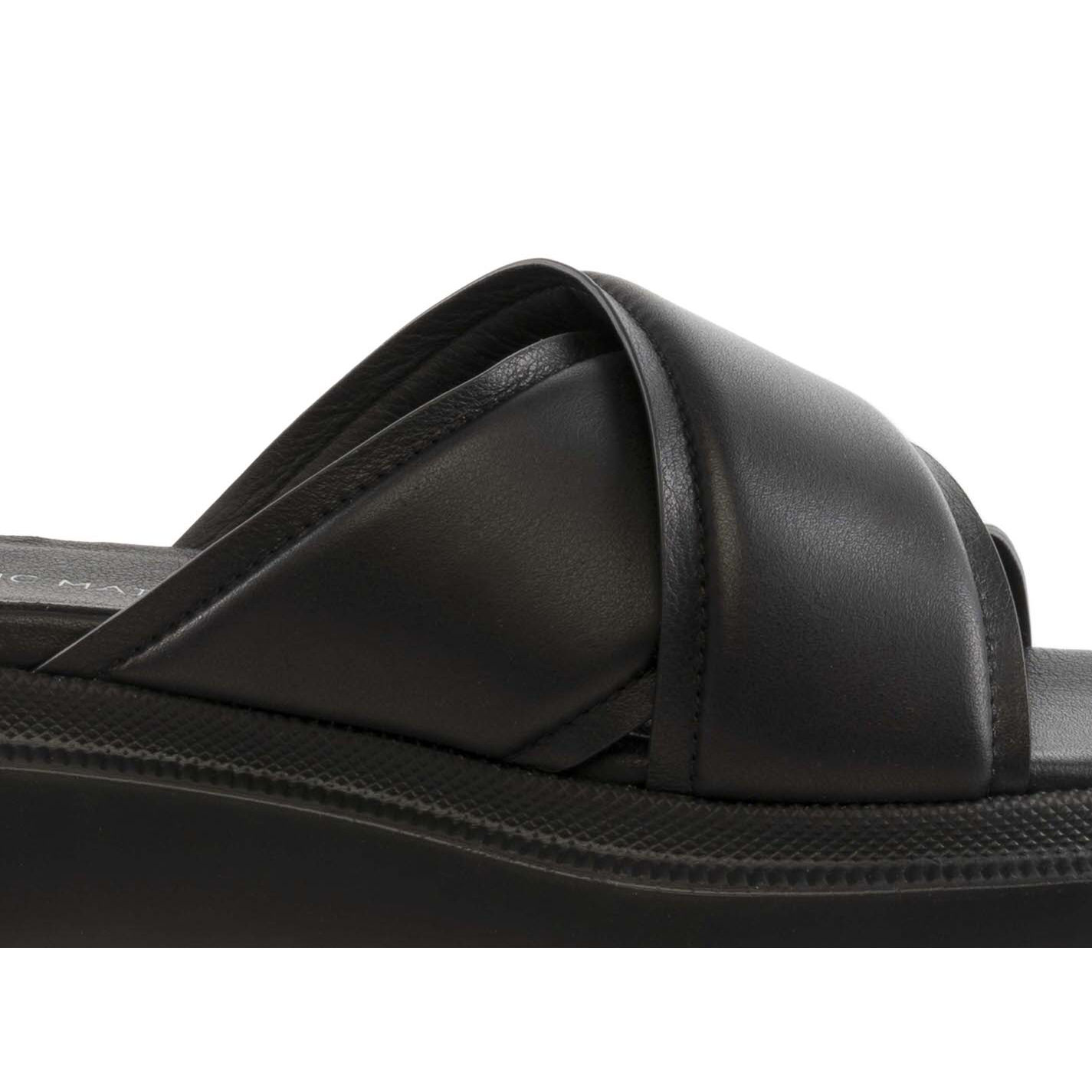 Gear ciabatta nera in vitello nappato, con maxi fasce incrociate e imbottite. La suola realizzata in materiale espanso super leggero ha delle tacche che ricordano l'ingranaggio;