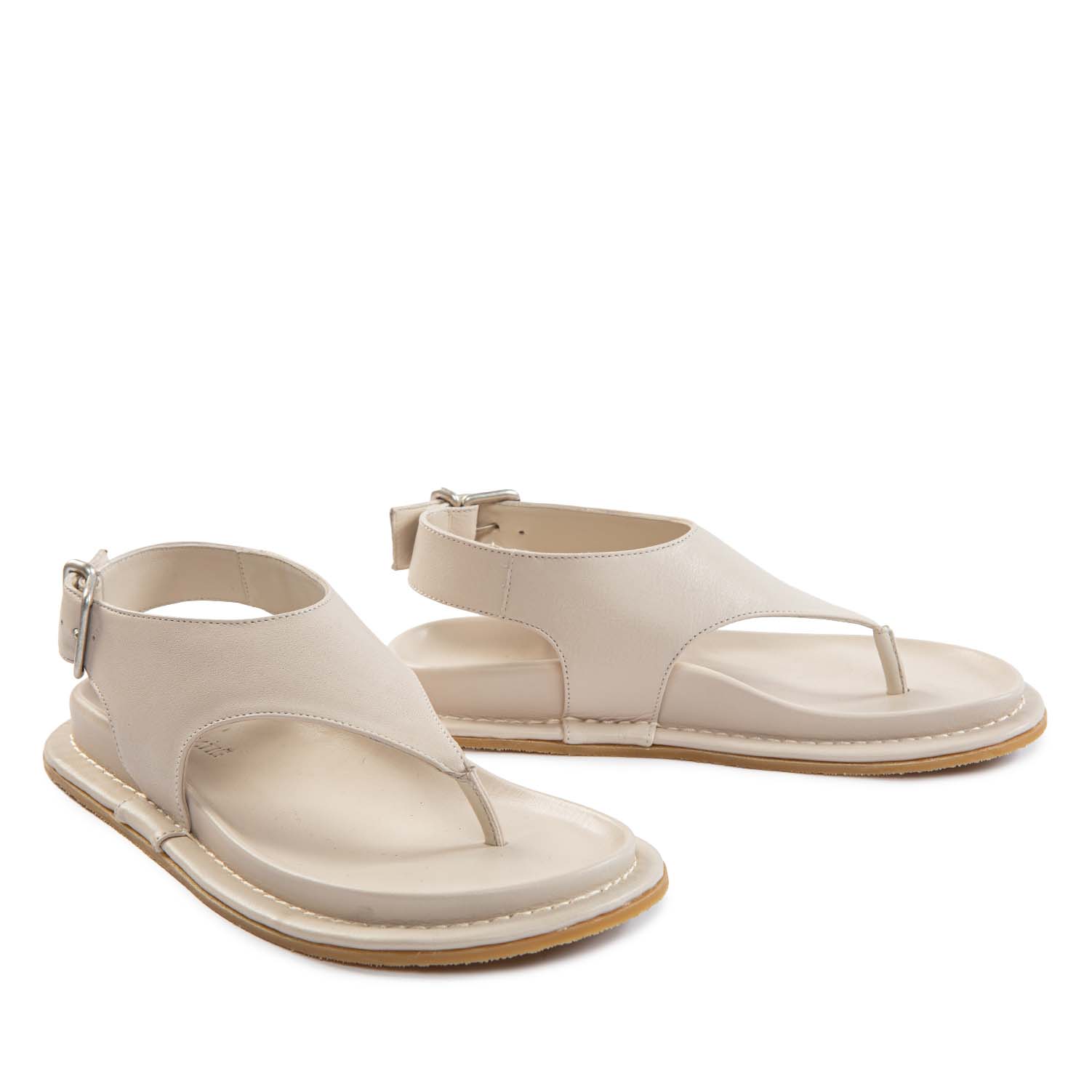 K04_Lido_Sandalo infradito osso,realizzato in pelle liscia, dal design minimal ed elegante con cinturino regolabile alla caviglia e fibbia in metallo. Plantare anatomico rivestito per massimo comfort e suola piatta in gomma flessibile e antiscivolo. Raffinato, leggero e versatile, ideale per look estivi casual e confortevoli.