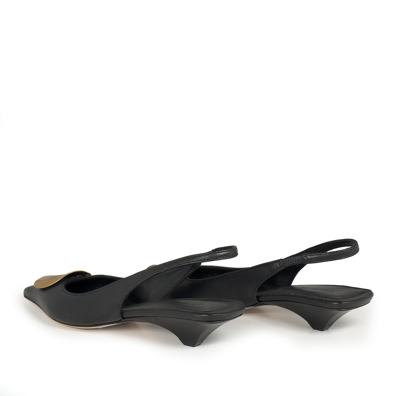 K20_Kitty_Chanel nera ,Realizzata in morbida nappa dalla linea affusolata, con elastico laterale per una calzata confortevole. Il dettaglio a moneta sul collo del piede aggiunge un tocco contemporaneo, mentre il tacco basso rivestito in pelle assicura stabilità. Suola in cuoio e manifattura Made in Italy. Un modello elegante e versatile, che unisce comfort e stile.
