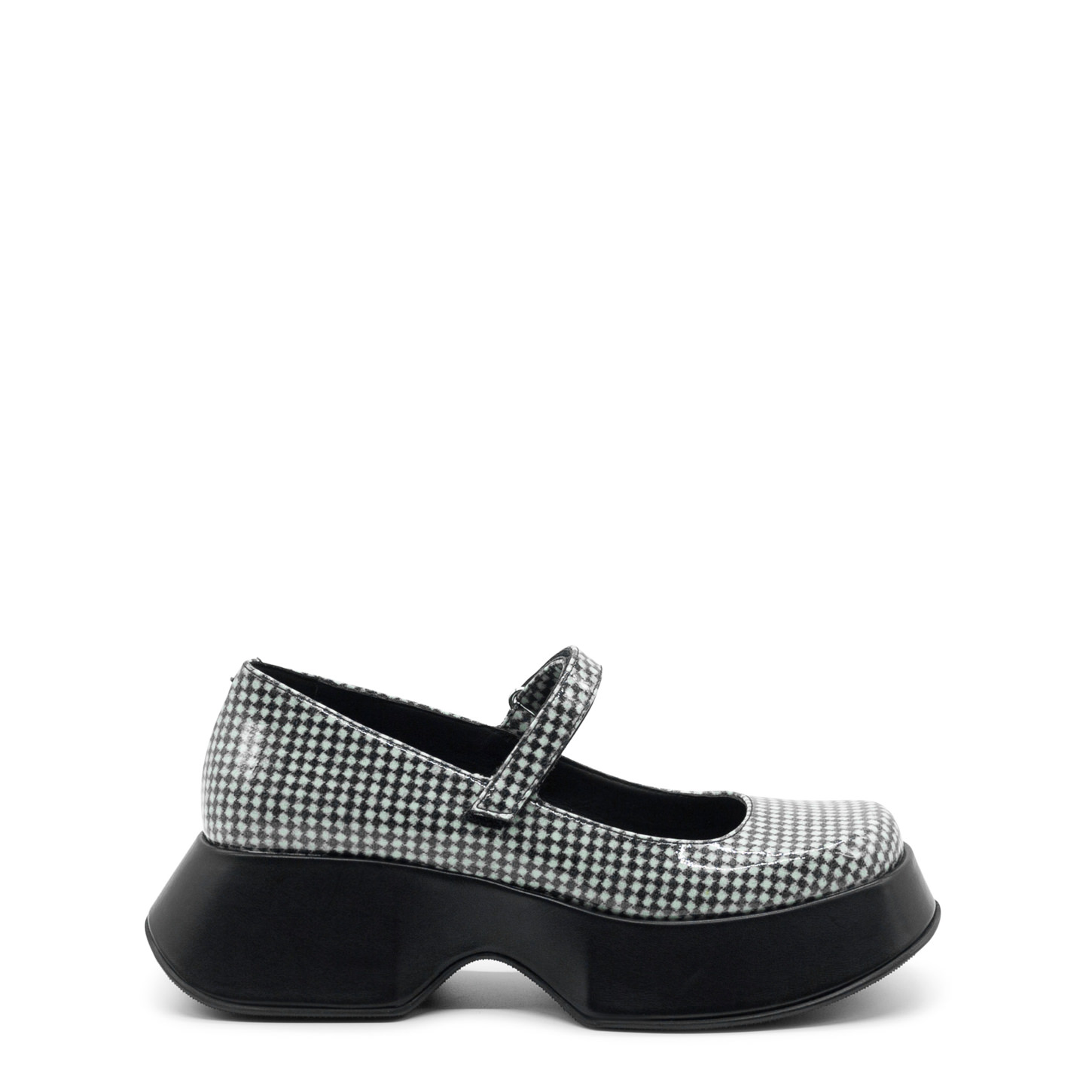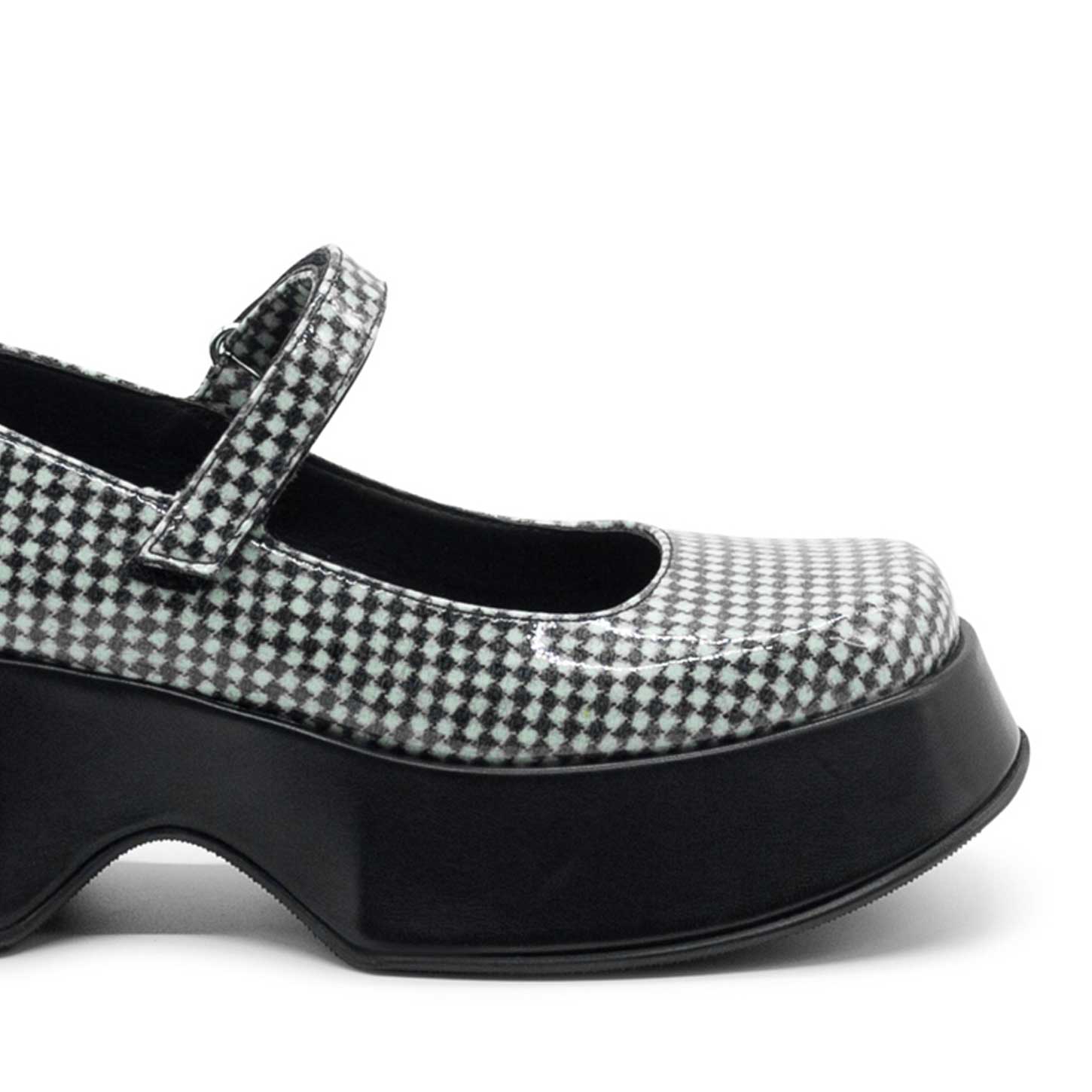 Mini yoko bebè bianca e nera realizzati in tessuto di lana a quadri sottovetro, cinturino con velcro regolabile. Suola gomma con texture antiscivolo. Morbido plantare. Made in Italy.