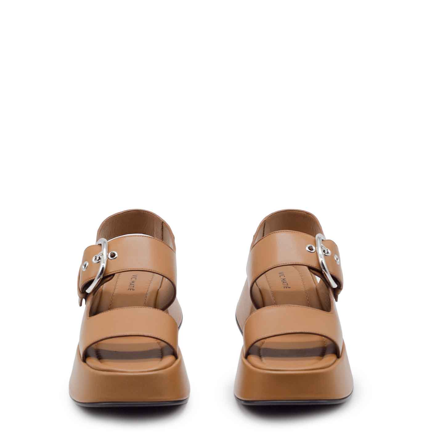 Mini Yoko sandalo fasce in morbida nappa di vitello tabacco ,con fibbie regolabili e cinturino dietro. Plateau dalla linea scampanata e ricoperto con lo stesso pellame della tomaia. Sottopiede imbottito e confortevole. Suola gomma con texture antiscivolo. Made in Italy.