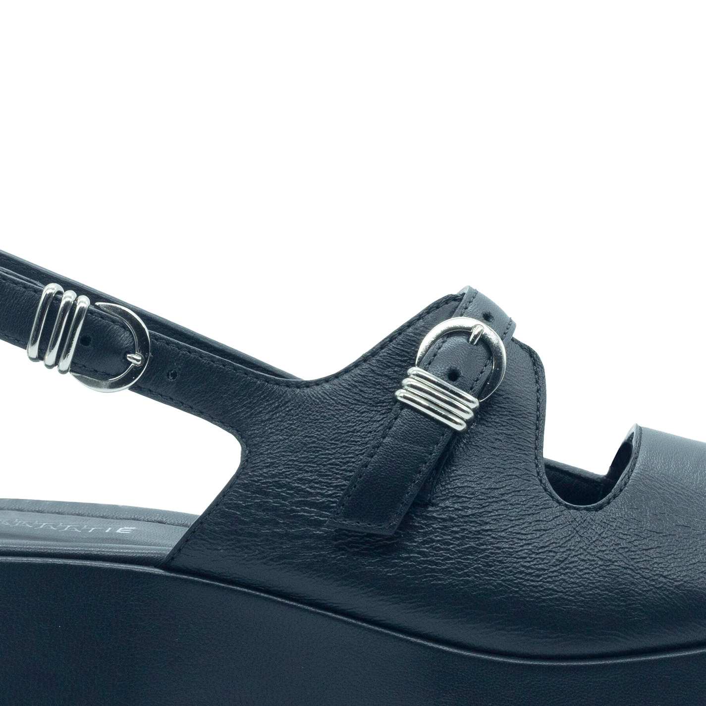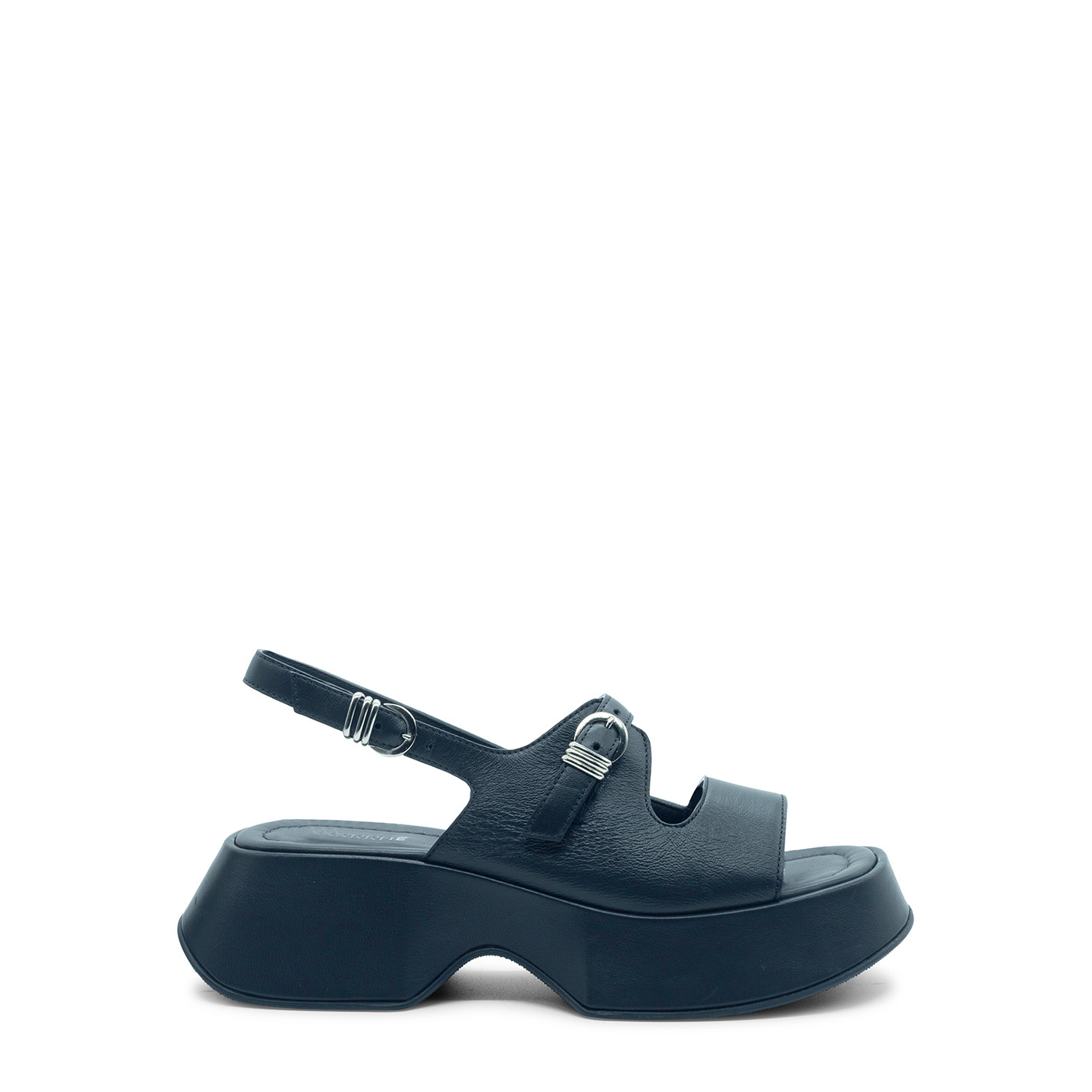 Mini Yoko sandalo nerorealizzato in nappa con fusciacche intrecciate sul davanti, cinturino in pelle regolabile con fibbia dietro. Plateau dalla linea scampanata e ricoperto con lo stesso pellame della tomaia. Sottopiede imbottito e confortevole. Suola gomma con texture antiscivolo. Made in Italy.