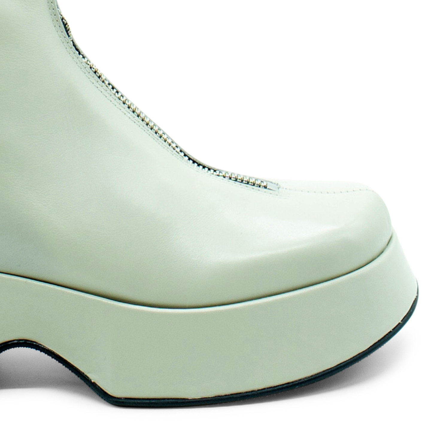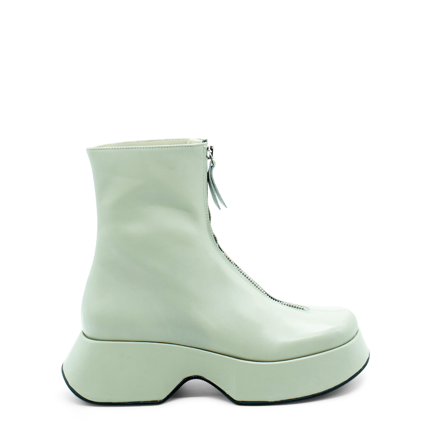Mini yoko tronchetto osso slanciato, in pelle di vitello liscia, con zip di metallo sul davanti. Suola gomma con texture antiscivolo. Morbido plantare. Made in Italy.