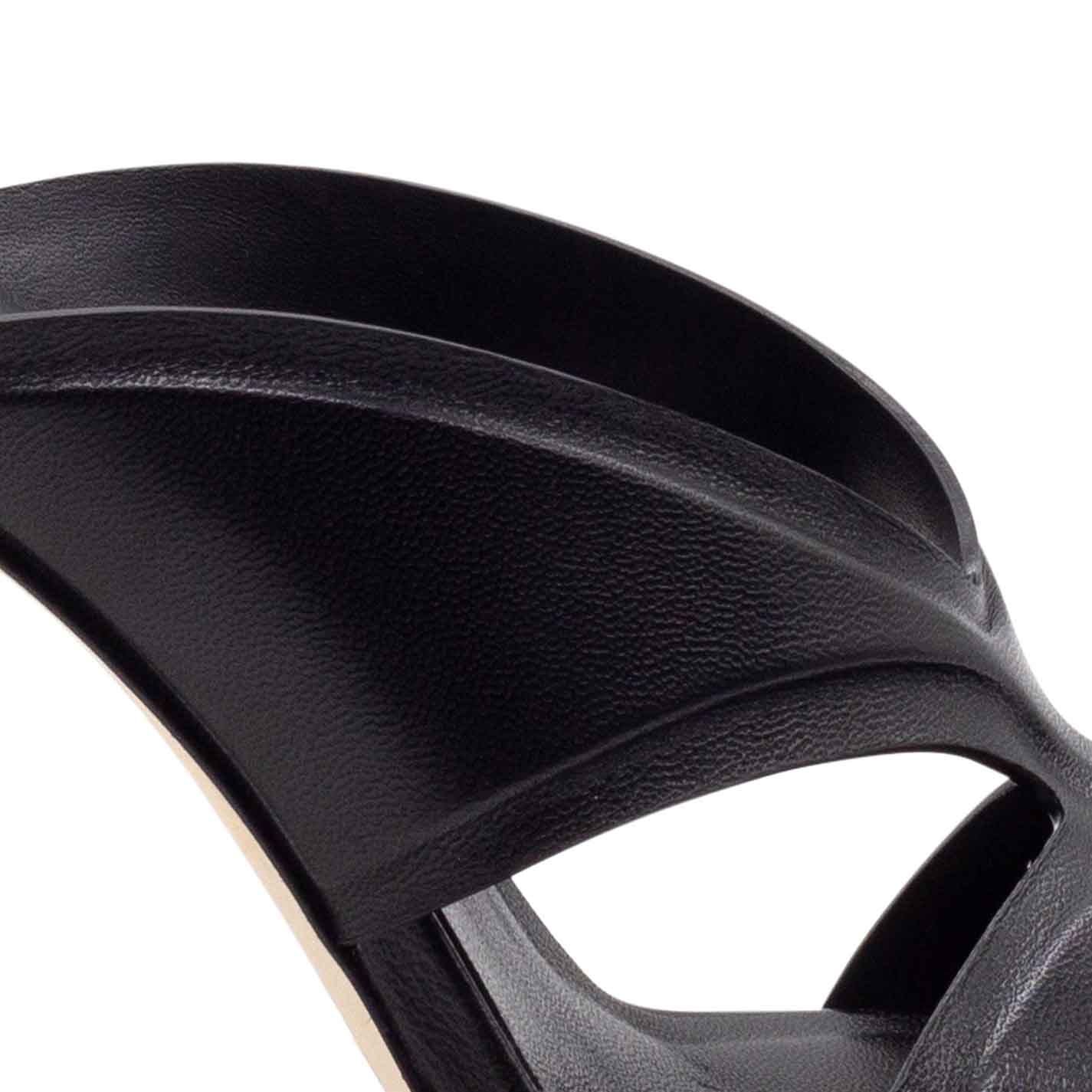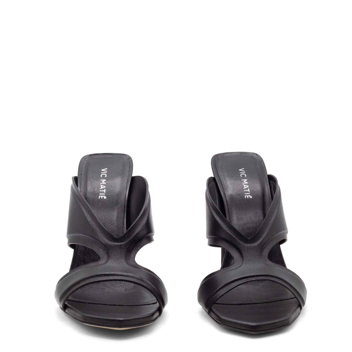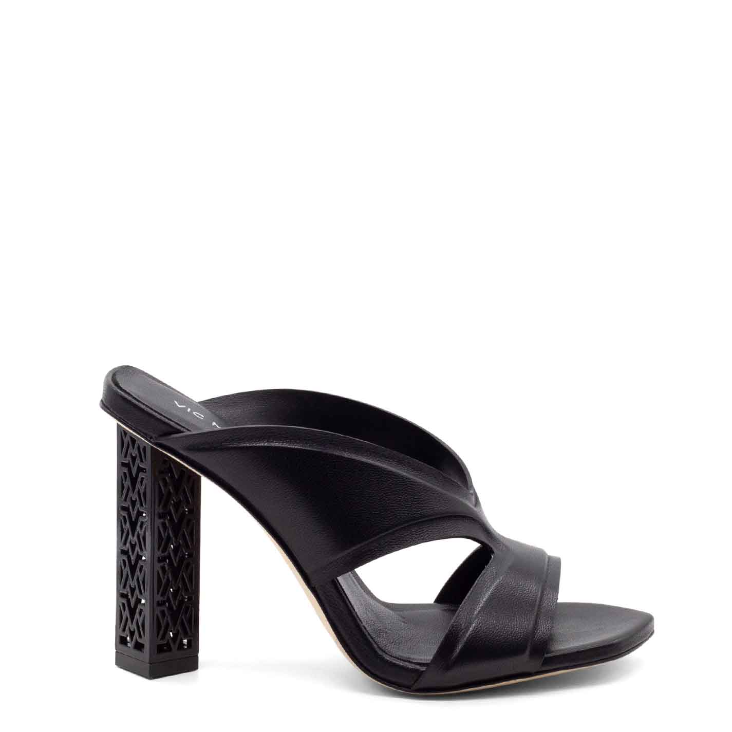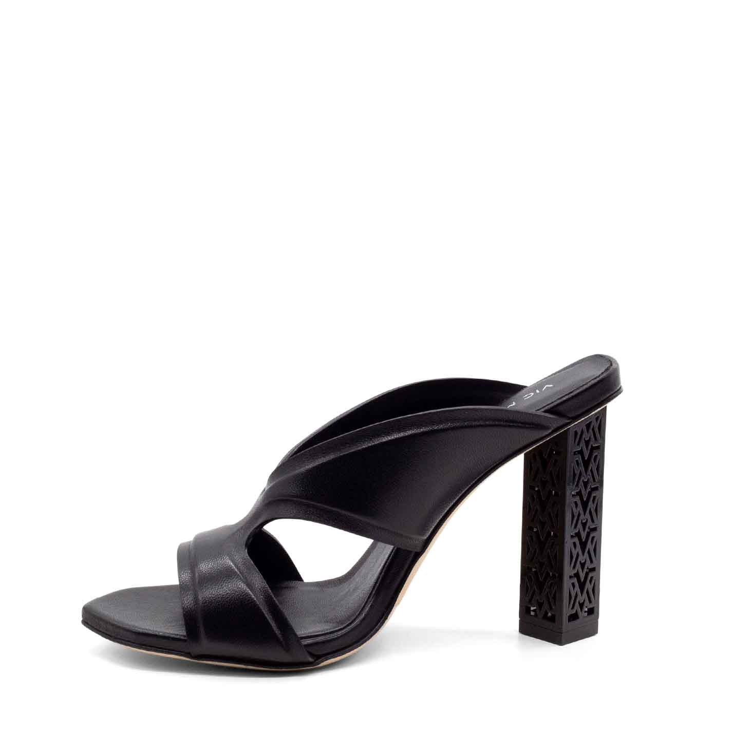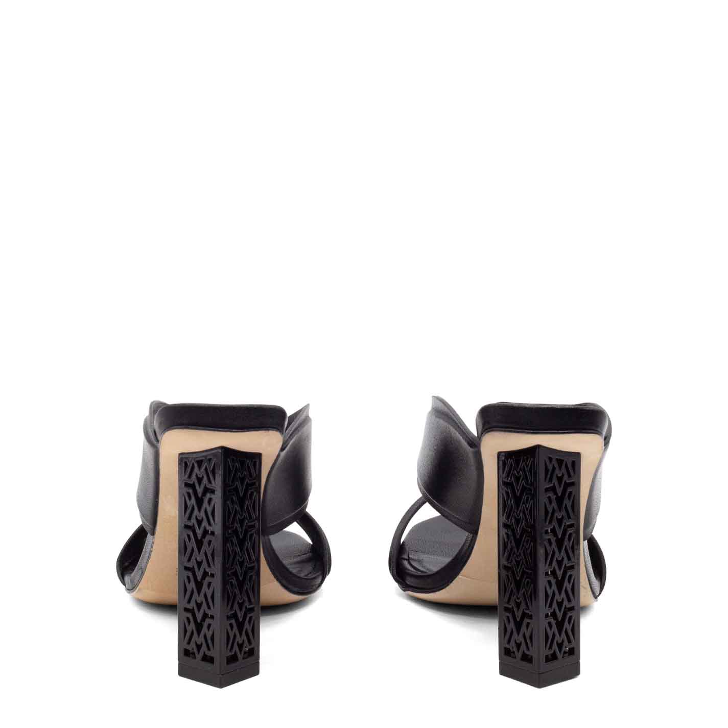 Monogram ciabatta in morbida nappa nera ,con lavorazione a rilievo ed aperture laterali. Suola in cuoio;