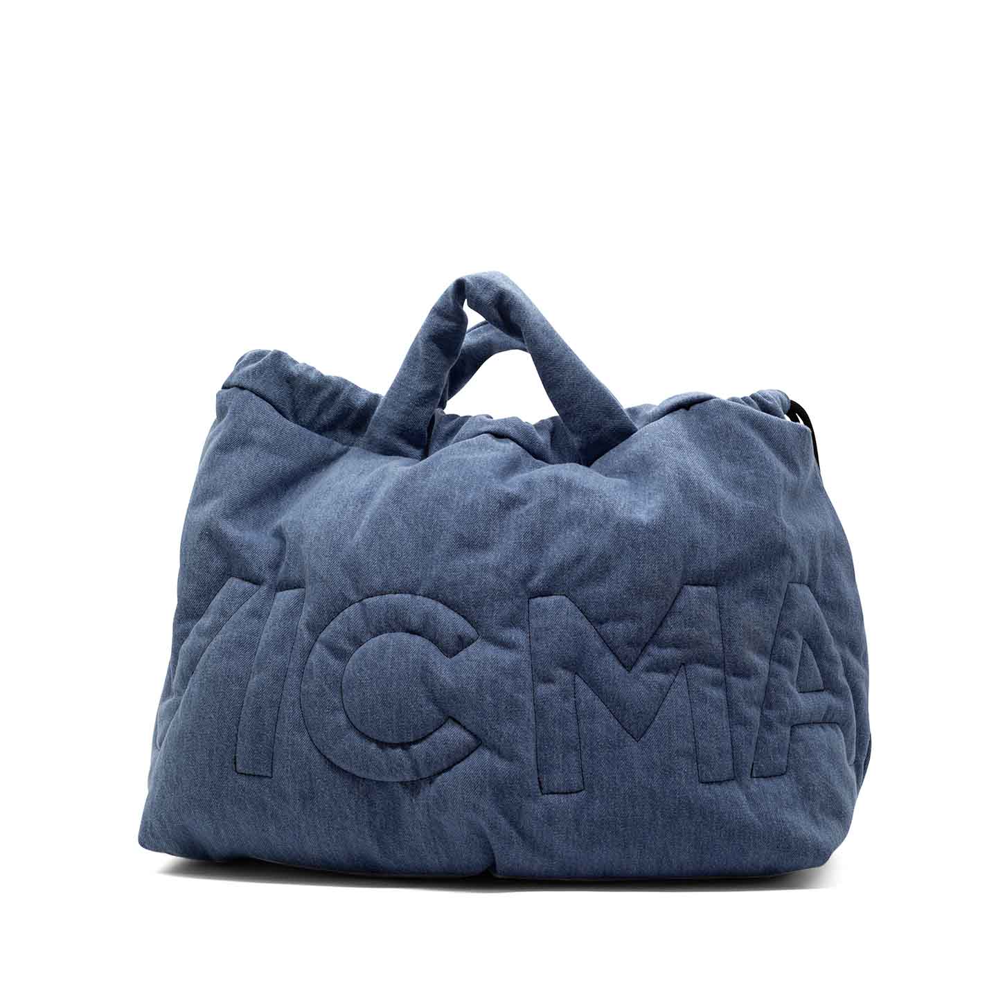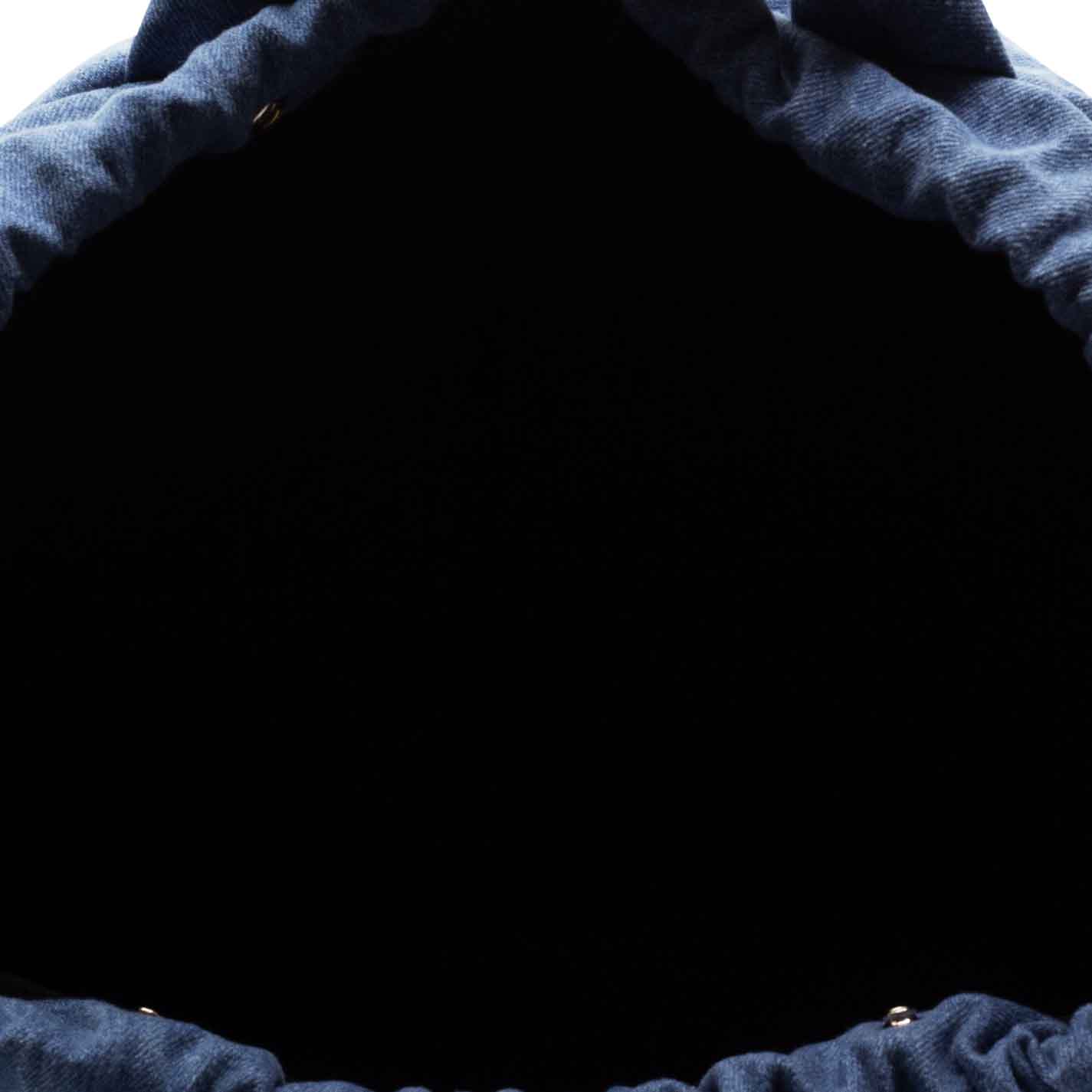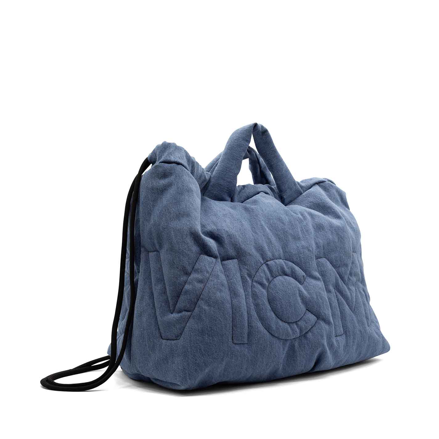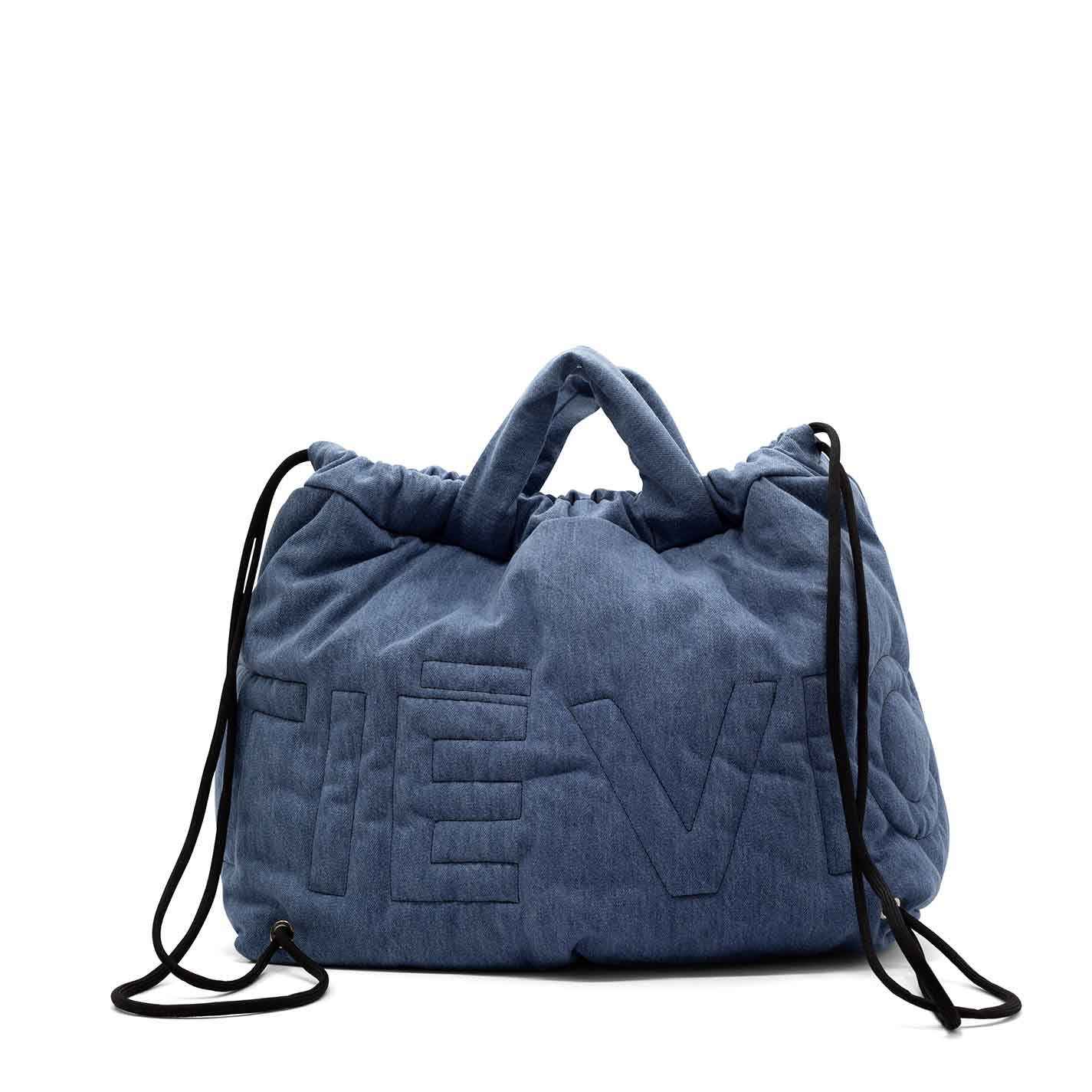 Zaino Borsa in jeans azzurro logata ,ricamo Vic Matié tono su tono. Possibilità di utilizzarla anche a zaino con apposite tracolline, richiudibile nella tasca interna, utile da viaggio.