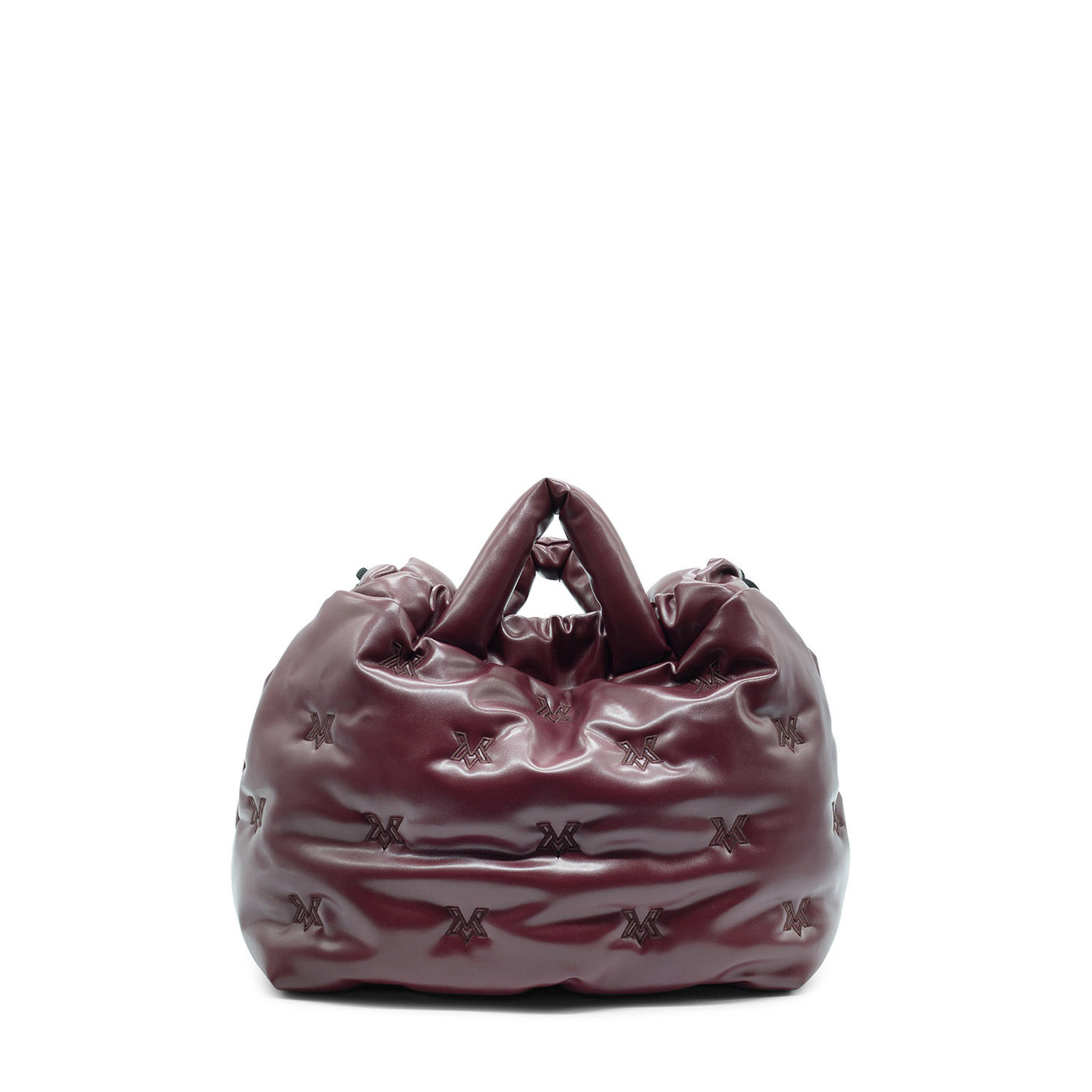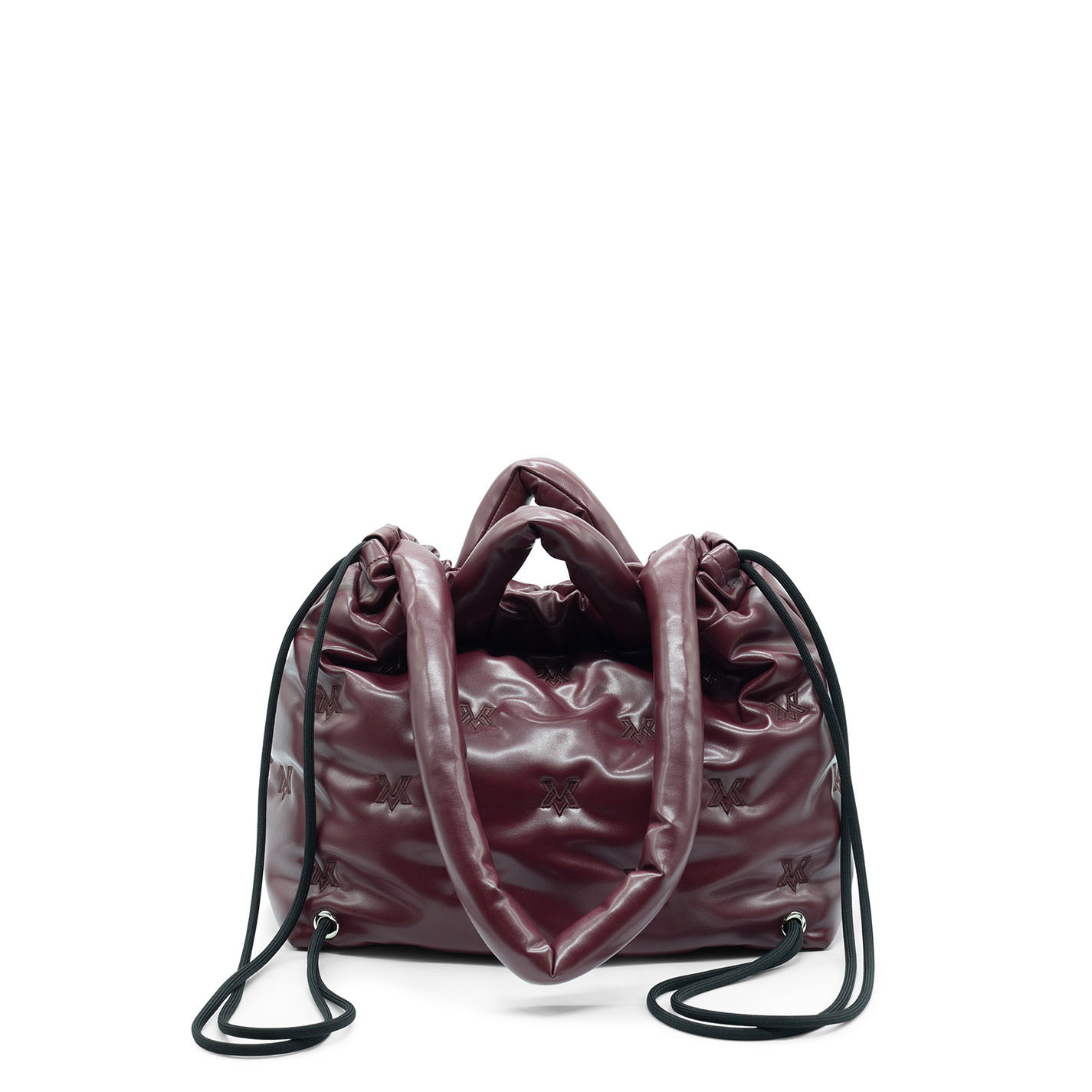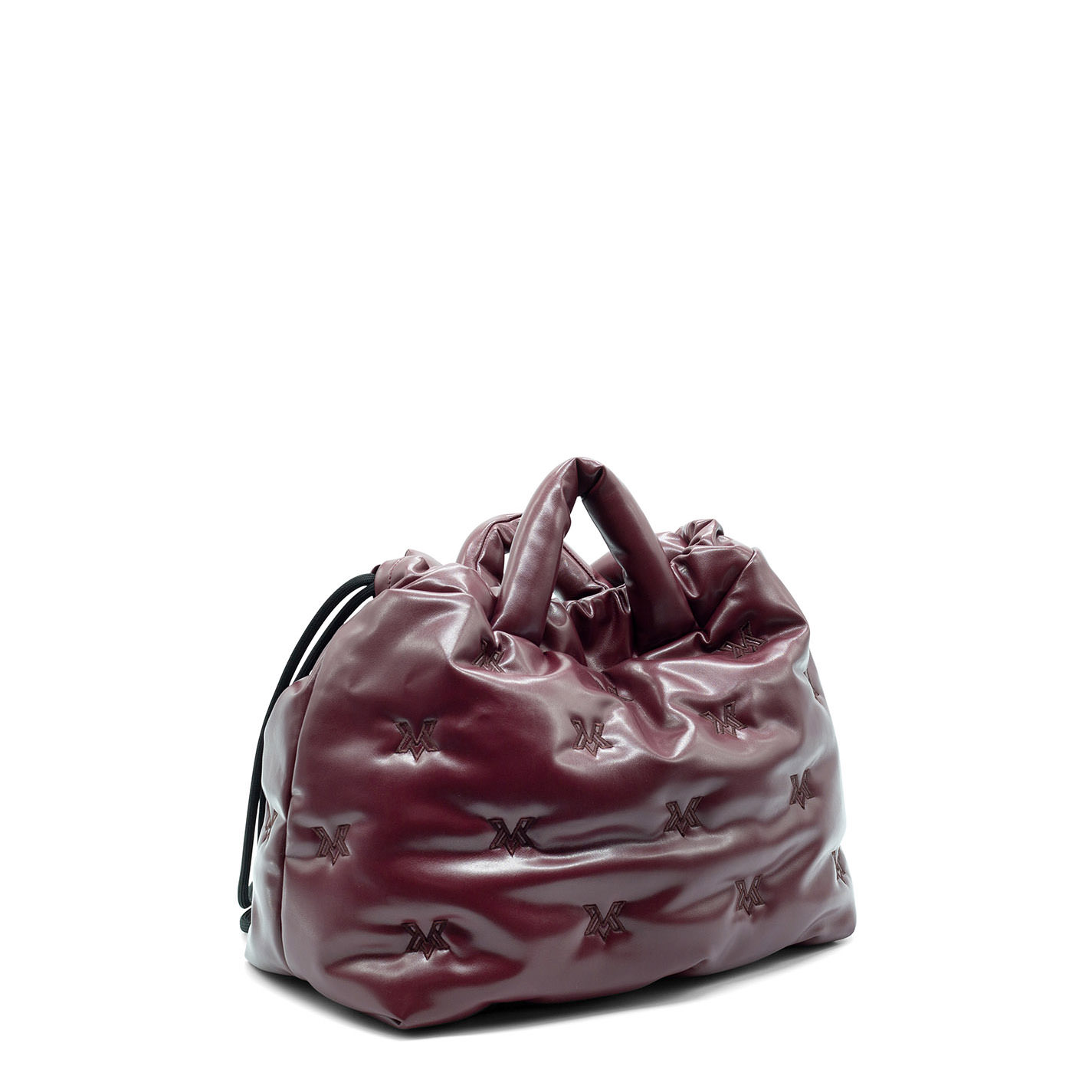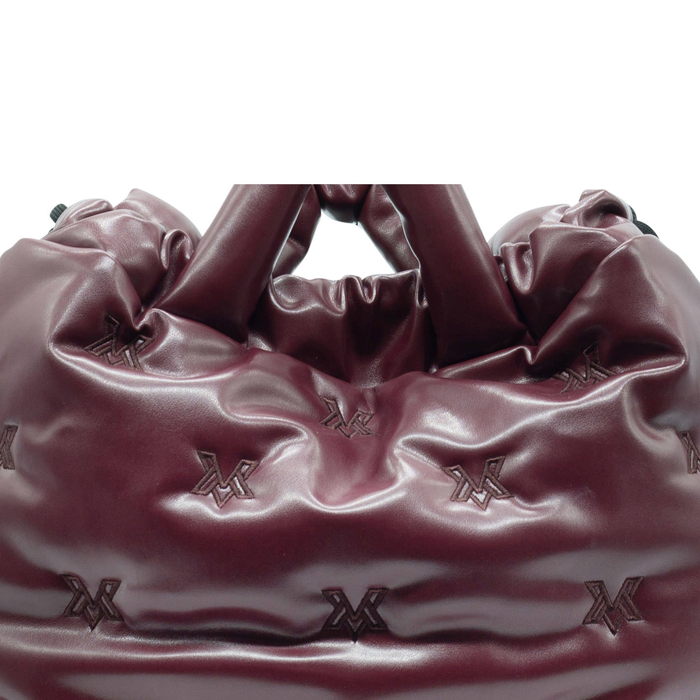 Borsa zaino bordeaux in ecopelle imbottita, con monogram ricamati;