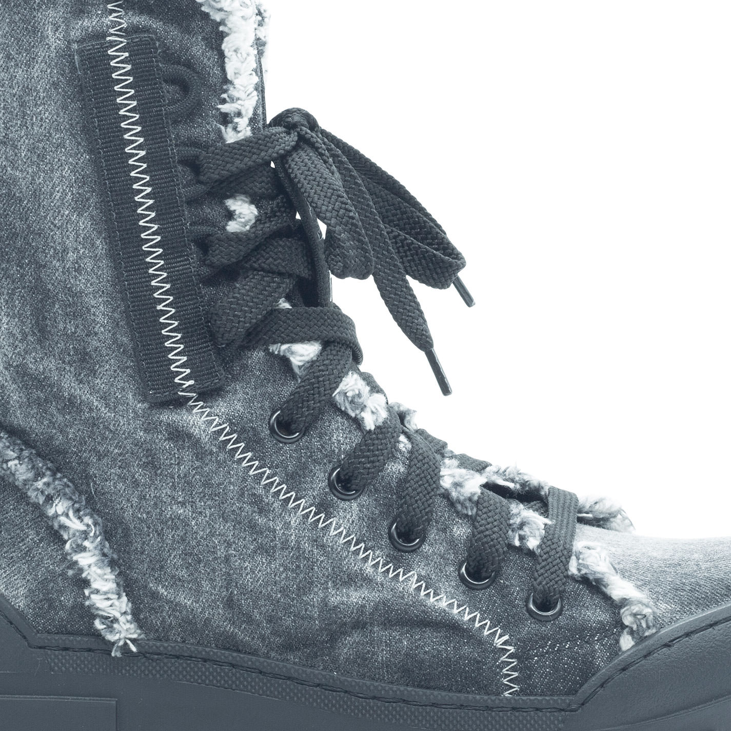 Roccia Anfibio antracitein denim stone wash ,foderato in cotone colorato. Motivo di cuciture zig zag e passa lacci in contrasto. Suola guscio in TPU con tacche a rilievo e plantare TAG morbido ricoperto in pelle di vitello. Made in Italy.