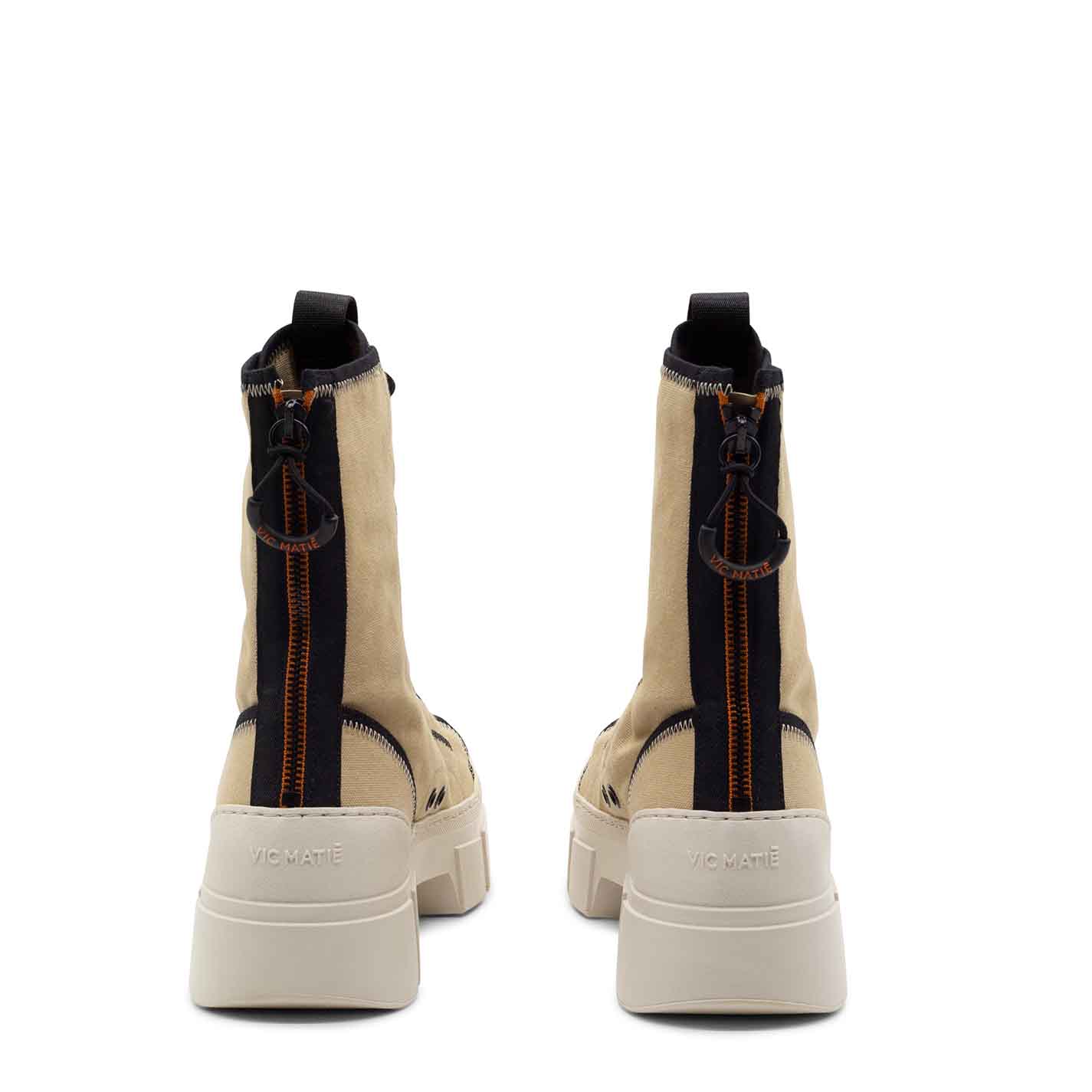 Roccia Anfibio in cotone sfoderato sabbia , bordato in tessuto, con dettagli zig zag nero, stringa elastica regolabile con tira coulisse;