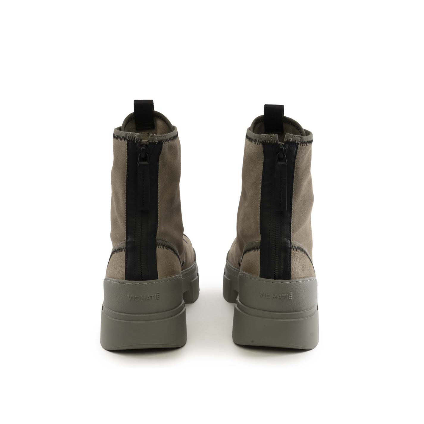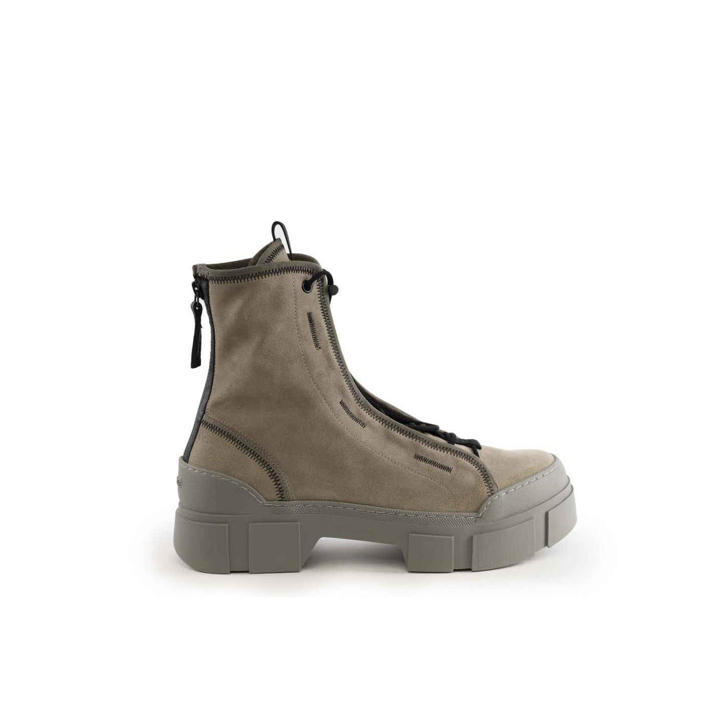 Roccia man_Anfibio con zip in crosta tortora , con dettagli zig zag nero, stringa elastica regolabile con tira coulisse; gros grain , zip bicolore posteriore per facilitare la calzata, con tirante in pelle. Suola guscio in TPU con tacche a rilievo e plantare TAG morbido ricoperto in pelle di vitello. Made in Italy.