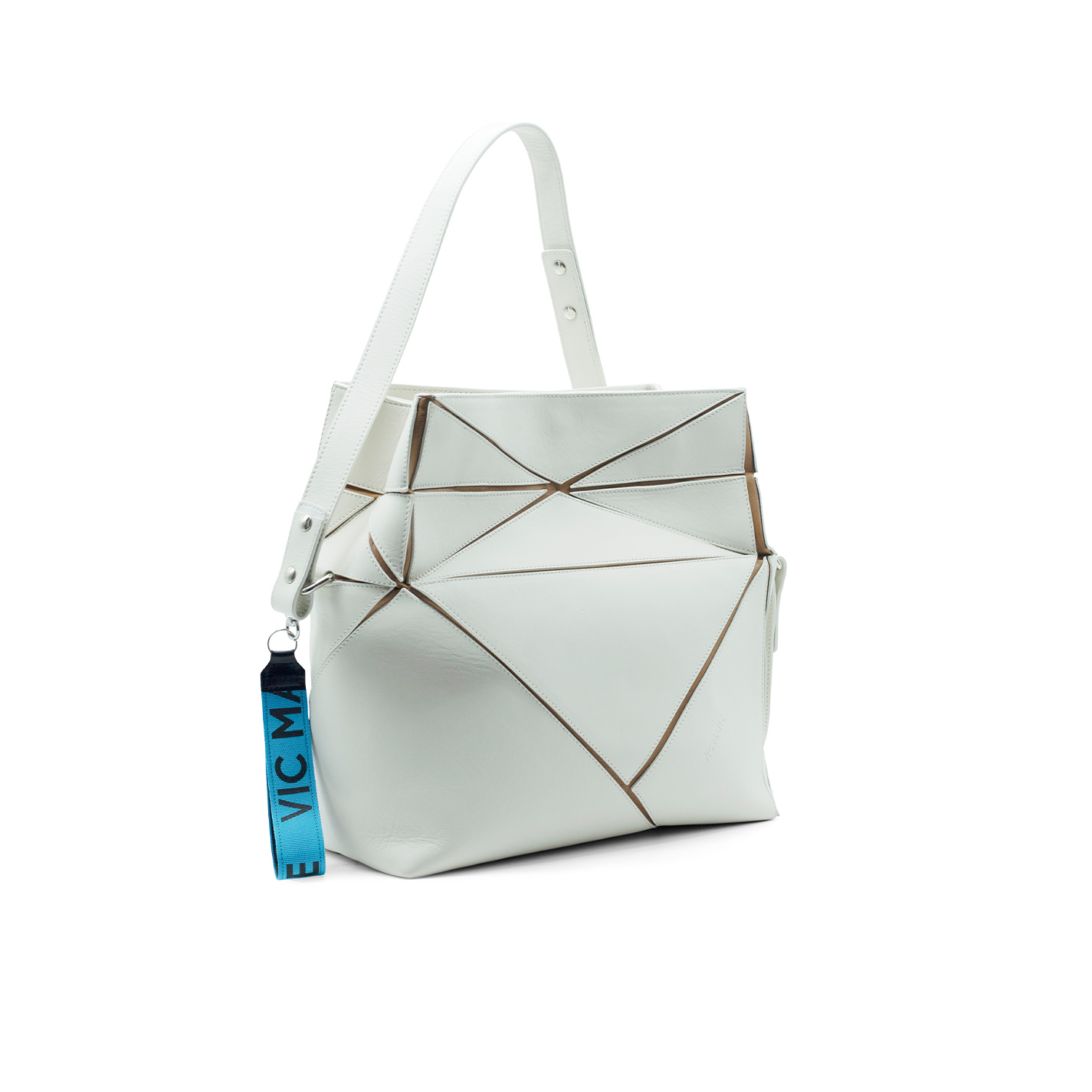 Bag patch pannain pelle di vitello liscio. Caratterizzata da triangoli in pelle cuciti. Chiusura con automatici;