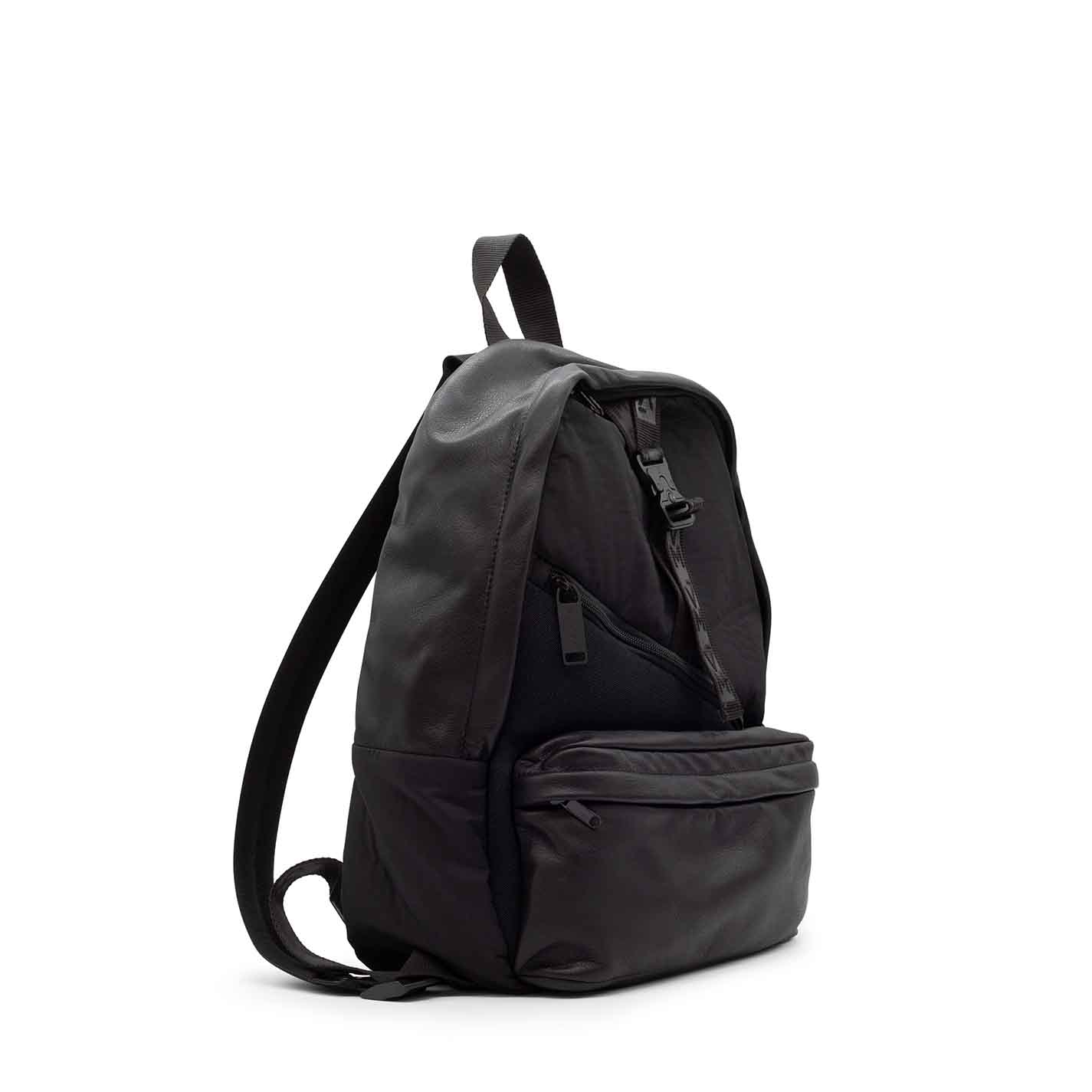 Zaino nero realizzato in morbida nappa di vitello e tessuto tecnico;