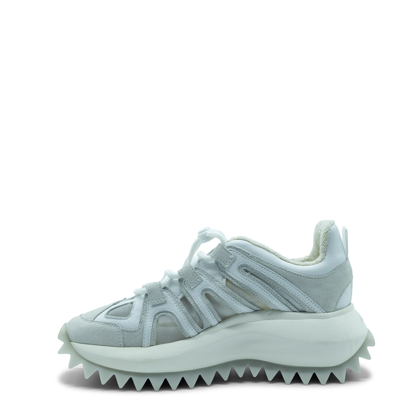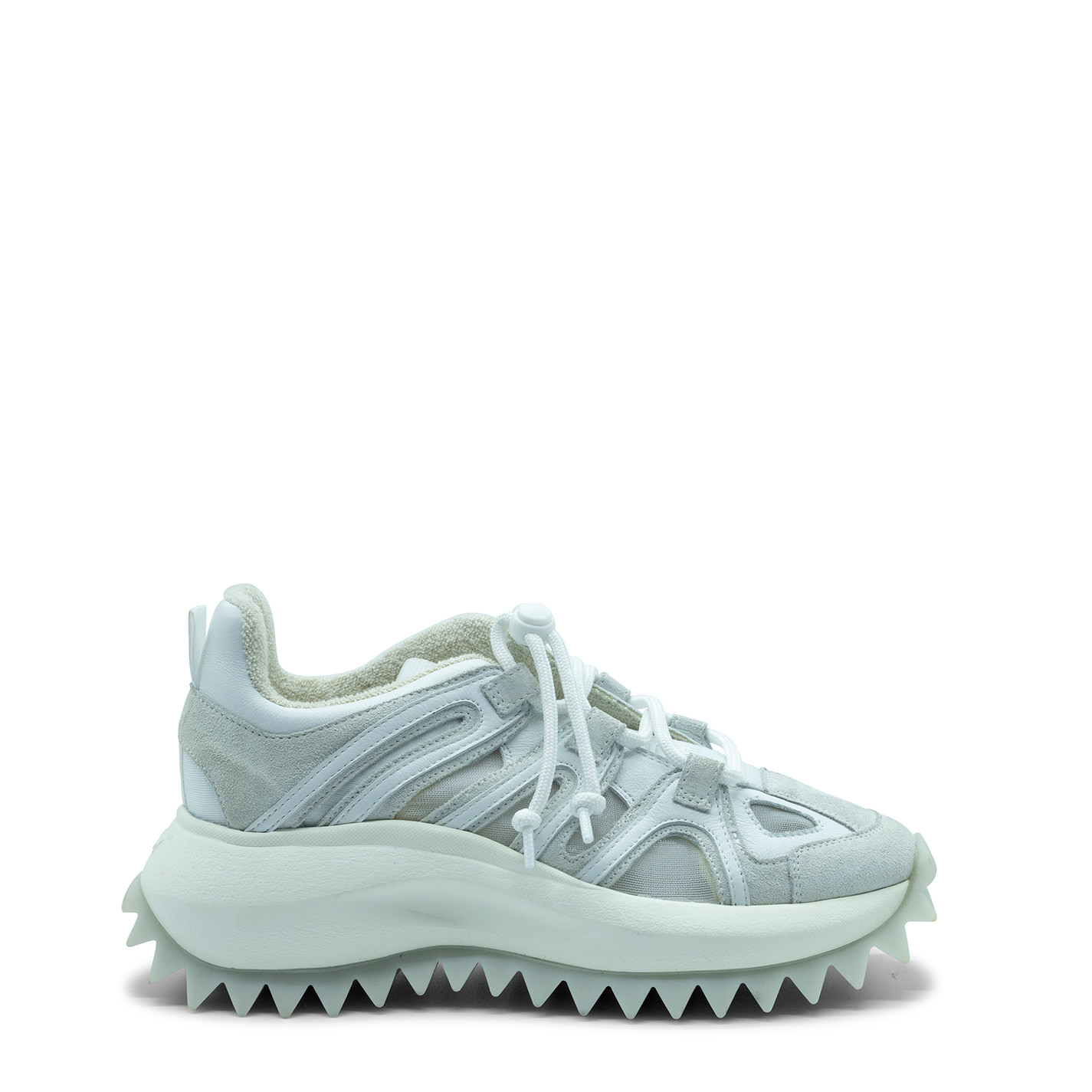 Running trek bianca, realizzata in crosta, vitello e retina semisfoderata.Stinga regolabile da tira coulisse. Suola monoblocco xl extralight,logata con riporto in gomma e battistrada con maxi spikes , plantare anatomico rivestito in puro cotone. Made in Italy.