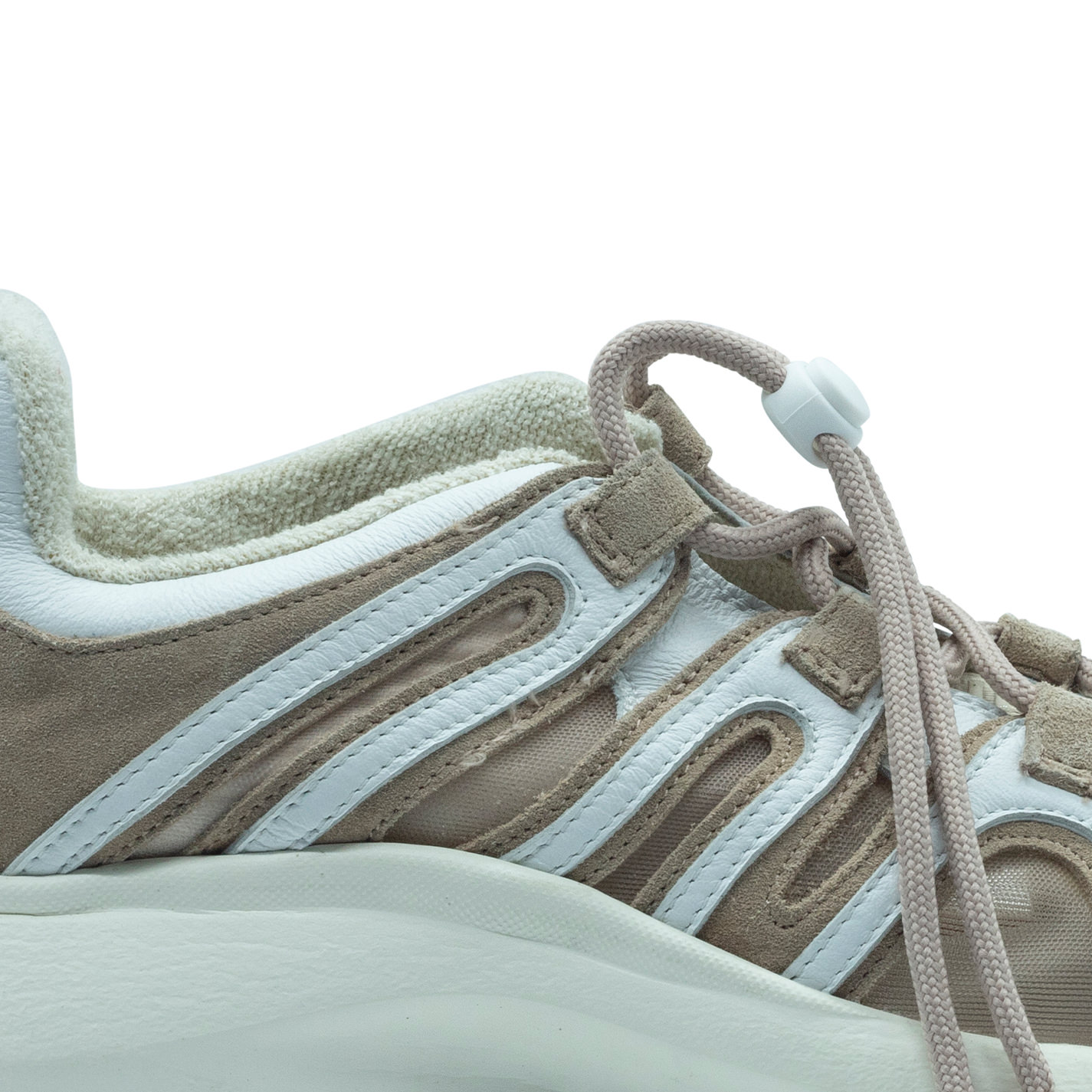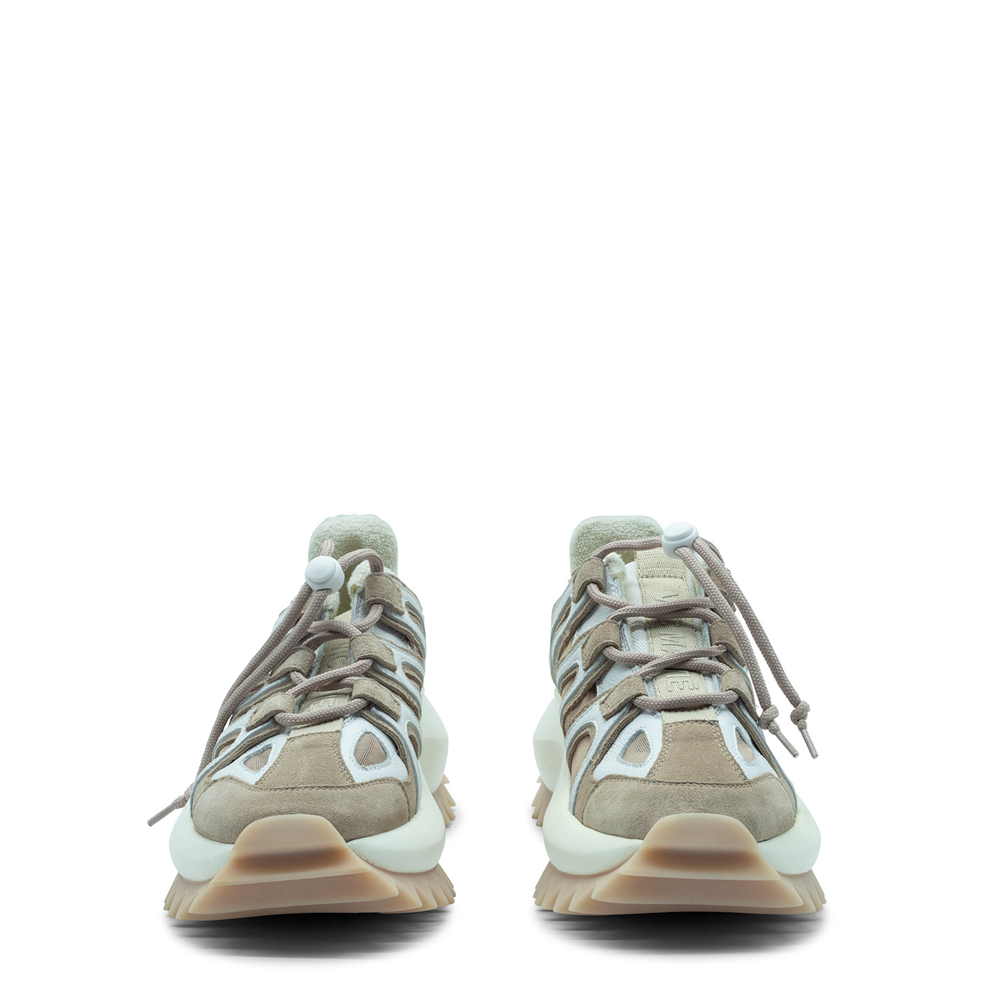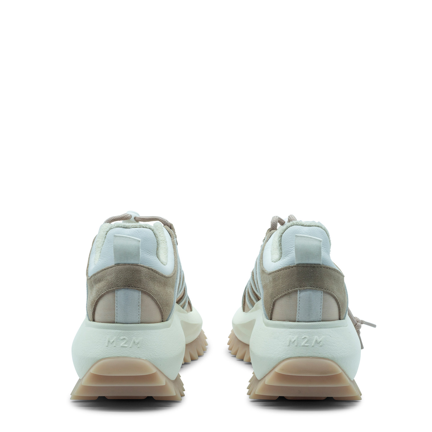 Running trek cipria/bianca, realizzata in crosta, vitello e retina semisfoderata.Stinga regolabile da tira coulisse. Suola monoblocco xl extralight,logata con riporto in gomma e battistrada con maxi spikes , plantare anatomico rivestito in puro cotone. Made in Italy.