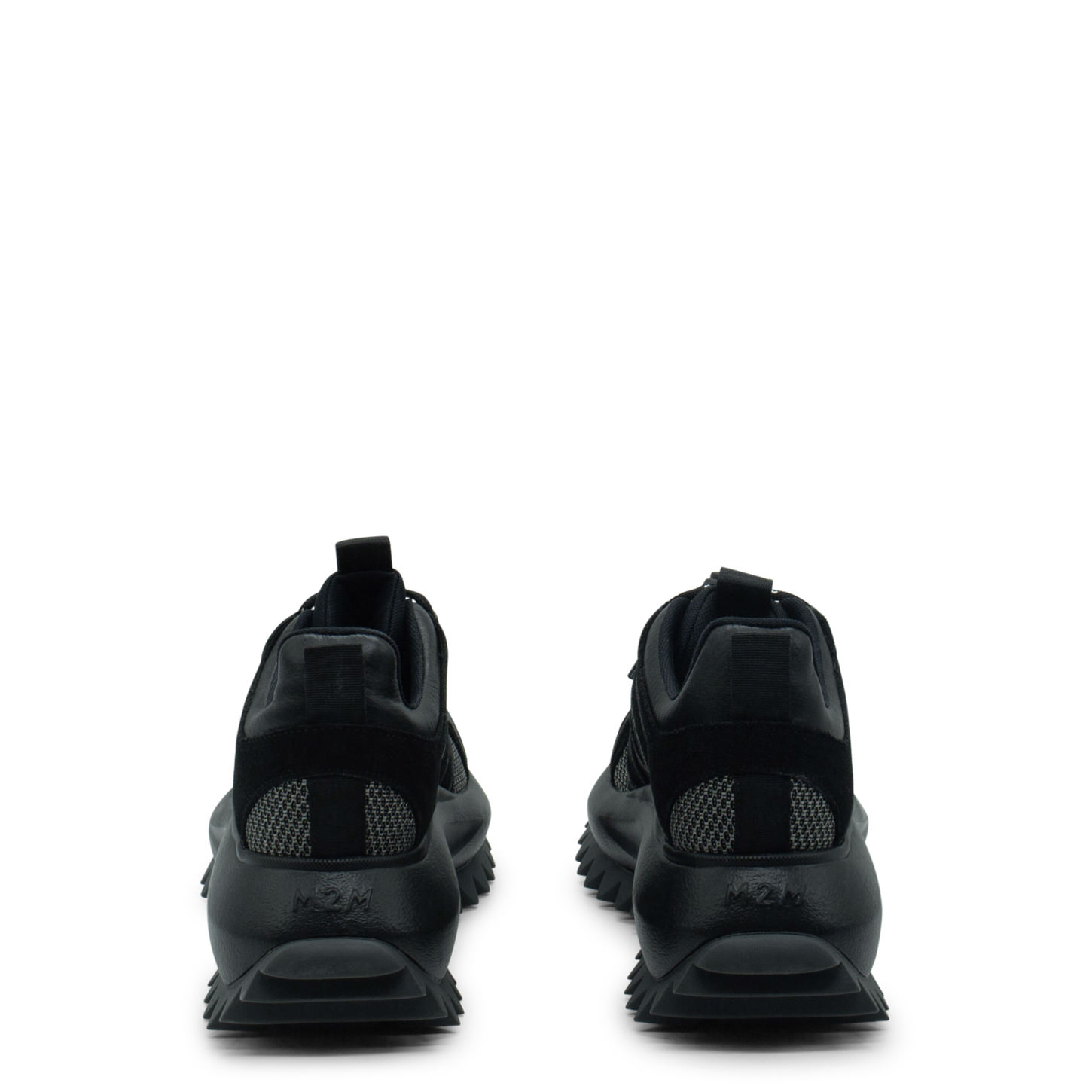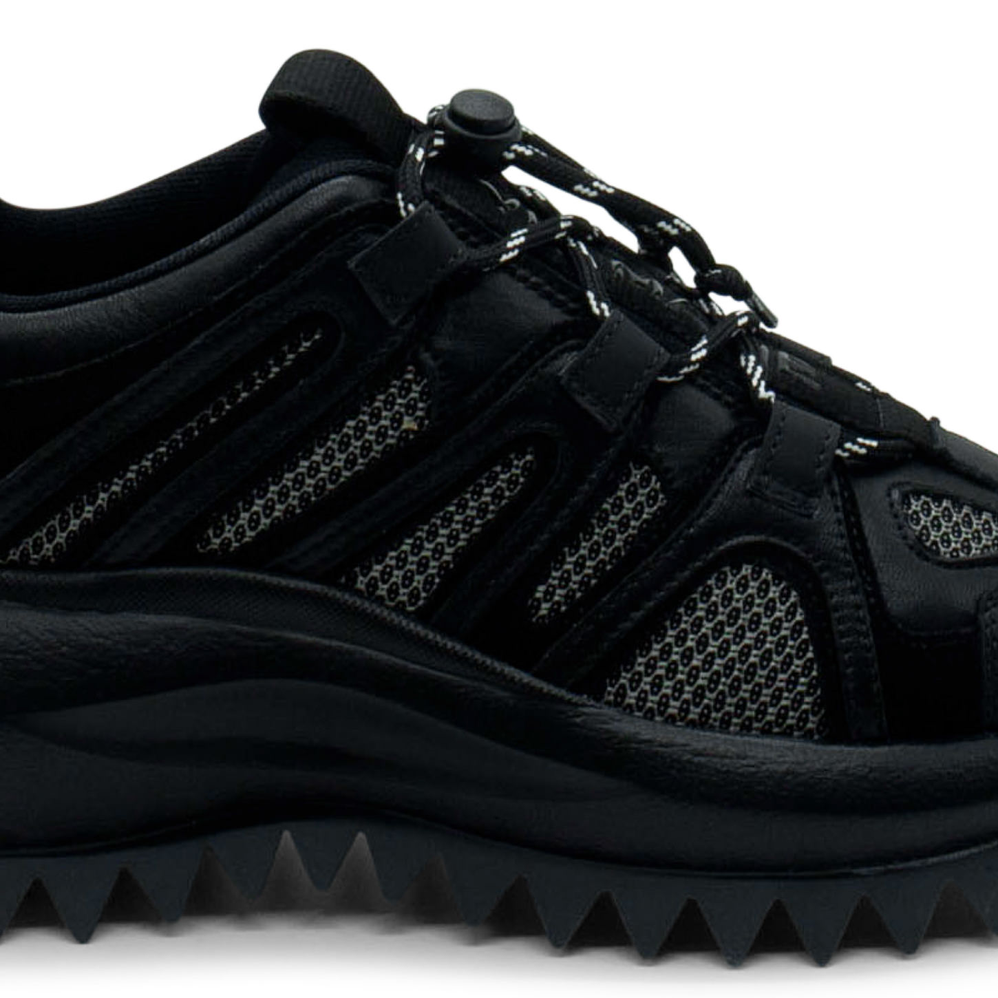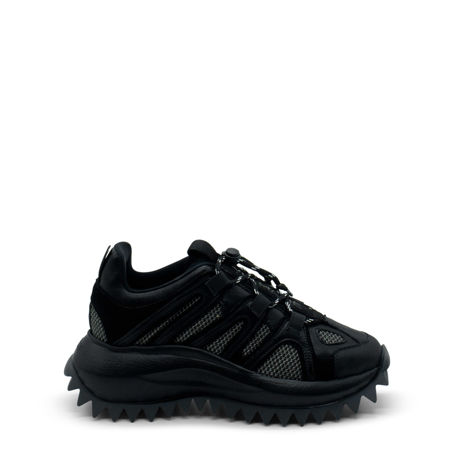 Running trek nera in crosta, pelle di vitello effetto gommato e tessuto tecnico. Stringa regolabile da tira coulisse. Suola monoblocco xl extralight,logata con riporto in gomma e battistrada con maxi spikes , plantare anatomico rivestito in puro cotone. Made in Italy.
