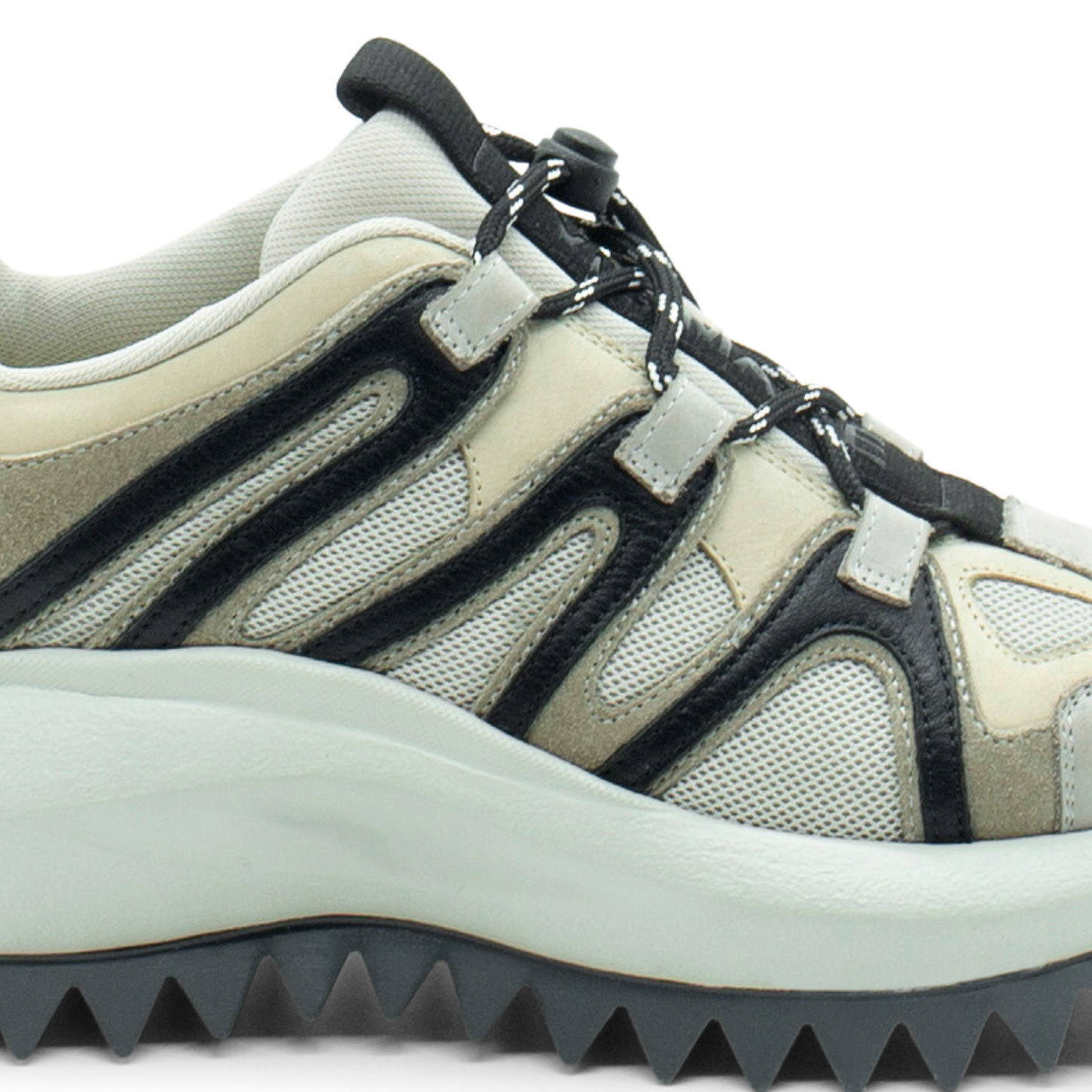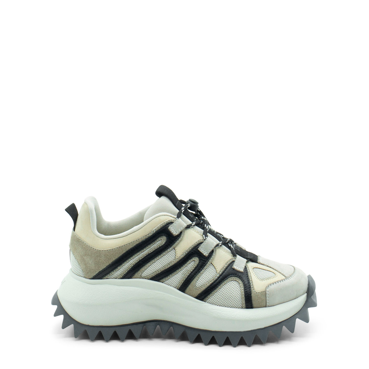 Running trek sabbia/nera in crosta, pelle di vitello effetto gommato e tessuto tecnico. Stringa regolabile da tira coulisse. Suola monoblocco xl extralight,logata con riporto in gomma e battistrada con maxi spikes , plantare anatomico rivestito in puro cotone. Made in Italy.