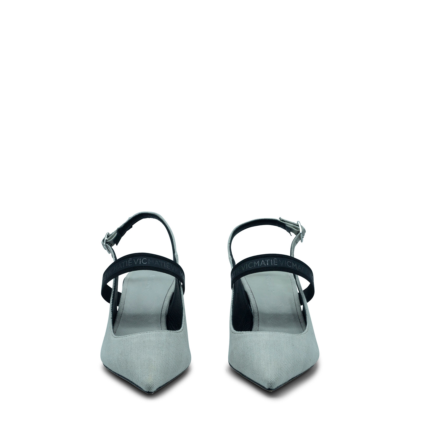 Slash chanel in denim stone lavato sabbia, fibbia regolabile e con elastico logato tono su tono. Struttura a punta molto femminile, con tacco verniciato matt che ricorda la slash. Suola in cuoio. Sottopiede in pelle. Made in Italy.