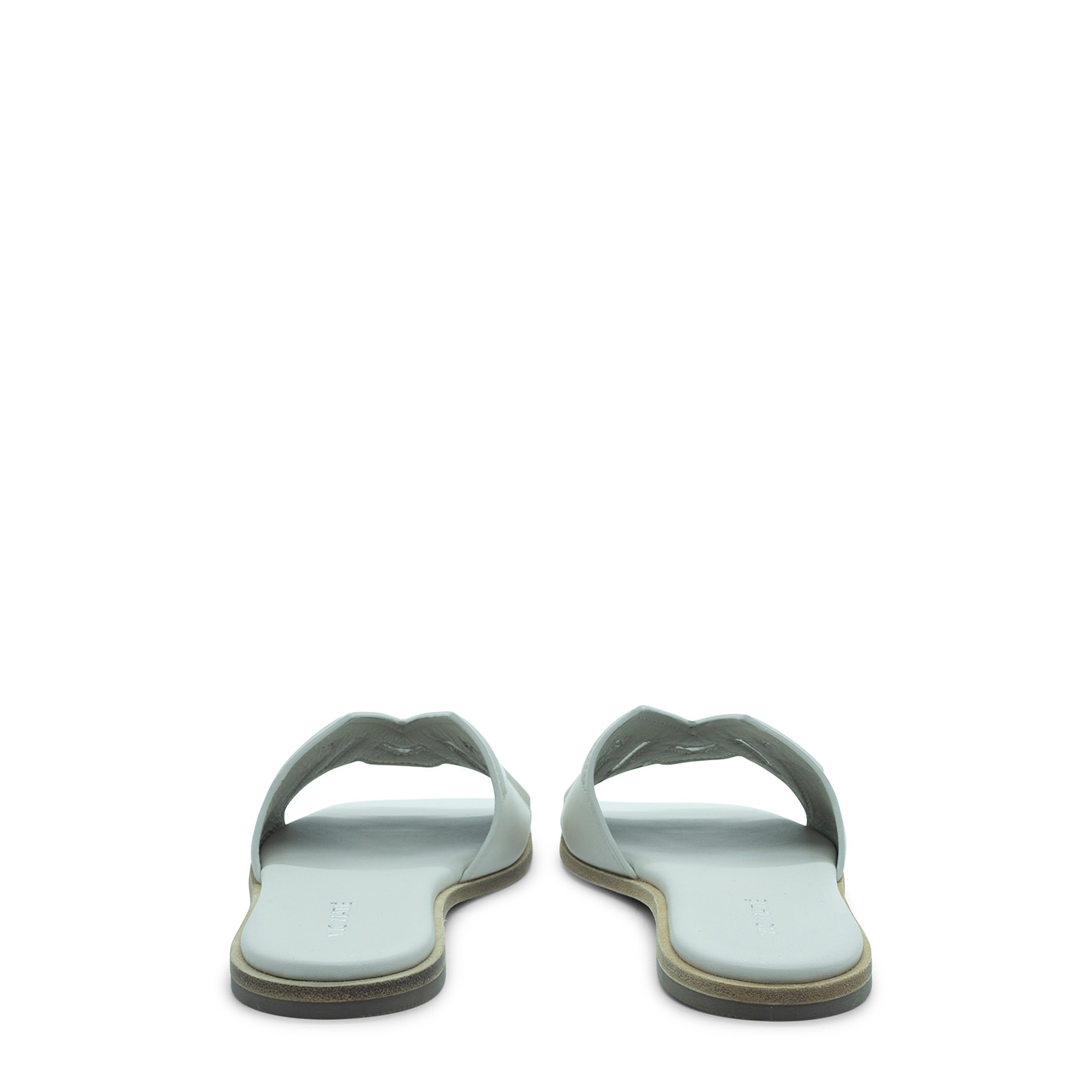 Square open ciabatta monogram pannarealizzato in nappa con lavorazione del logo VM in rilievo, cucito e traforato. Suola in cuoio con tacco antiscivolo in gomma. Sottopiede leggermente imbottito e rivestito in pelle. Made in Italy.