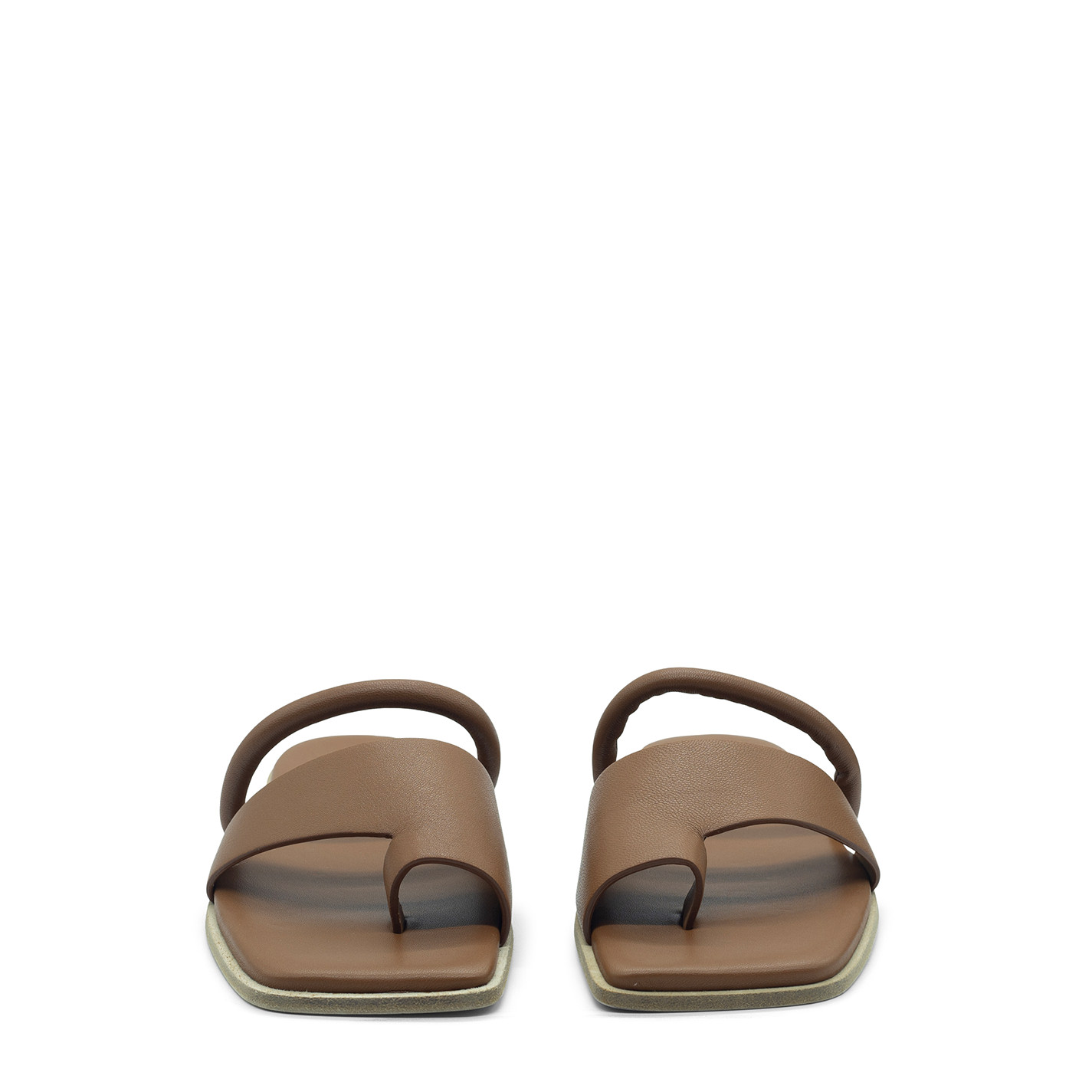 Square open sandalo monodito cuoiorealizzato in nappa accoppiata con vitello e lissatura.Composto da una ciabattina intera che chiude l'alluce e un morbido mignon sul collo del piede. Suola in cuoio con tacco antiscivolo in gomma. Sottopiede leggermente imbottito e rivestito in pelle. Made in Italy.