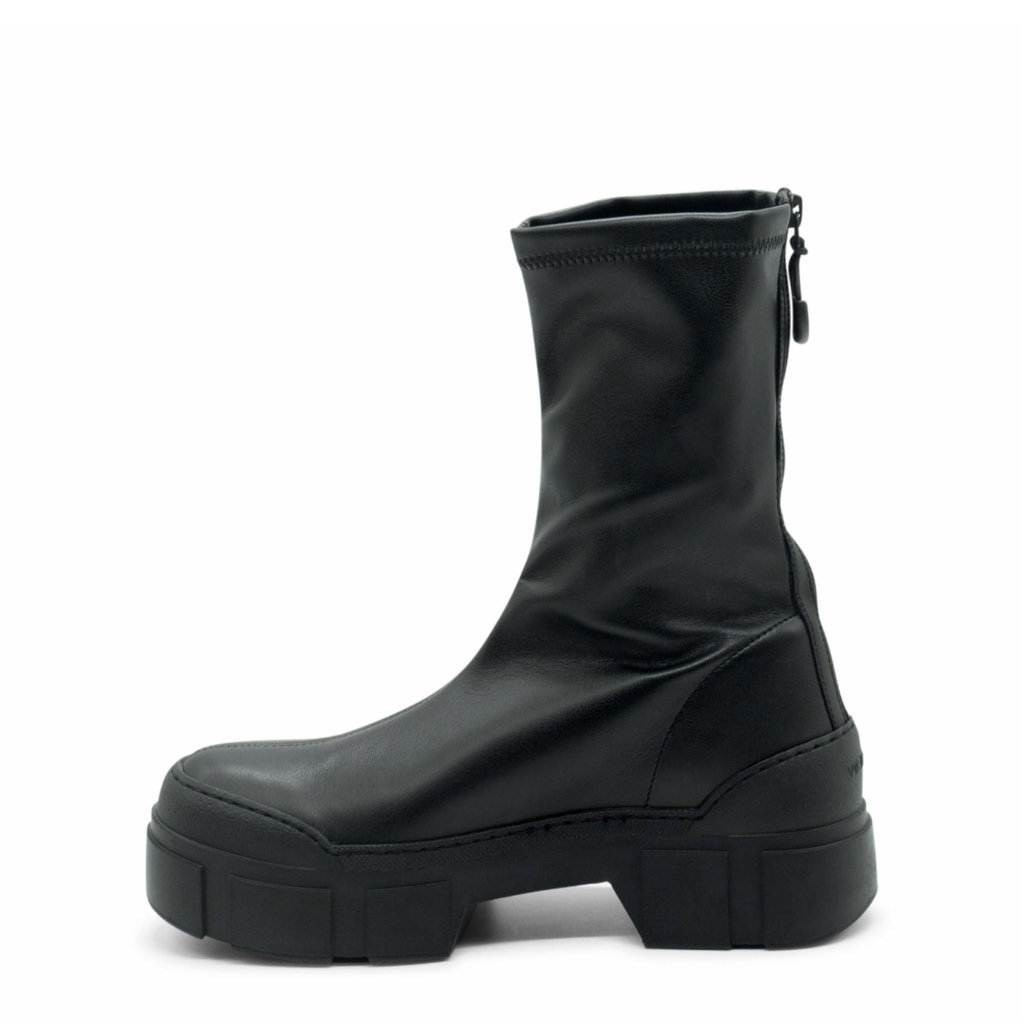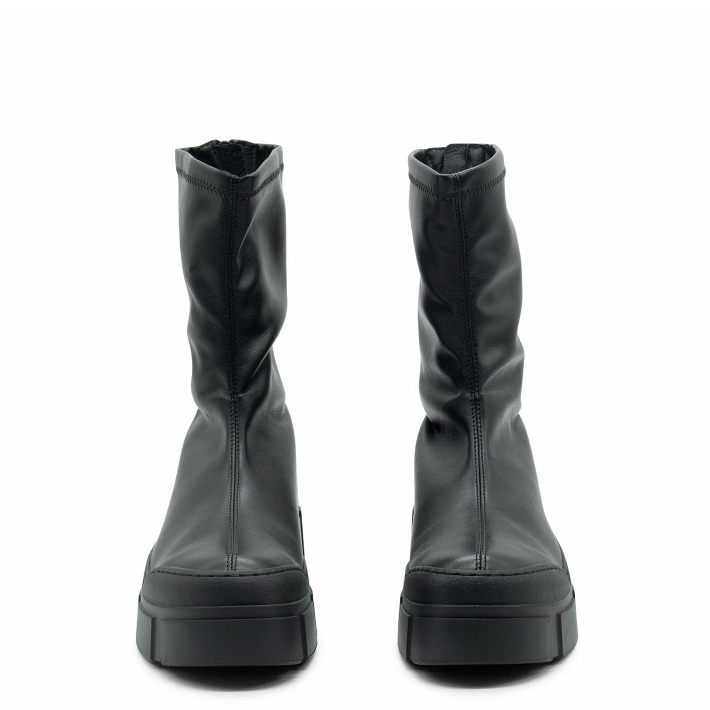 Stivaletto Roccia ecopelle stretch nero ,slanciato ed aderente grazie al morbido materiale stretch sfoderato, zip spalmata posteriore per facilitare la calzata,tirante logato in gomma. Suola guscio in TPU con tacche a rilievo e plantare TAG morbido ricoperto in pelle di vitello. Made in Italy.