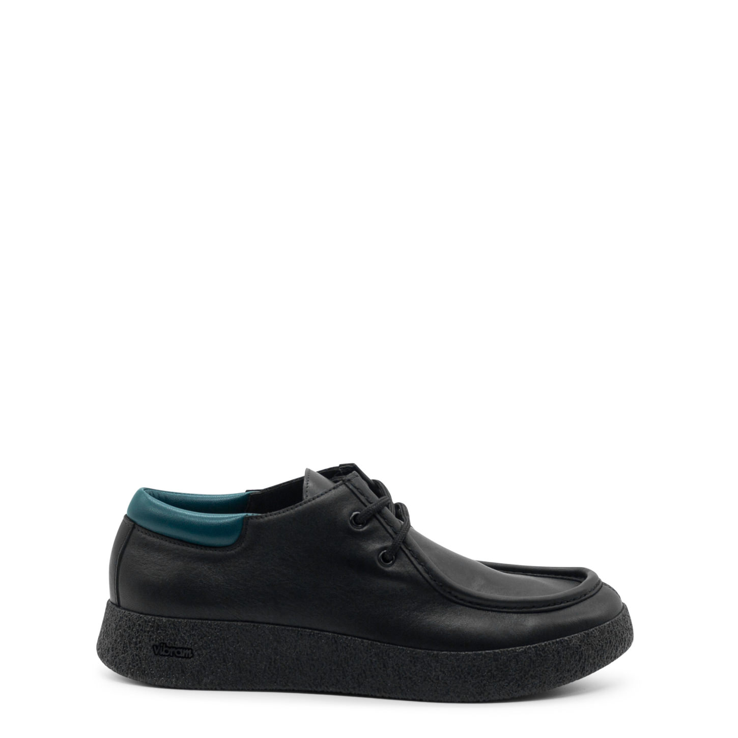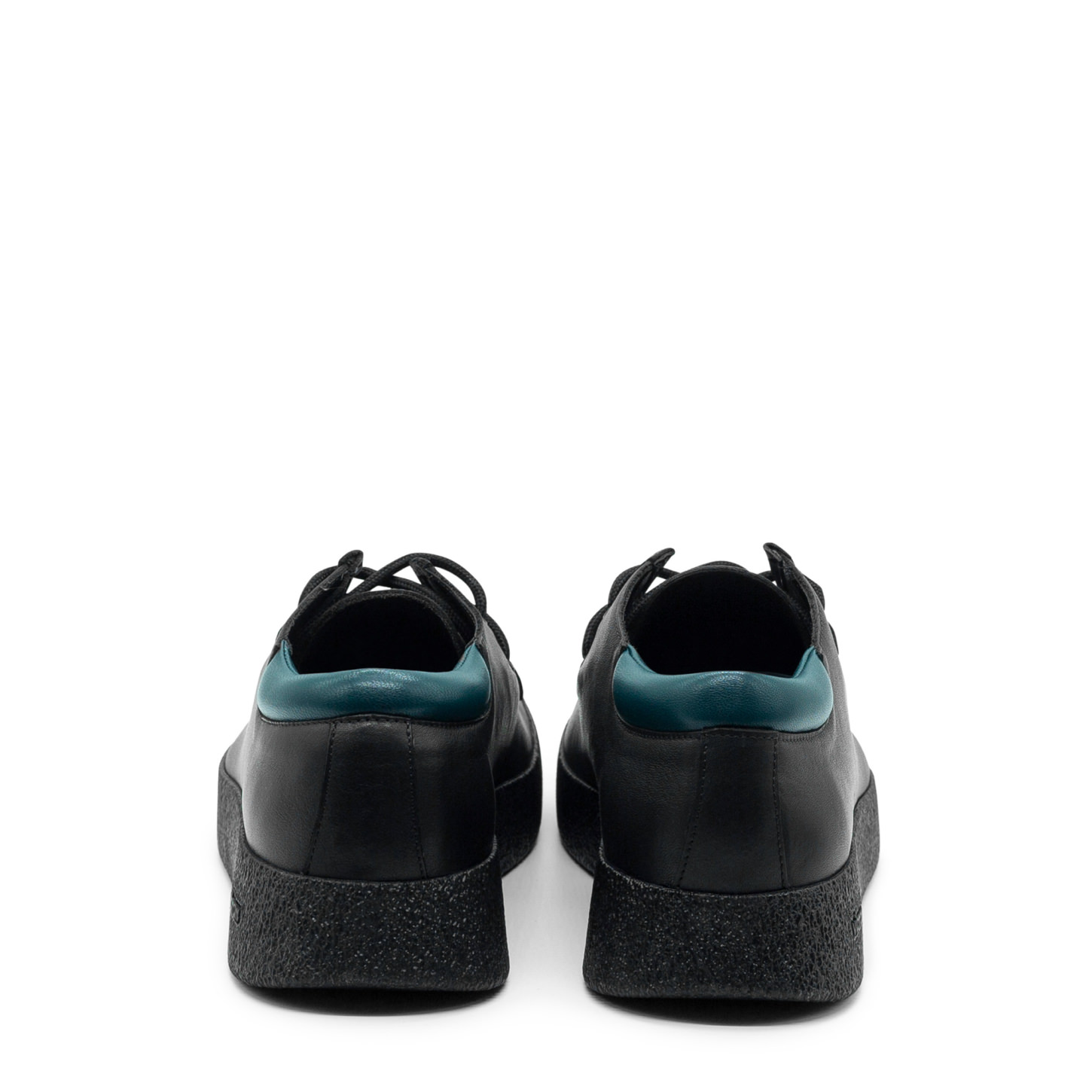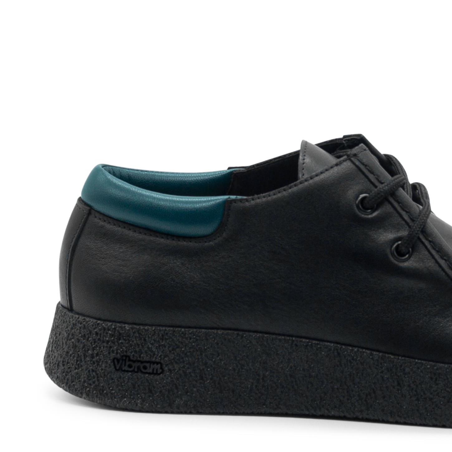 Whippy polacchino allacciato in vitello opaco nero/petrolio nappato, con vaschetta profilata e cucita;