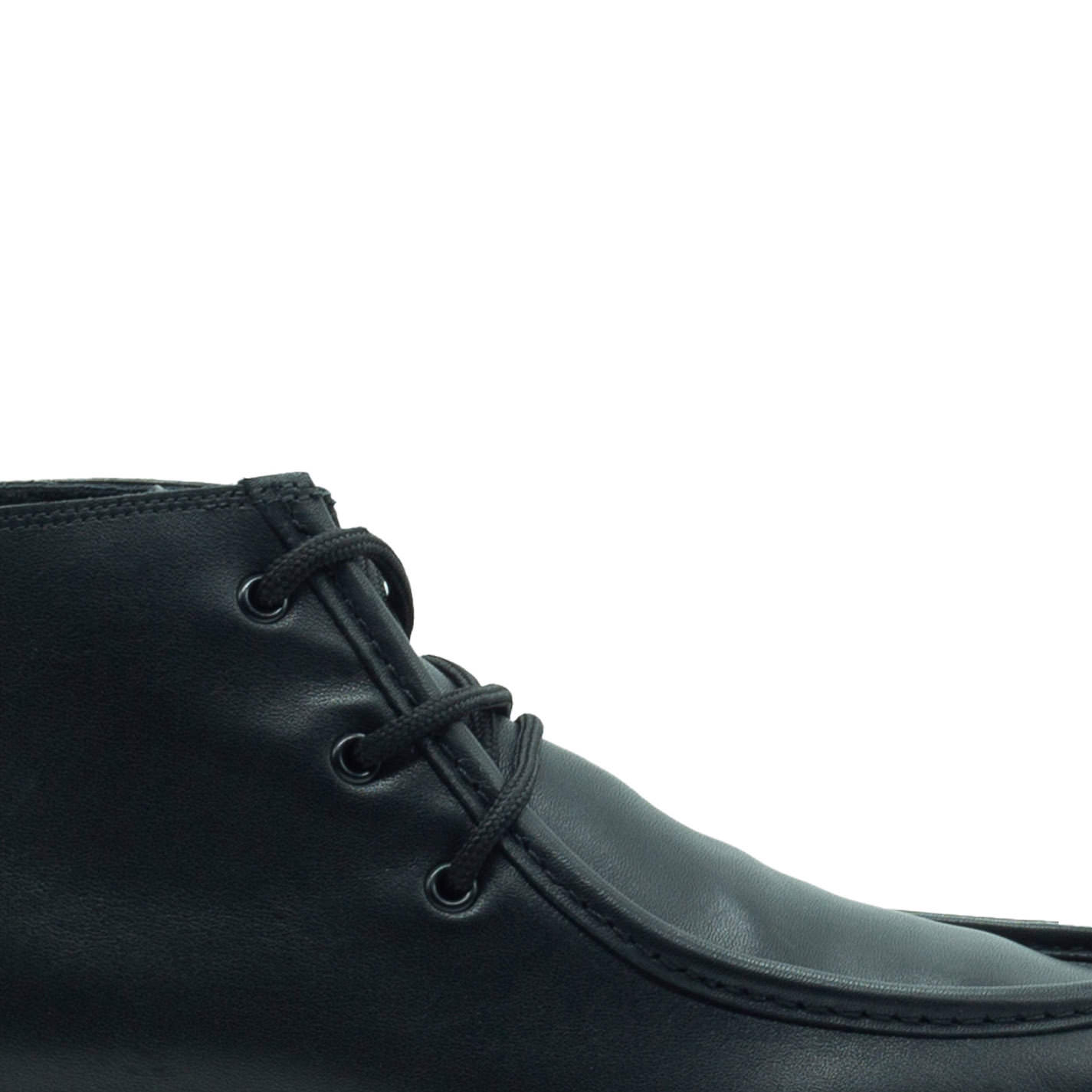 Whippy polacco foderato montone in vitello opaco nero nappato, con vaschetta profilata in pelle fino ai gambetti;