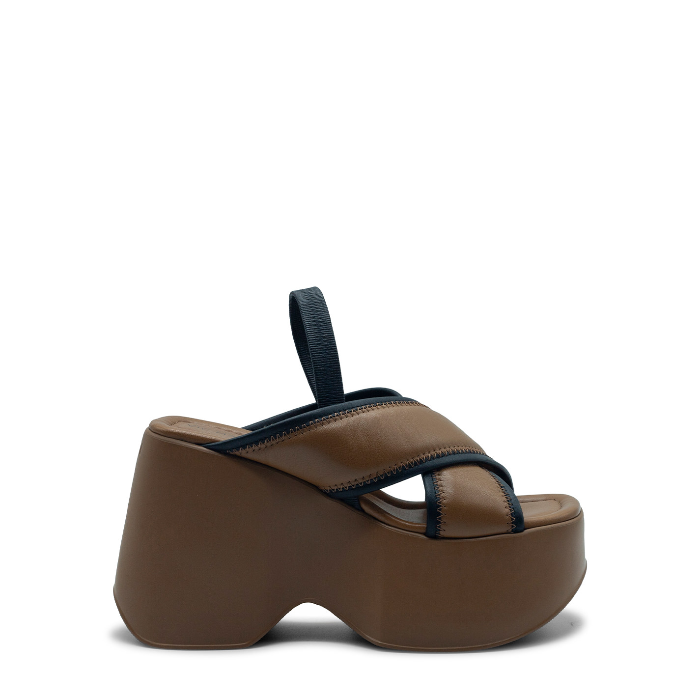 elastico ricoperto in pelle per una maggiore stabilità . Zeppa in materiale gommoso super leggero, confortevole e in tono con battistrada antiscivolo. Sottopiede in pelle imbottito e arricchito da cucitura. Made in Italy.